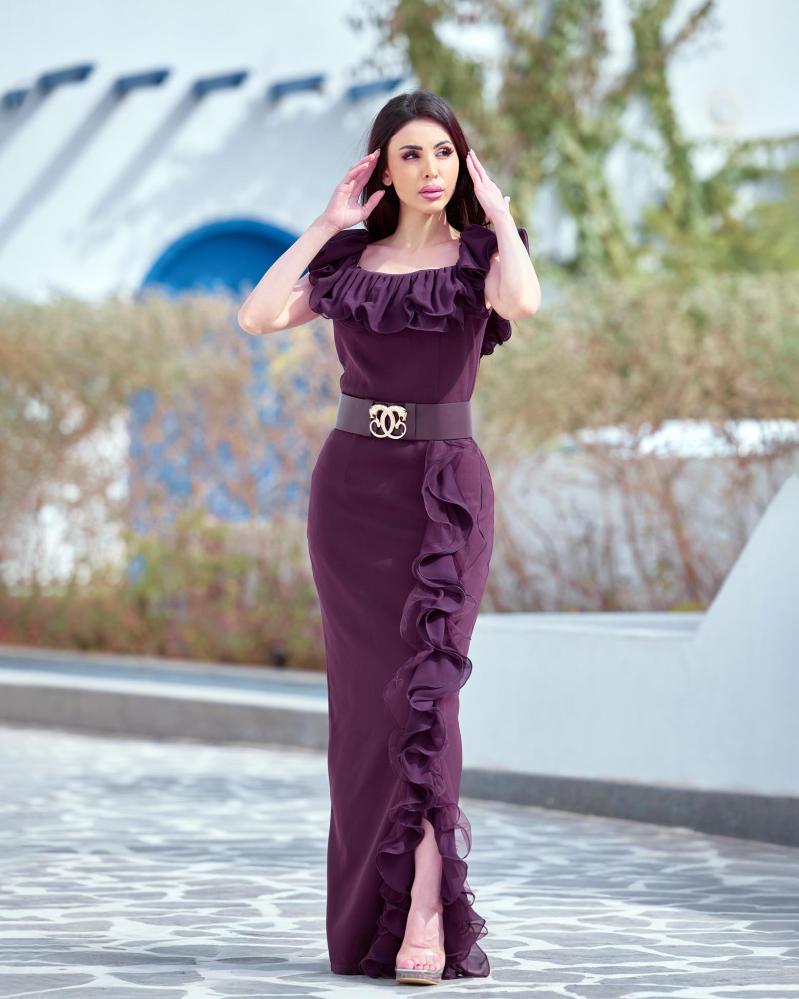 أوبرا فاشن – فستان أنيق بخامة شيفون وكريب مزين بالكريستال