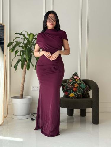 أوبرا فاشن – فستان سهرة استرتش لماع بقصة ضيقة ولون عنابي