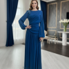 أوبرا فاشن – فستان سهرة برغندي تل استرتش بأكمام طويلة – تطريز لؤلؤ وكريستال