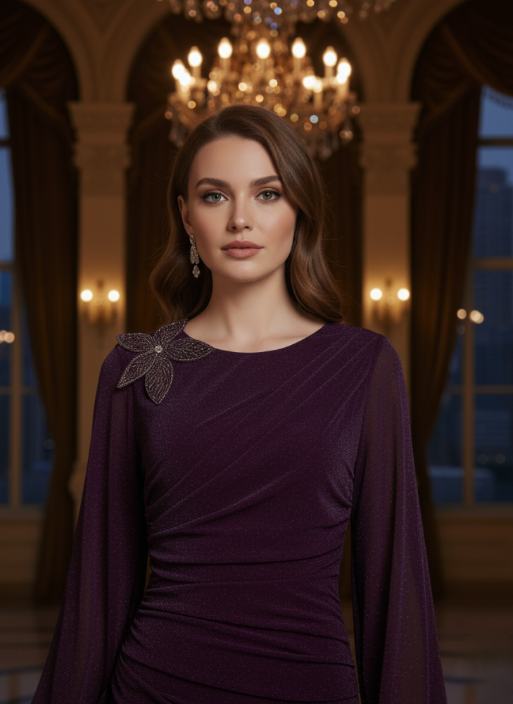 أوبرا فاشن – فستان أنيق بخامة جوبير بتصميم راقٍ