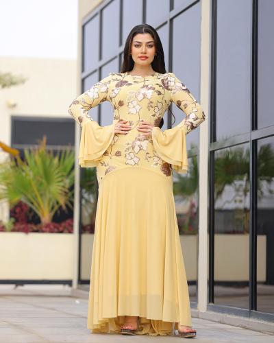 أوبرا فاشن – فستان سهرة تل استرتش بتطريز ترتر فاخر على الصدر