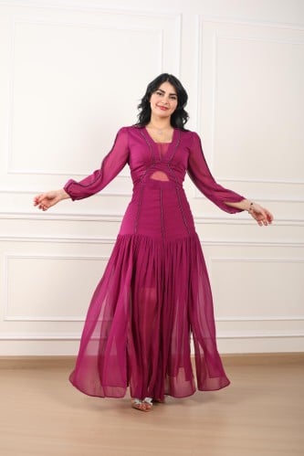 أوبرا فاشن – فستان سهرة شيفون حرير كسرات مع خطوط كرستال