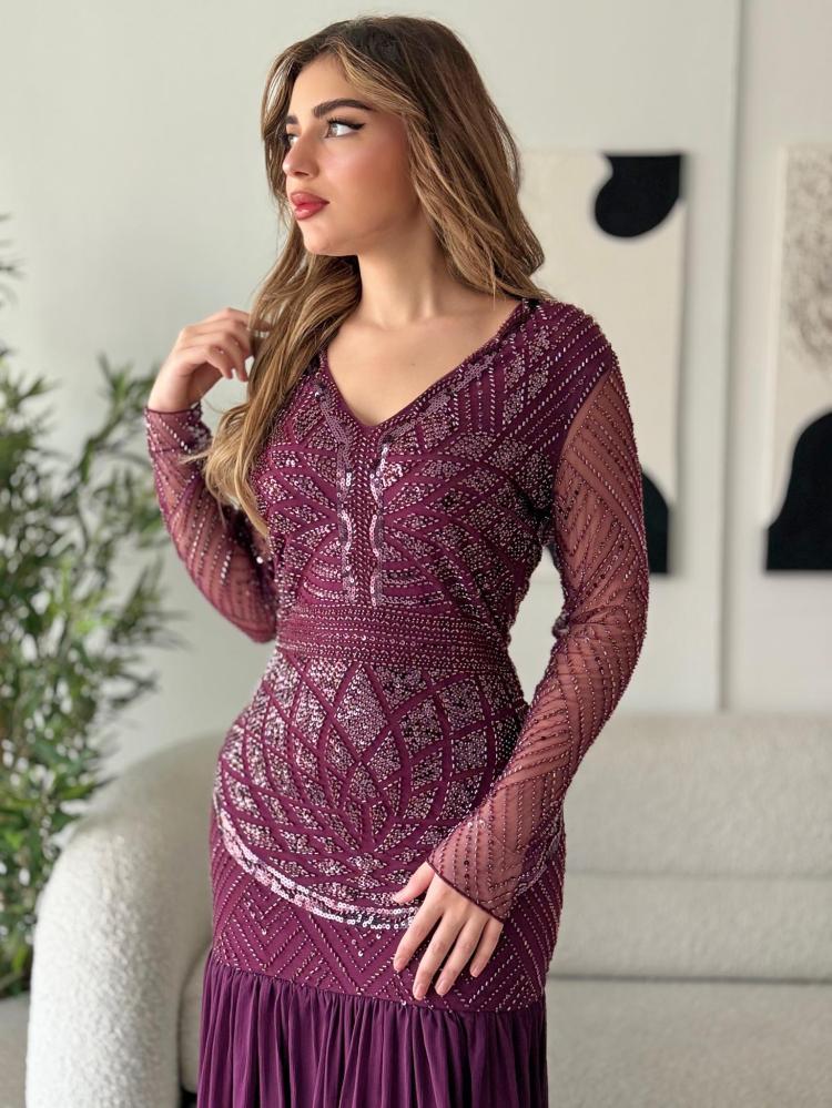 أوبرا فاشن – فستان سهرة لون عنابي فاخرة وأنيق