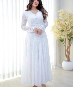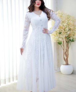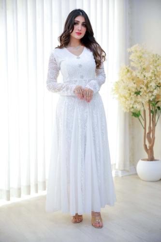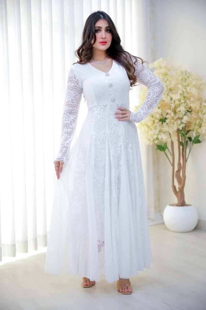أوبرا فاشن – فستان سهرة ناعم دانتيل لون ابيض