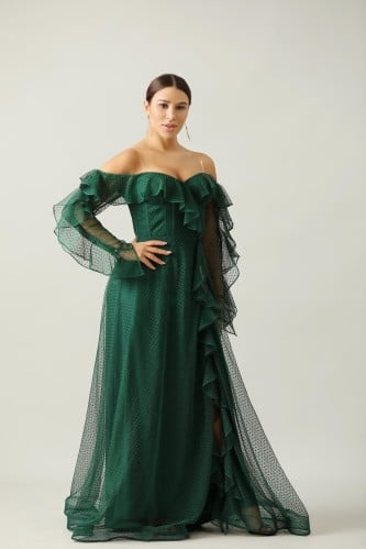 أوبرا فاشن – فستان شيفون مشجر مع دانتيل أنيق