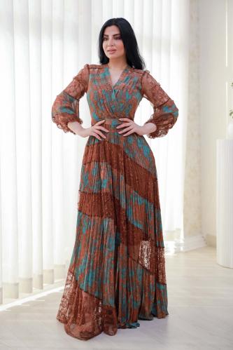 أوبرا فاشن – فستان شيفون مشجر مع دانتيل أنيق