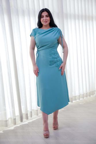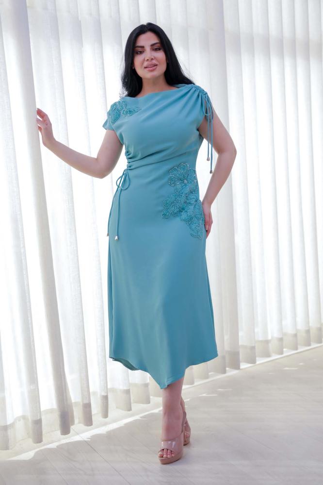 أوبرا فاشن – فستان ناعم ميدي قماش كريب مزين باكسسوار بالكتف والخصر
