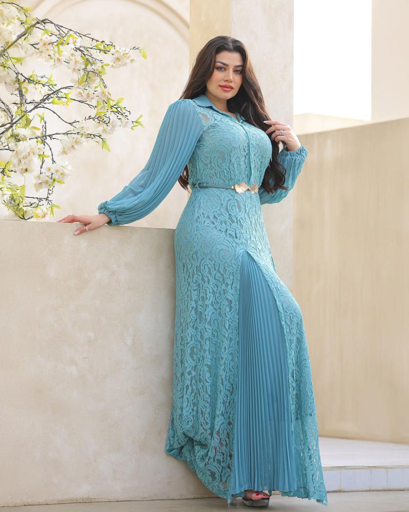 أوبرا فاشن – فستان نسائي دانتيل طويل بأكمام شيفون وتصميم فاخر