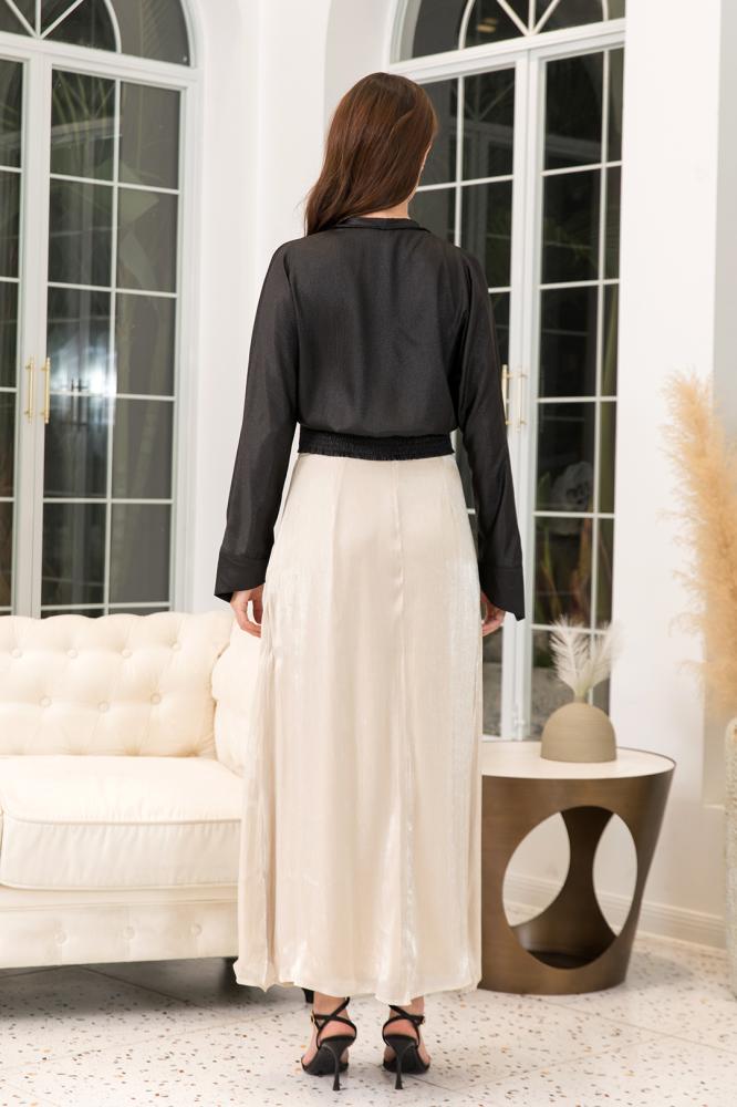 أوبرا فاشن – بلوزه قماش ستان لف على زم اكمام قصيرة