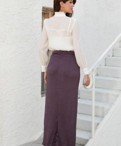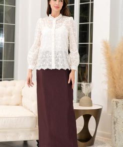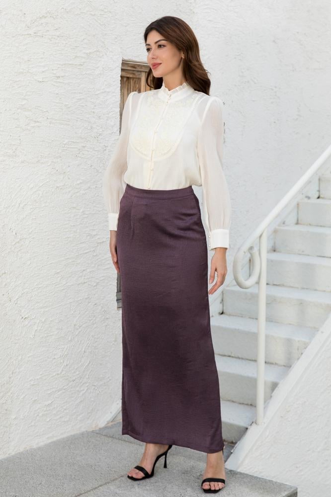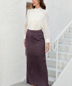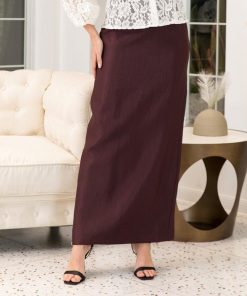 أوبرا فاشن – تنورة مدرسي قماش كريب استرتش لون بني زم على الخصر مع حزام