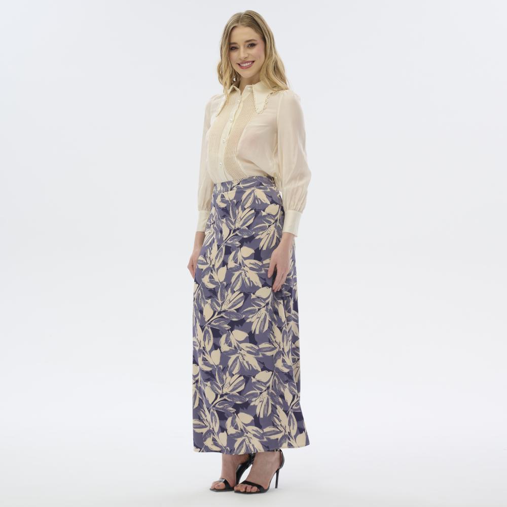 أوبرا فاشن – تنورة مدرسي قماش كريب استرتش لون بني زم على الخصر مع حزام