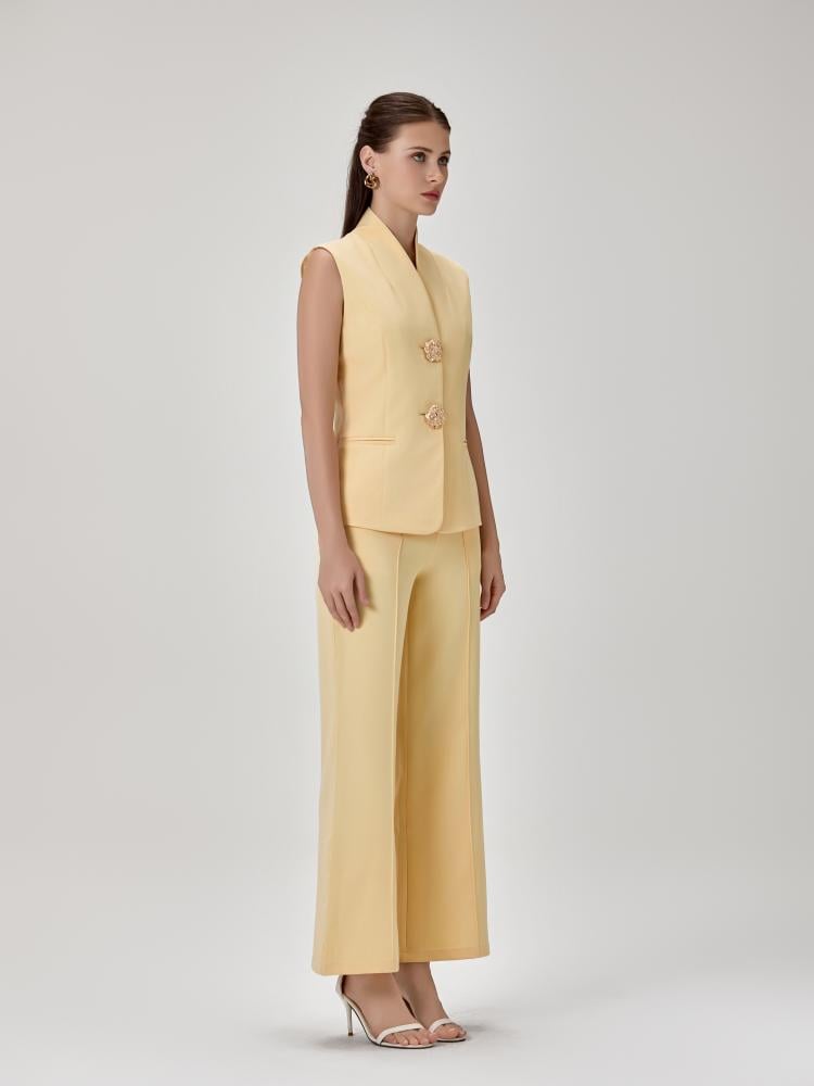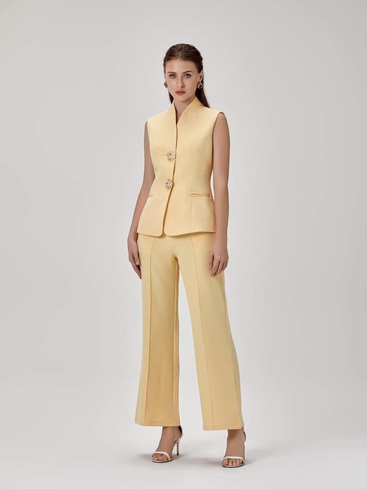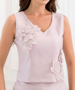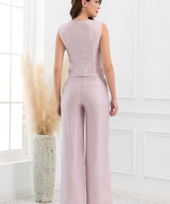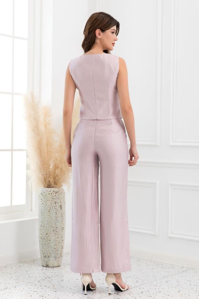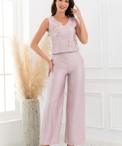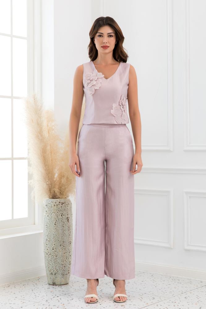 طقم بلوزة و بنطلون بخامة الكريب و مزين بالكريستال الراقي