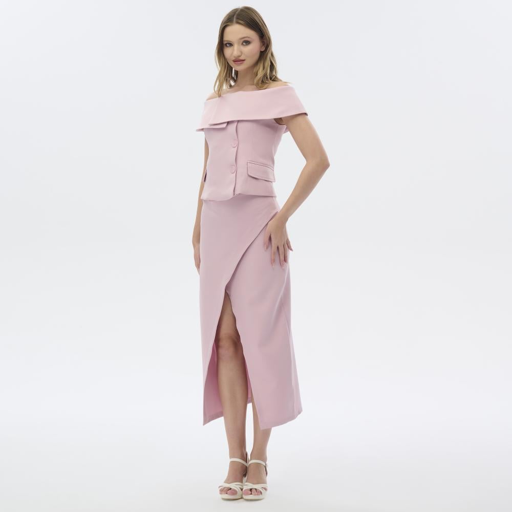 طقم بلوزة وتنورة بدانتيل راقٍ بتصميم أنثوي أنيق