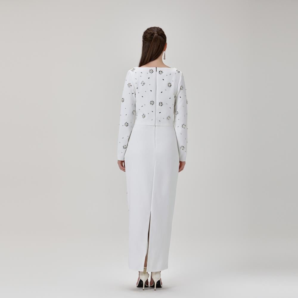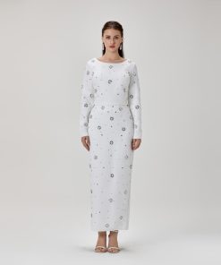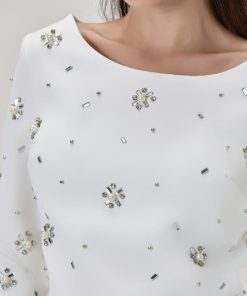 طقم بلوزة و تنورة بناتي بقماش الستان مزين بكلفه