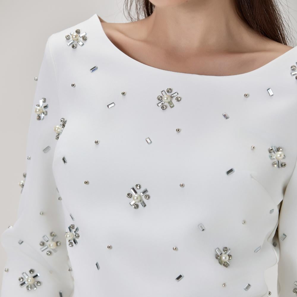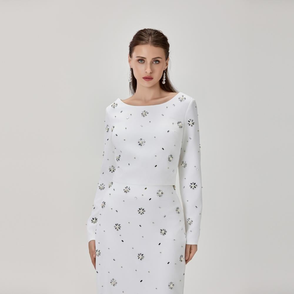 طقم بلوزة و تنورة بناتي بقماش الدانتيل المطرز بالترتر