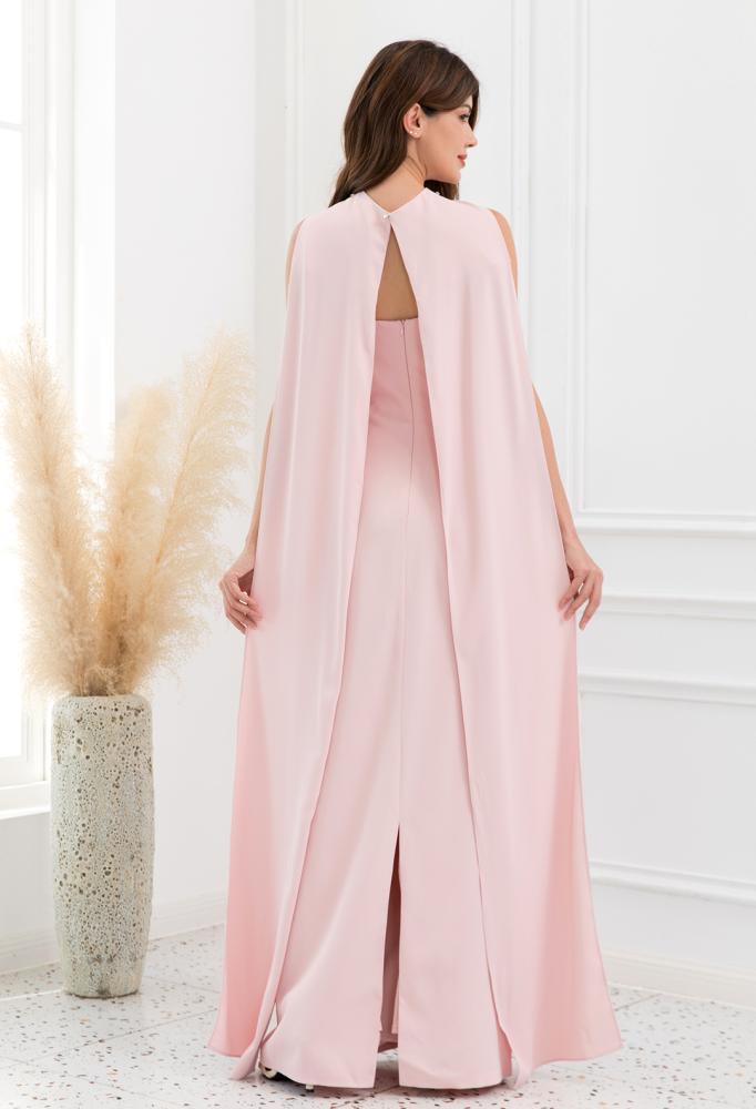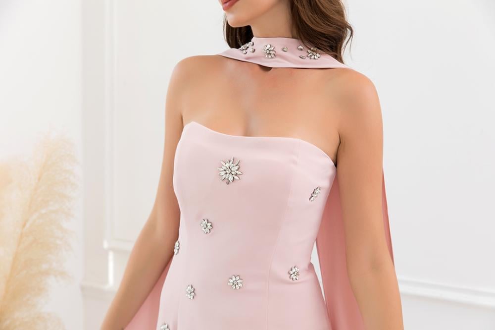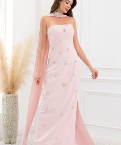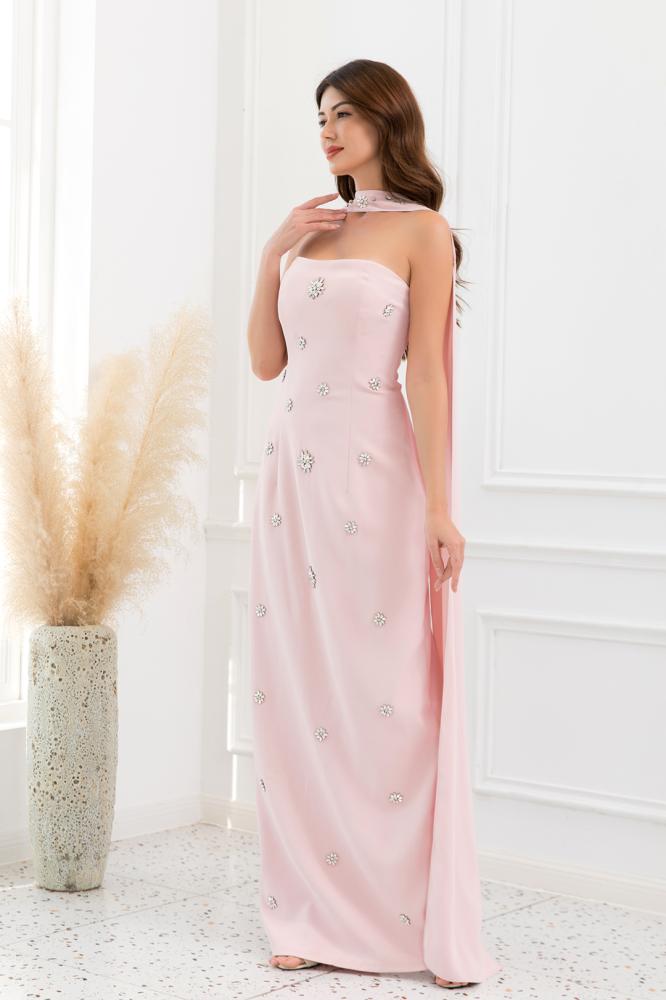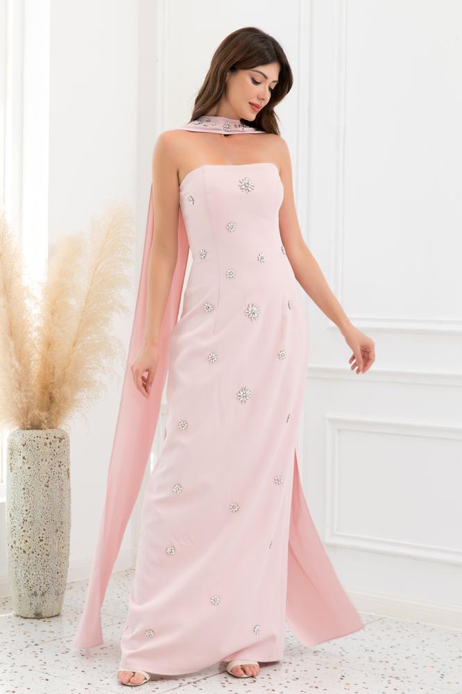 افورا – فستان مع شال على الرقبة مزين بكرستال