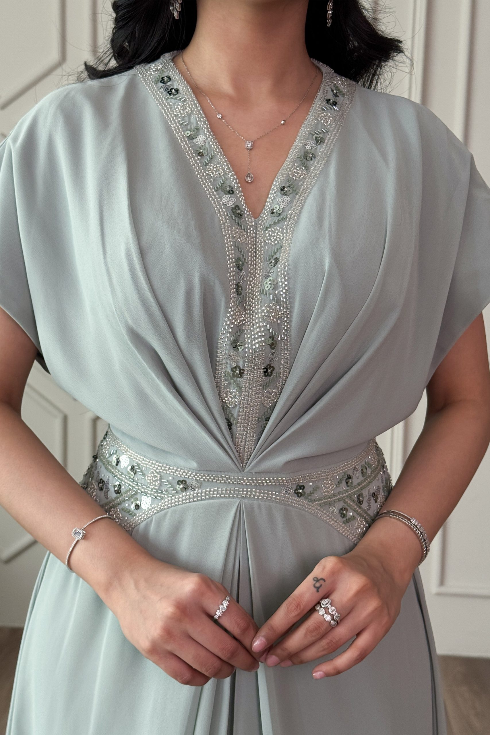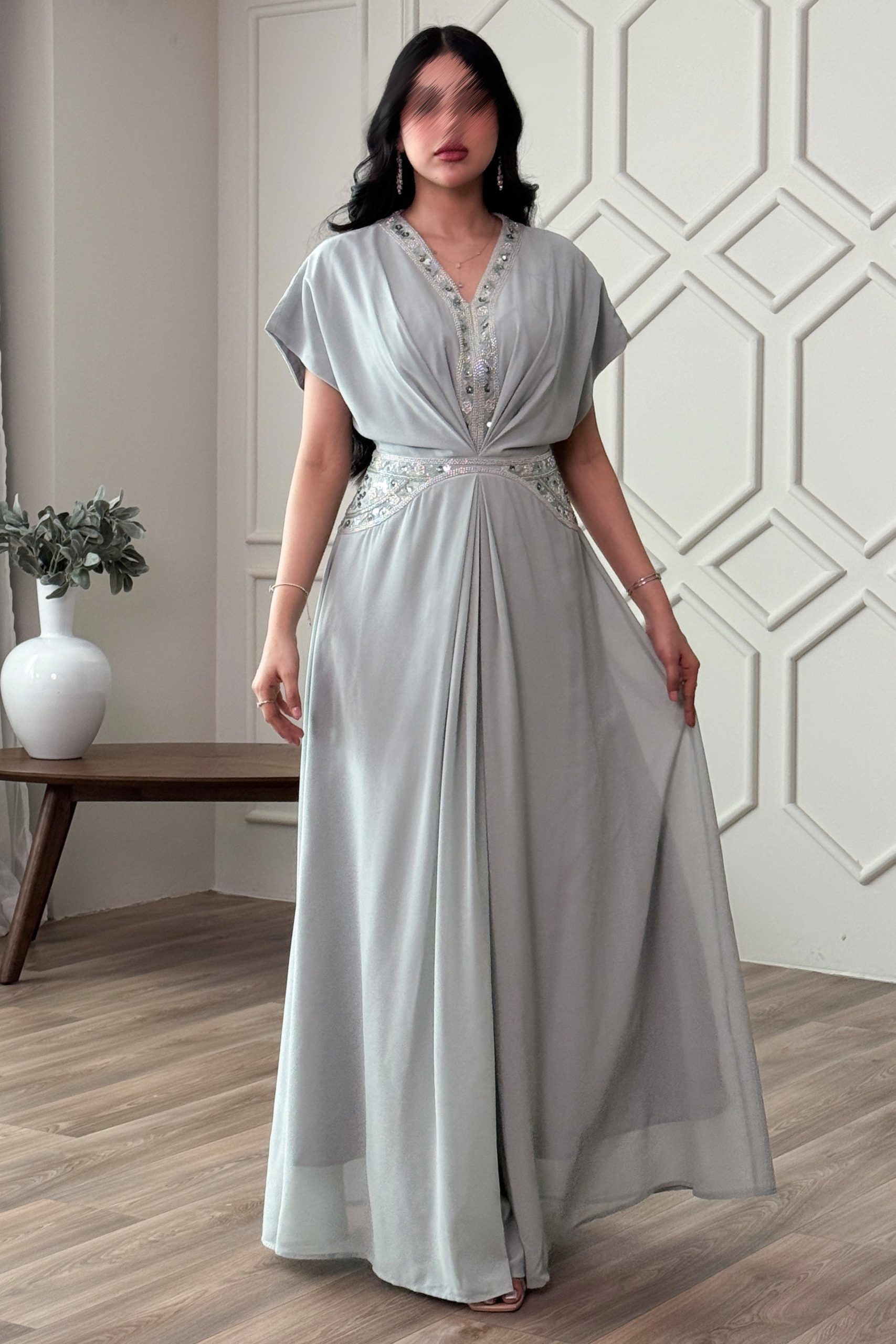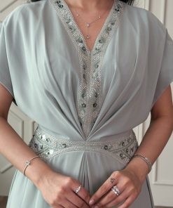 دار الجلابية – عباية كتان بكلفة و تطريز ترتر علي الكم