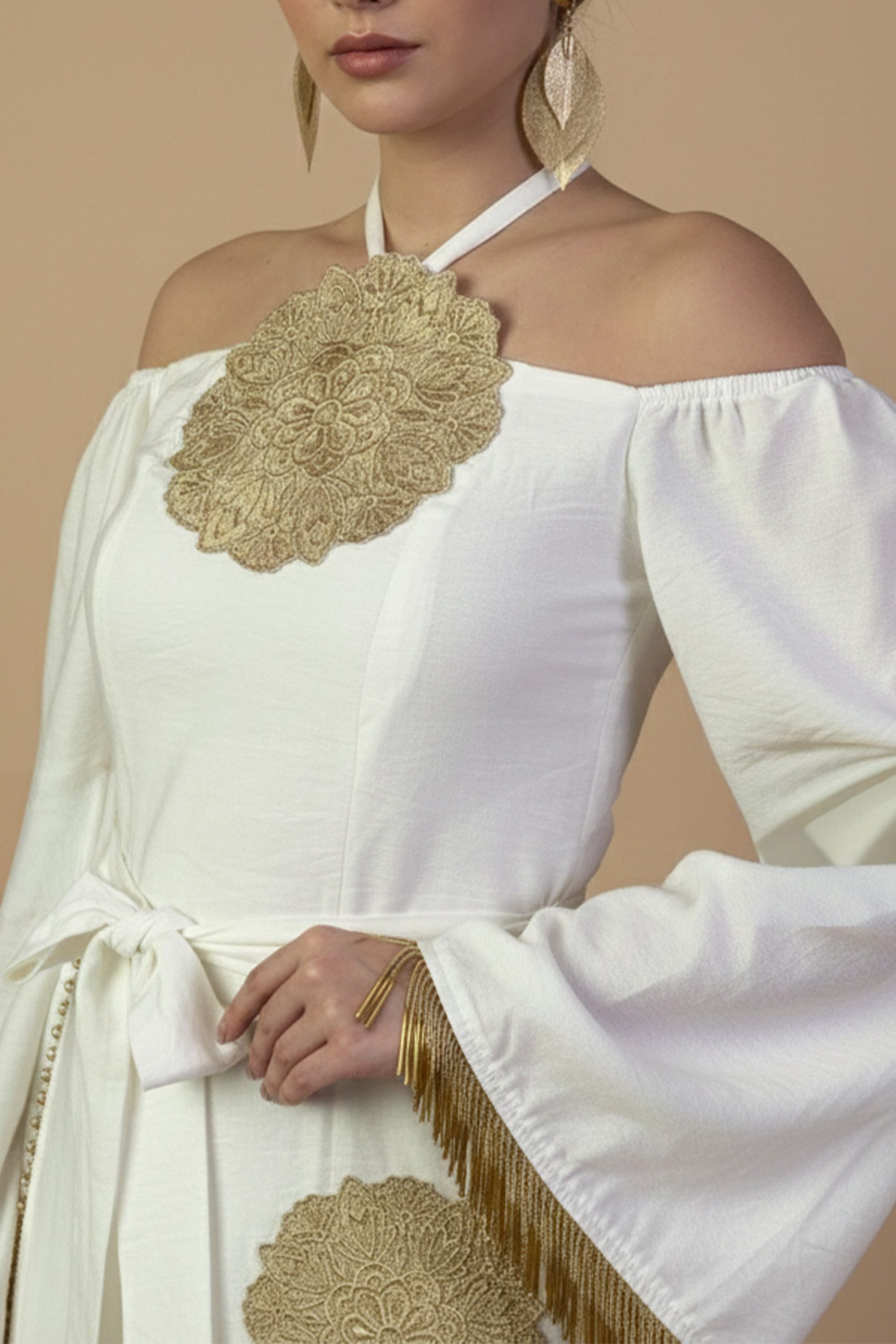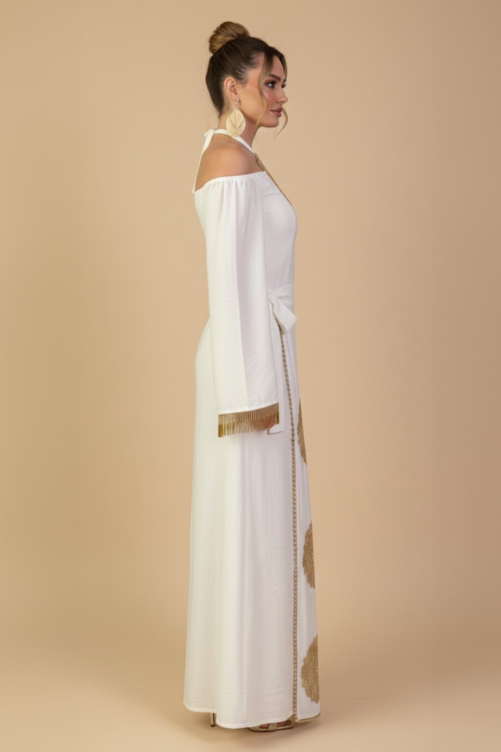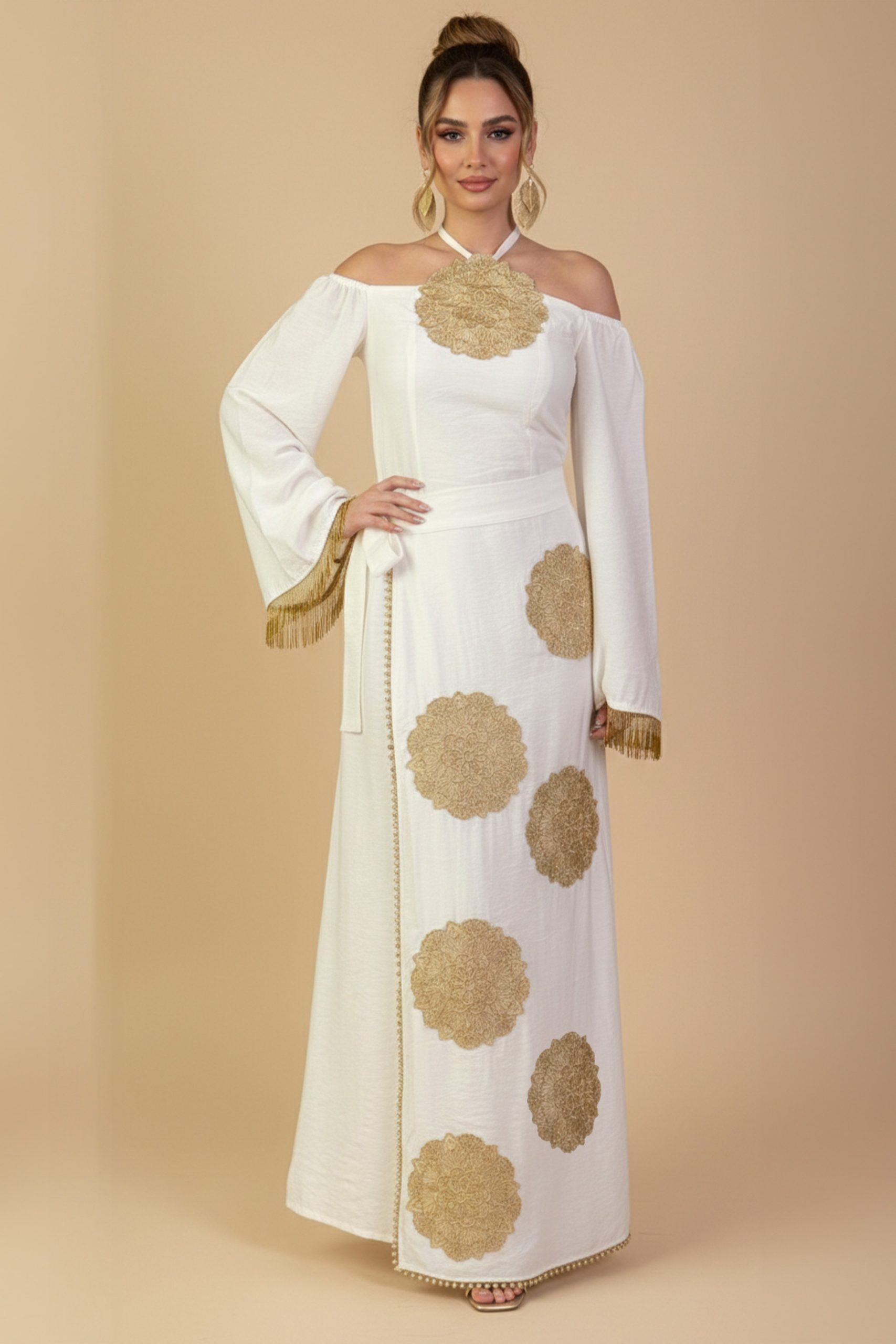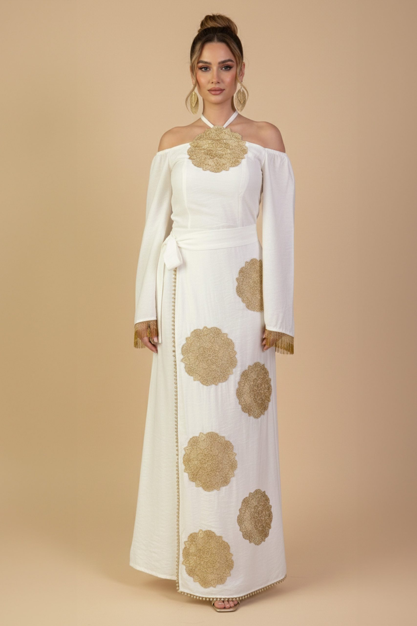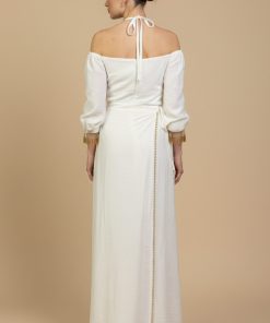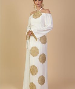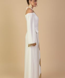 اكتان – جلابية طويلة ابيض بتصميم أوف شولدر