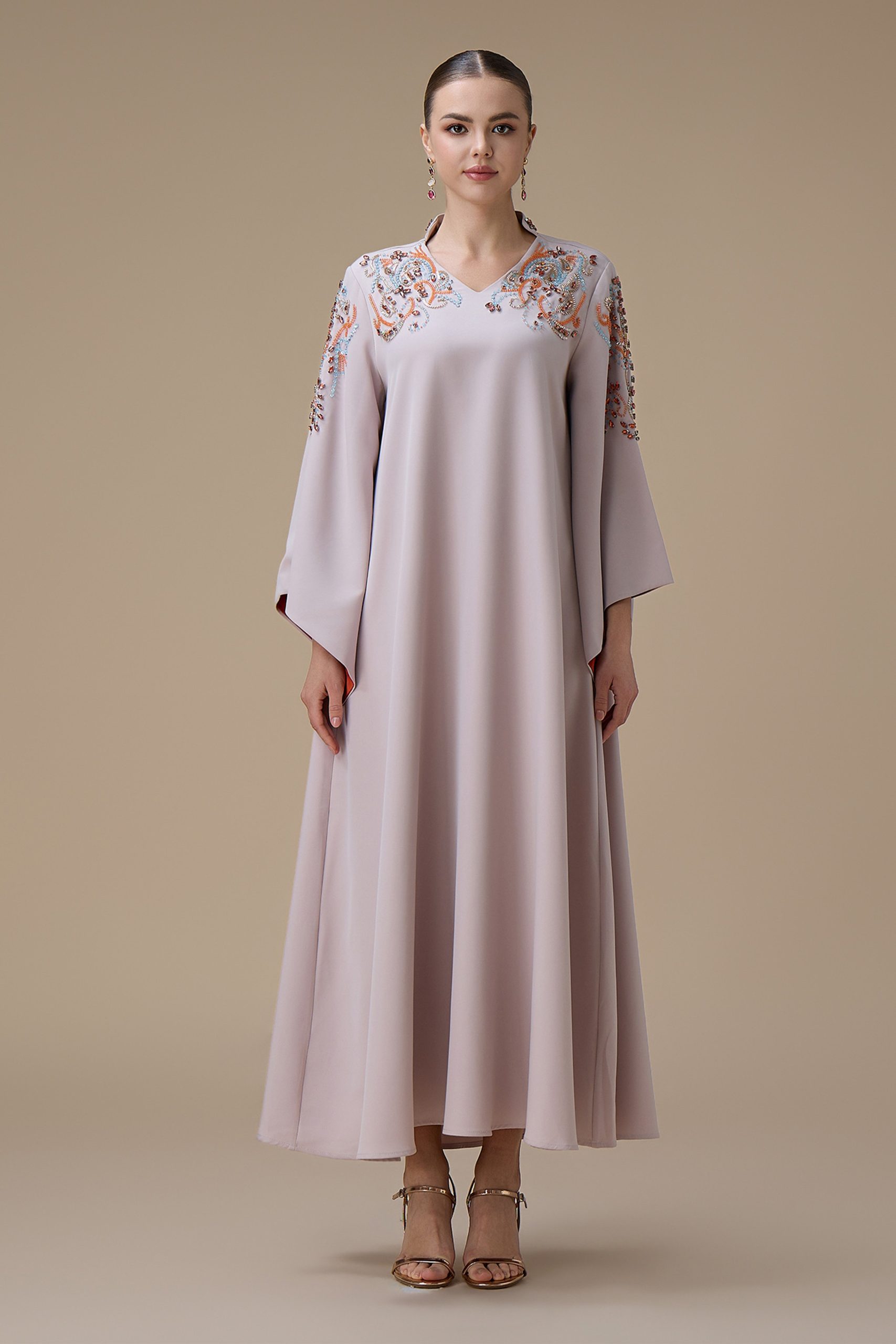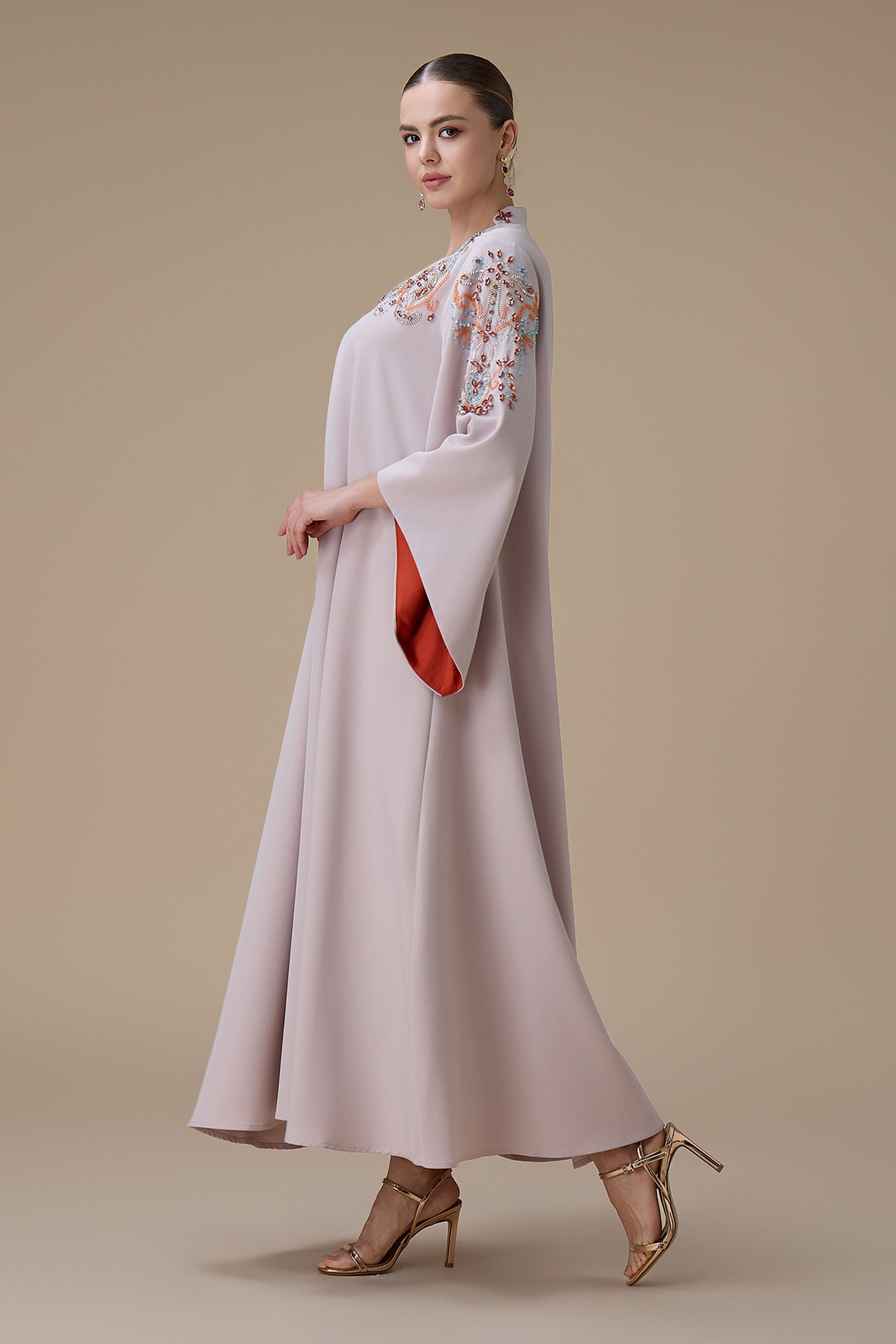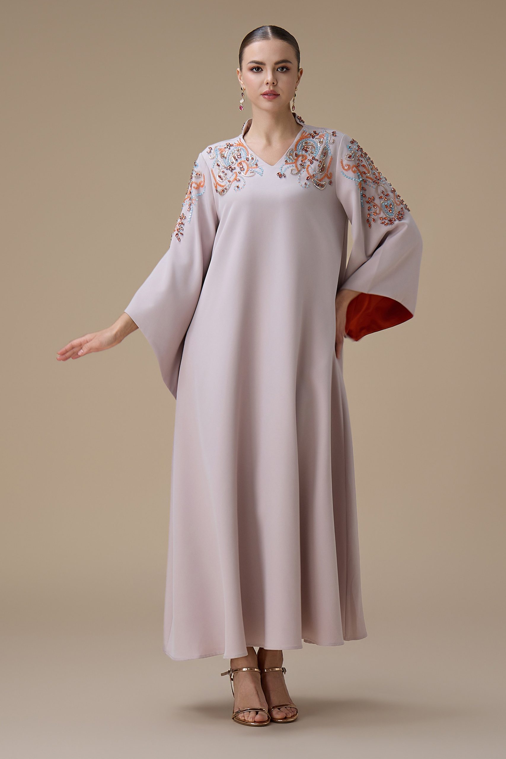 دار الجلابية – عباية كتان بكلفة و تطريز ترتر علي الكم