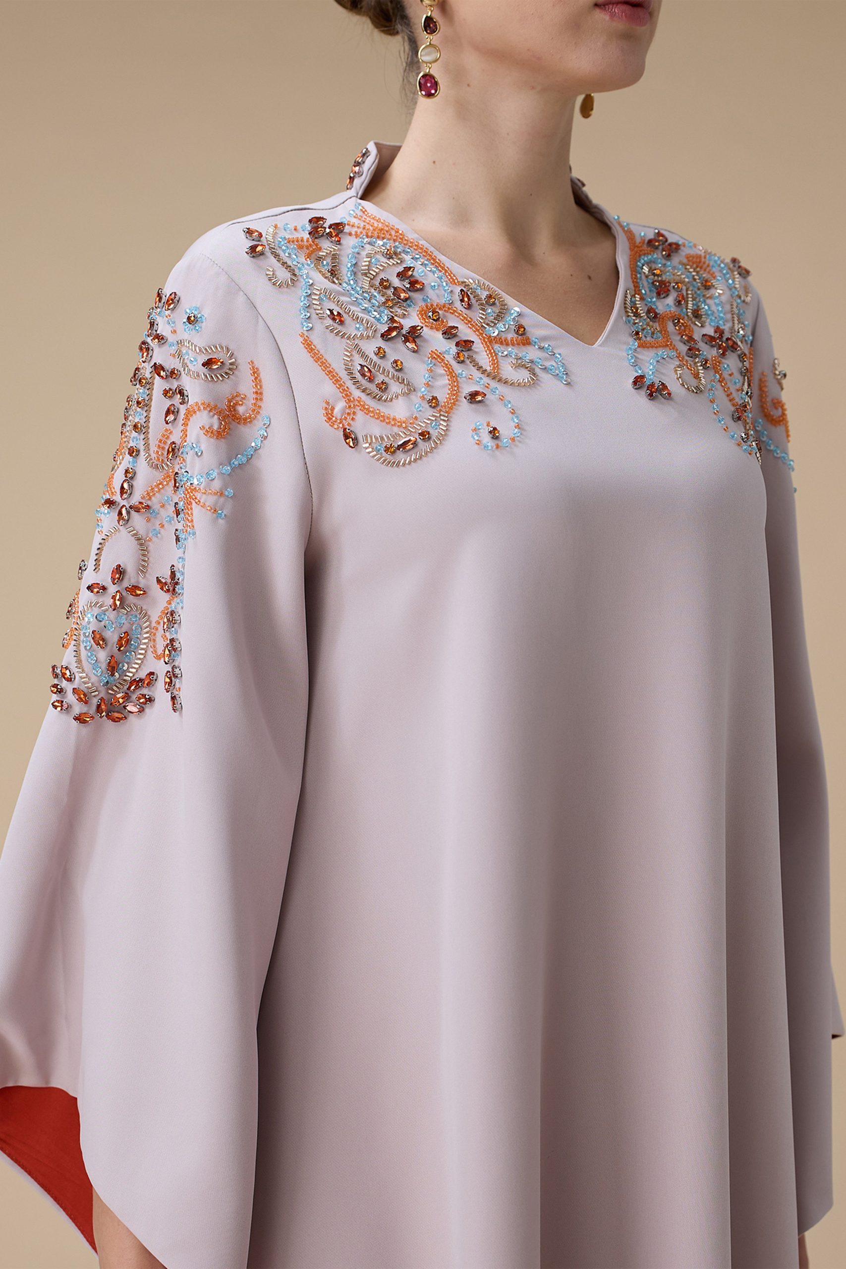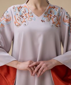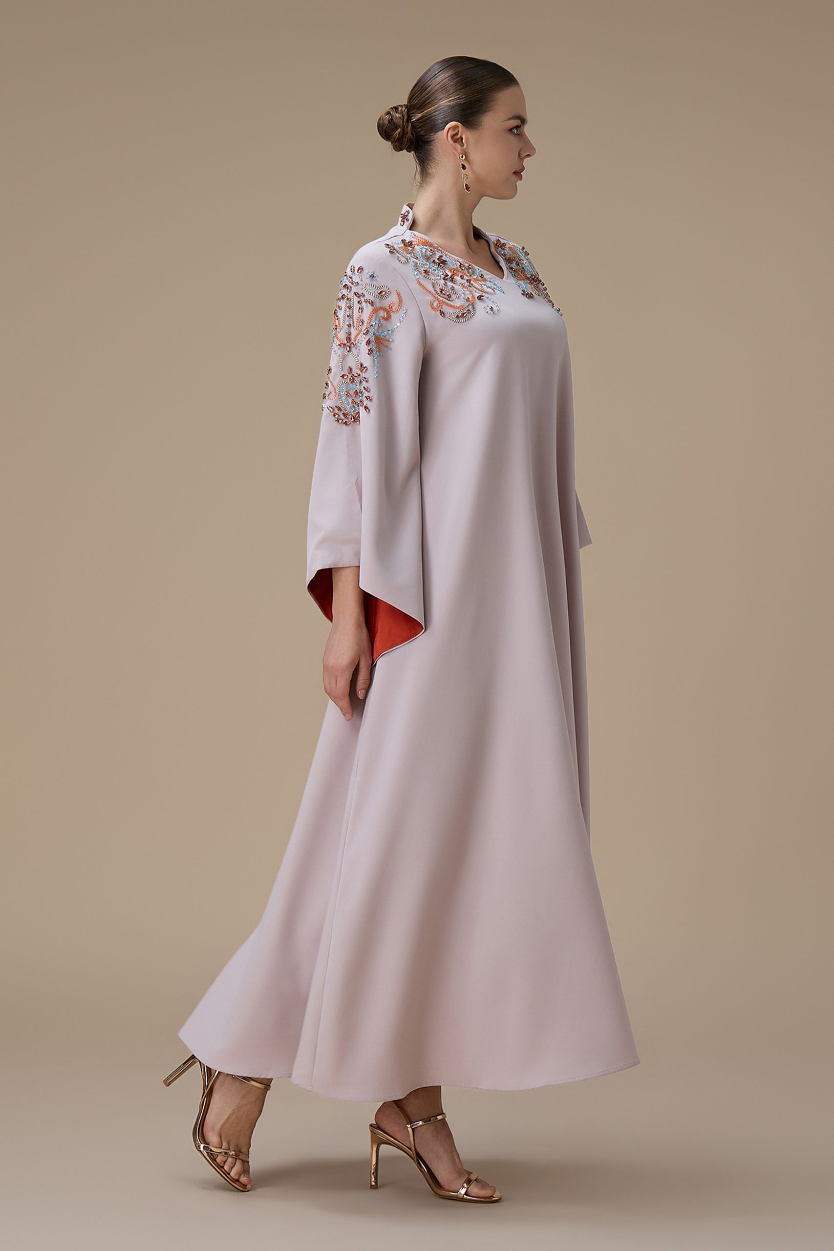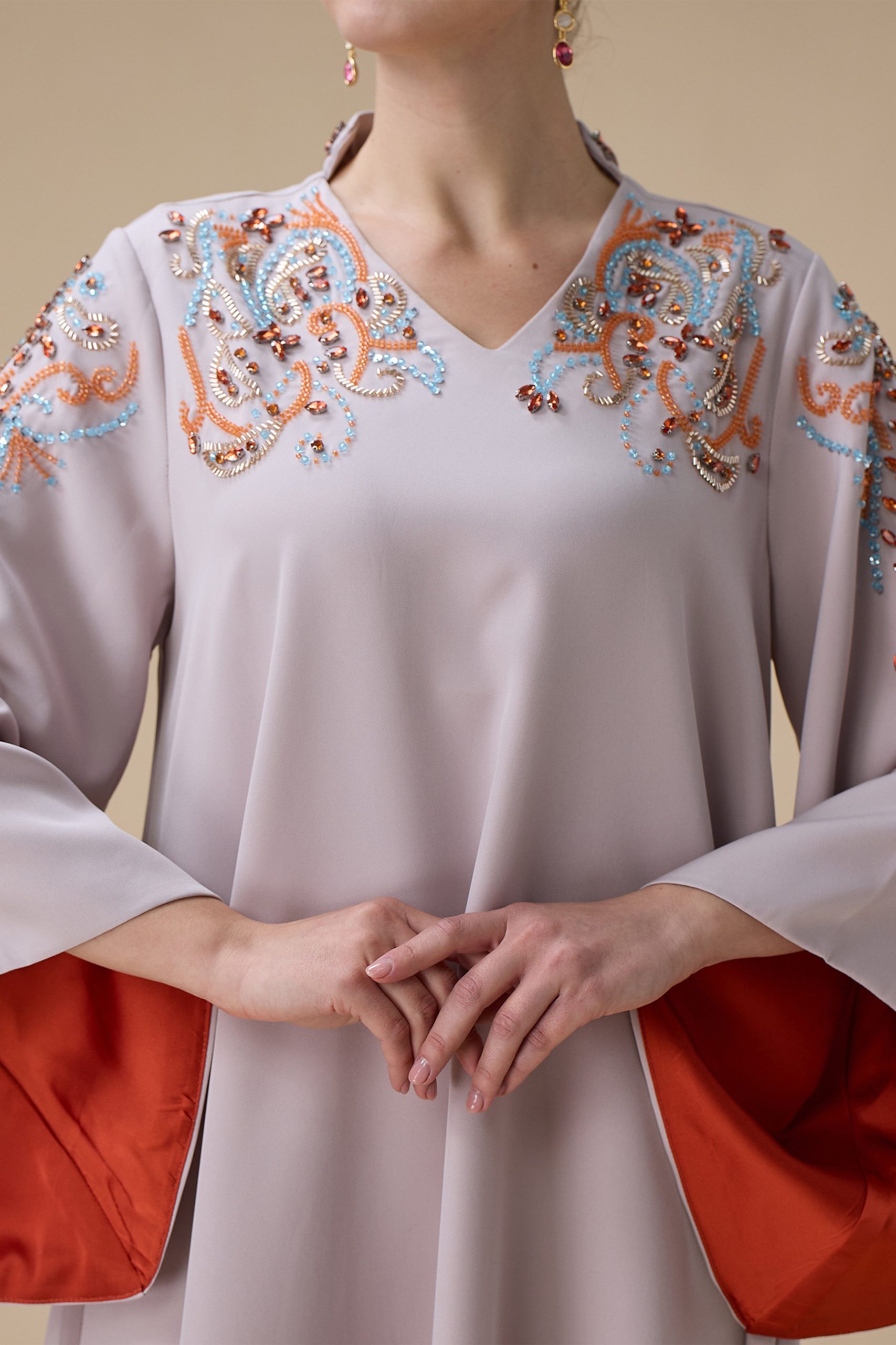 دار الجلابية – عباية كتان بكلفة و تطريز ترتر علي الكم