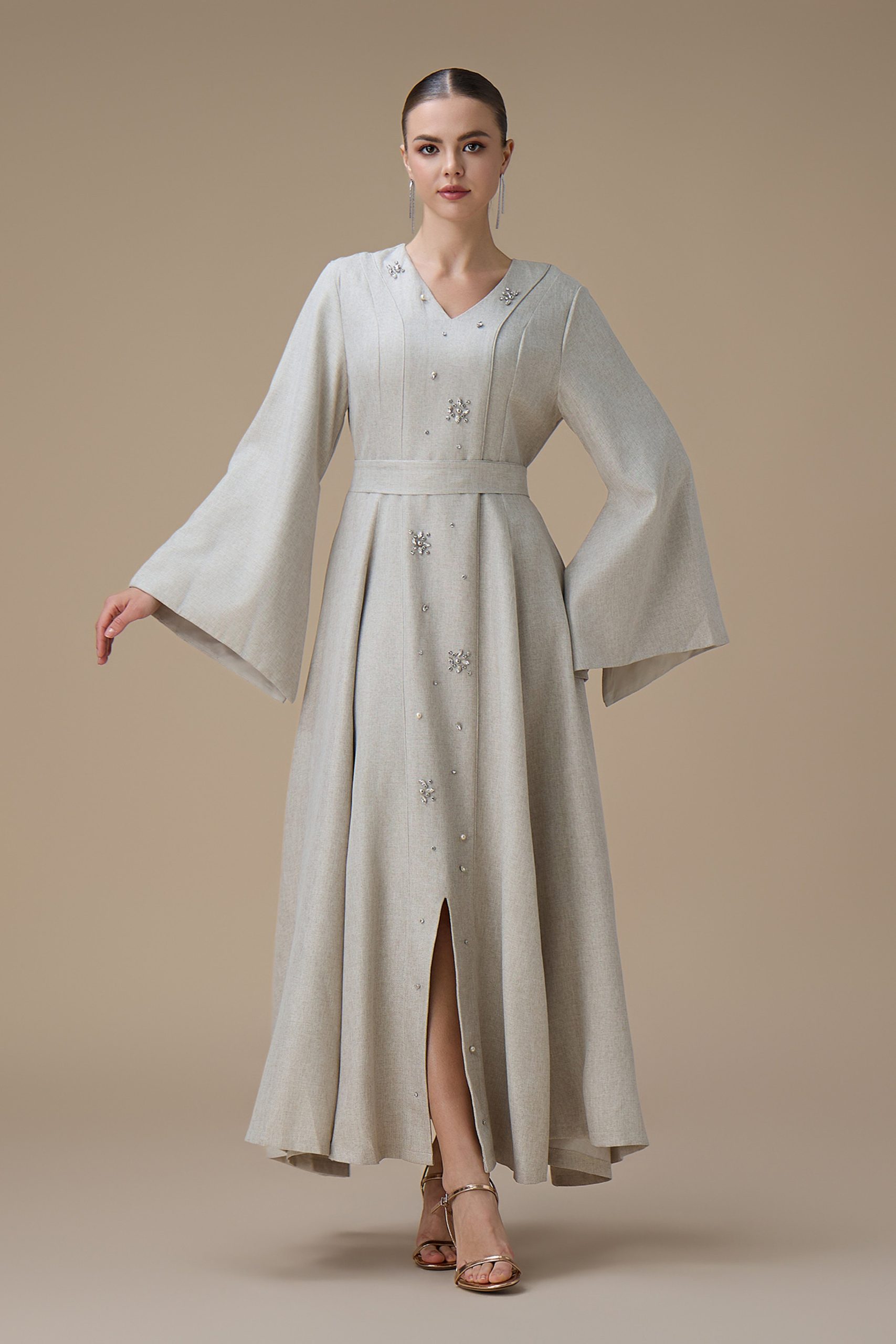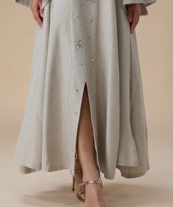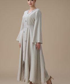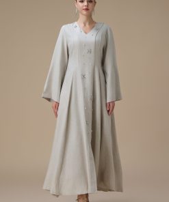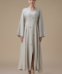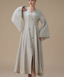 دار الجلابية – عباية كتان بكلفة و تطريز ترتر علي الكم
