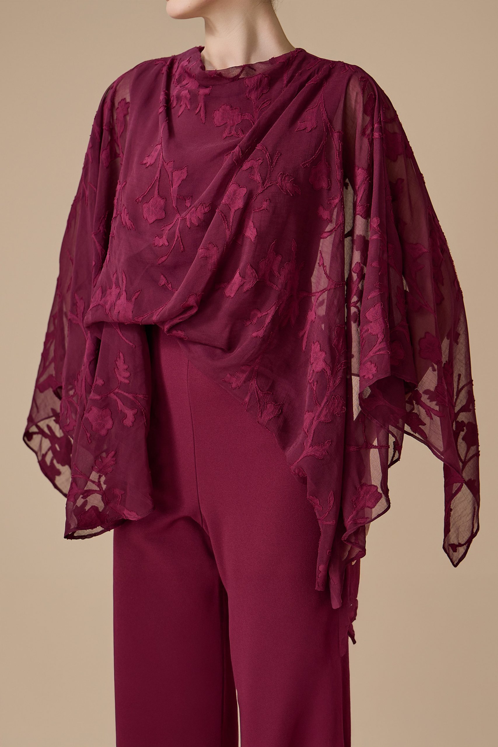 أوبرا فاشن – طقم طوبي بنطلون وبلوزة مزينة بوردة