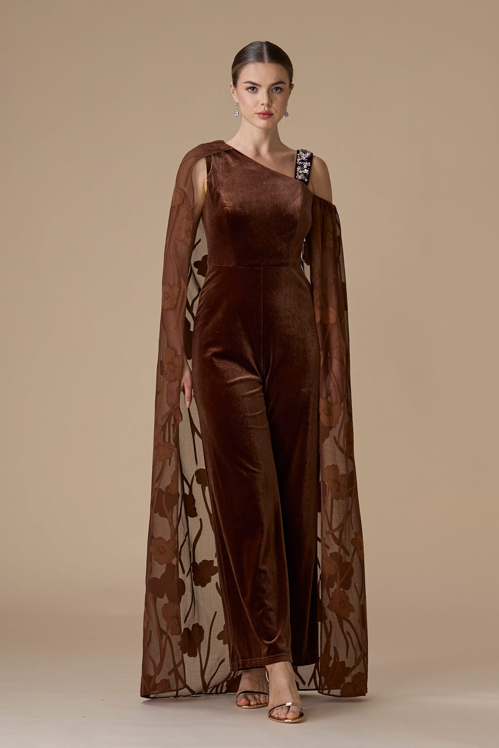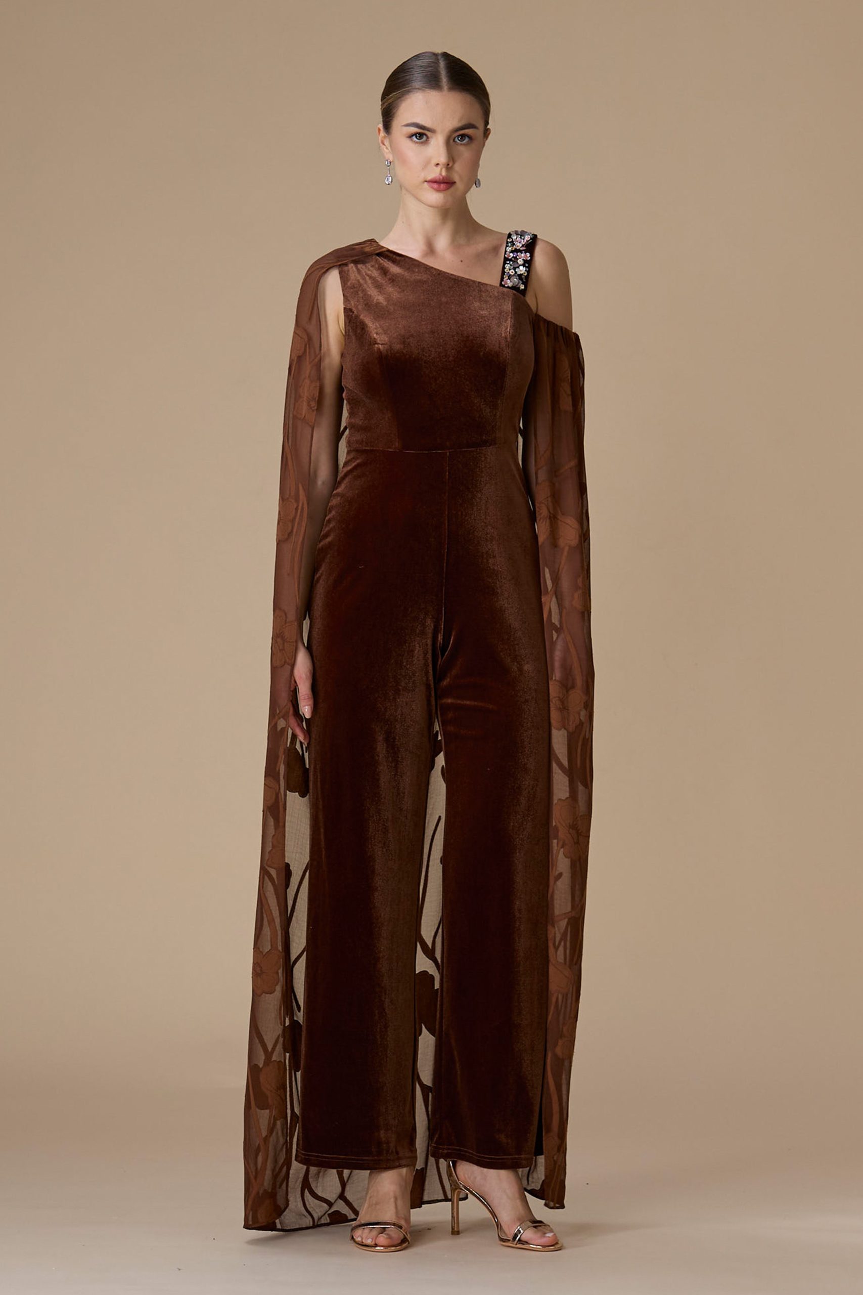 اكتان – جمبسوت بني مخمل بكاب مطرز