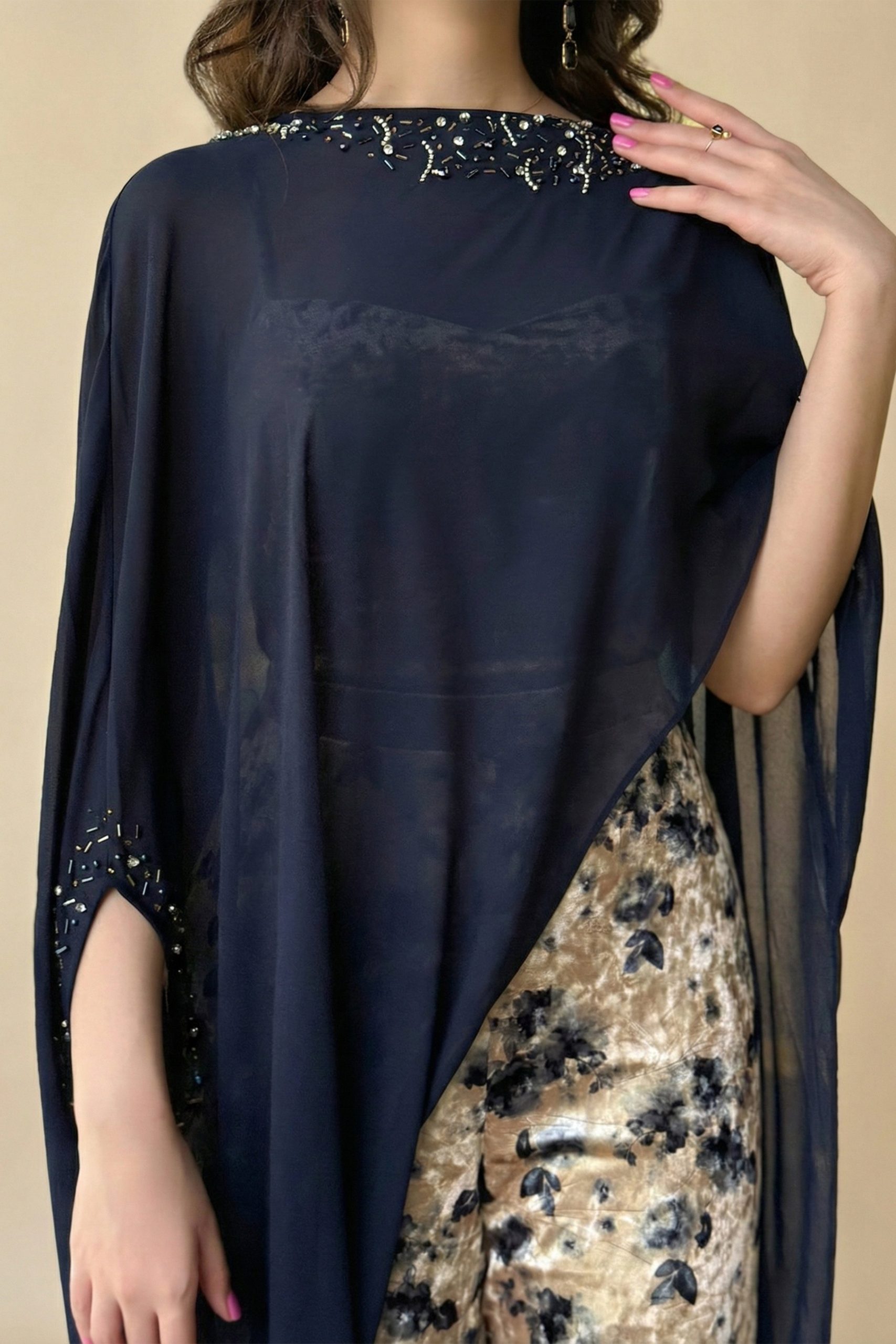 أوبرا فاشن – جمبسوت سهرة حرير ستان بكتف واحد مزين بورد