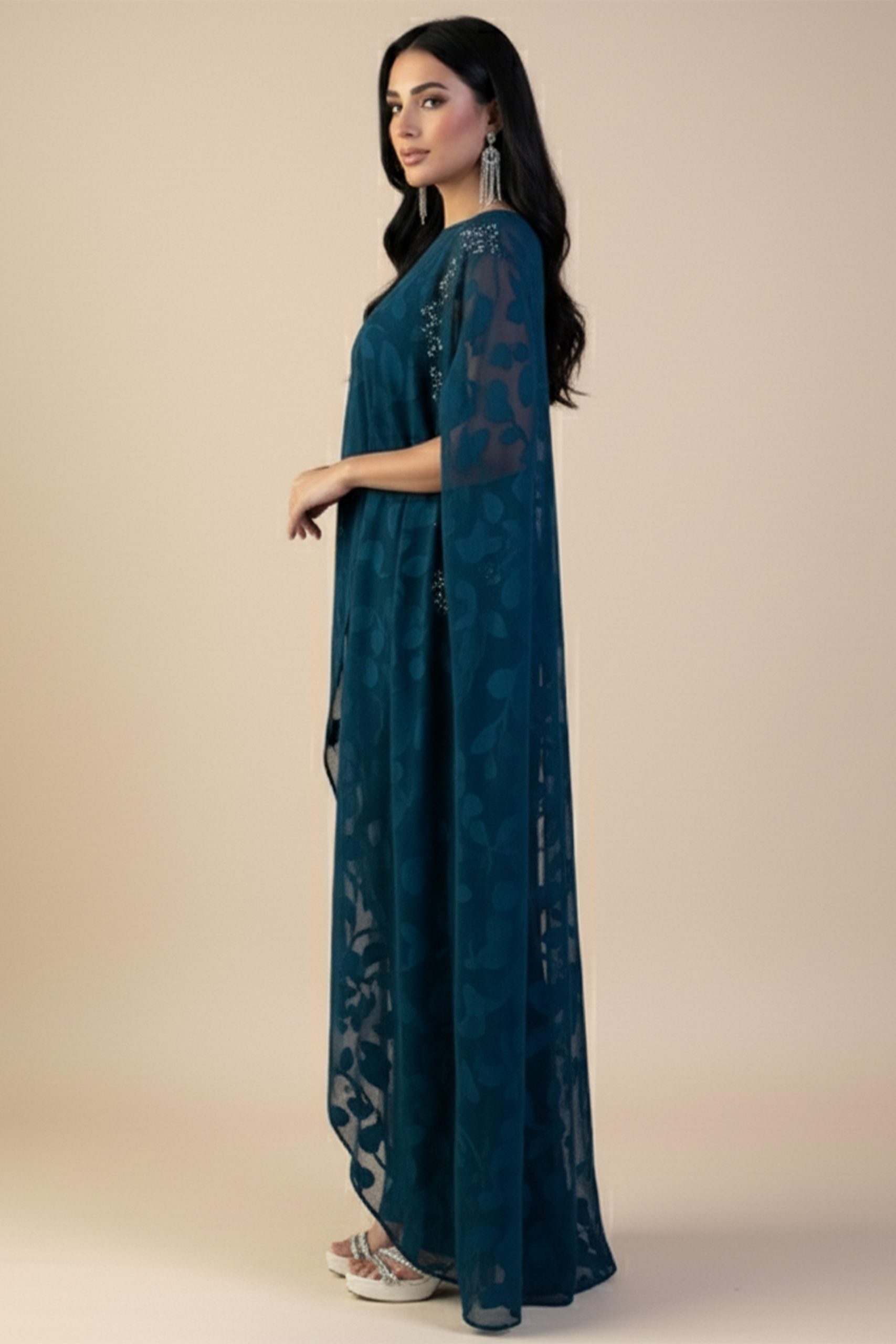 اكتان – طقم جمبسوت فوشي بقصة انسيابية وتطريز كريستالي