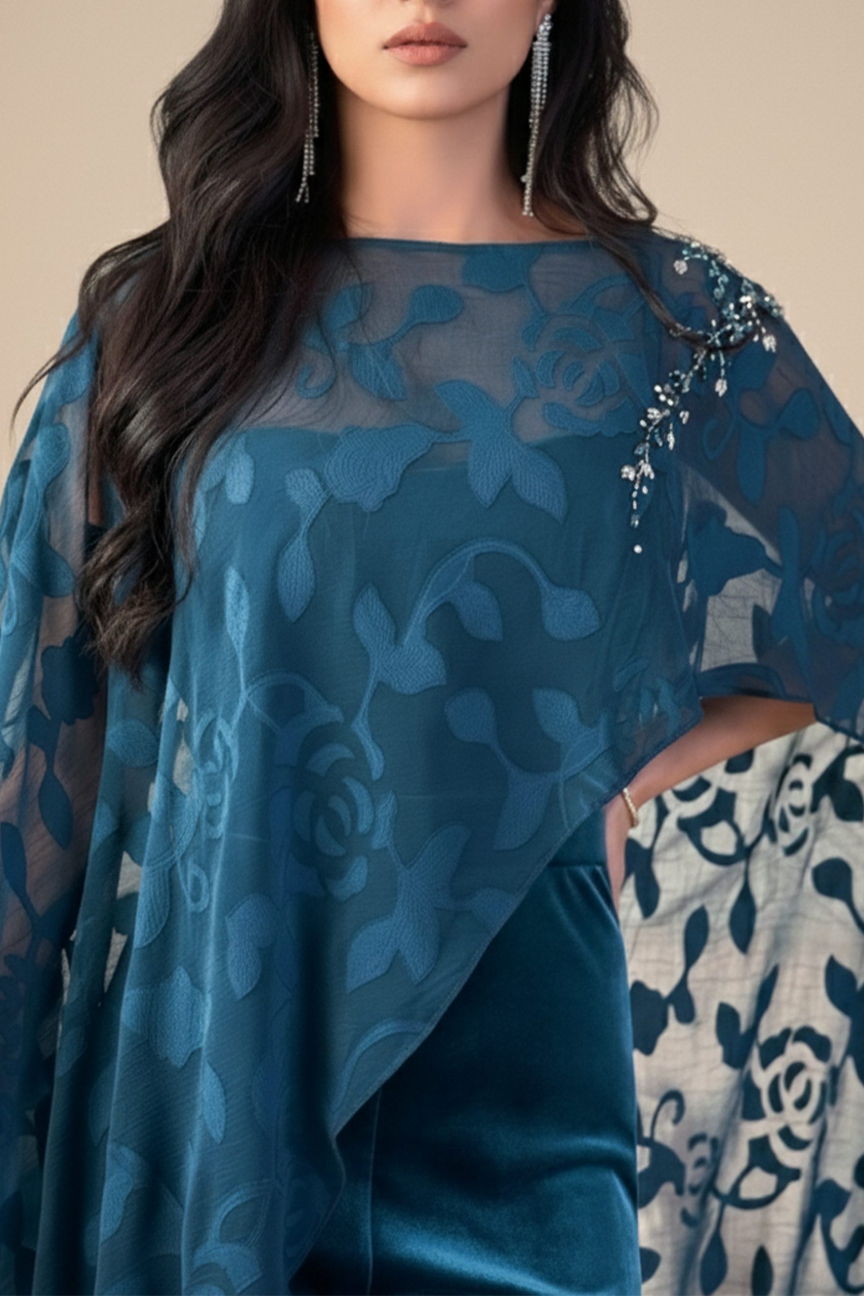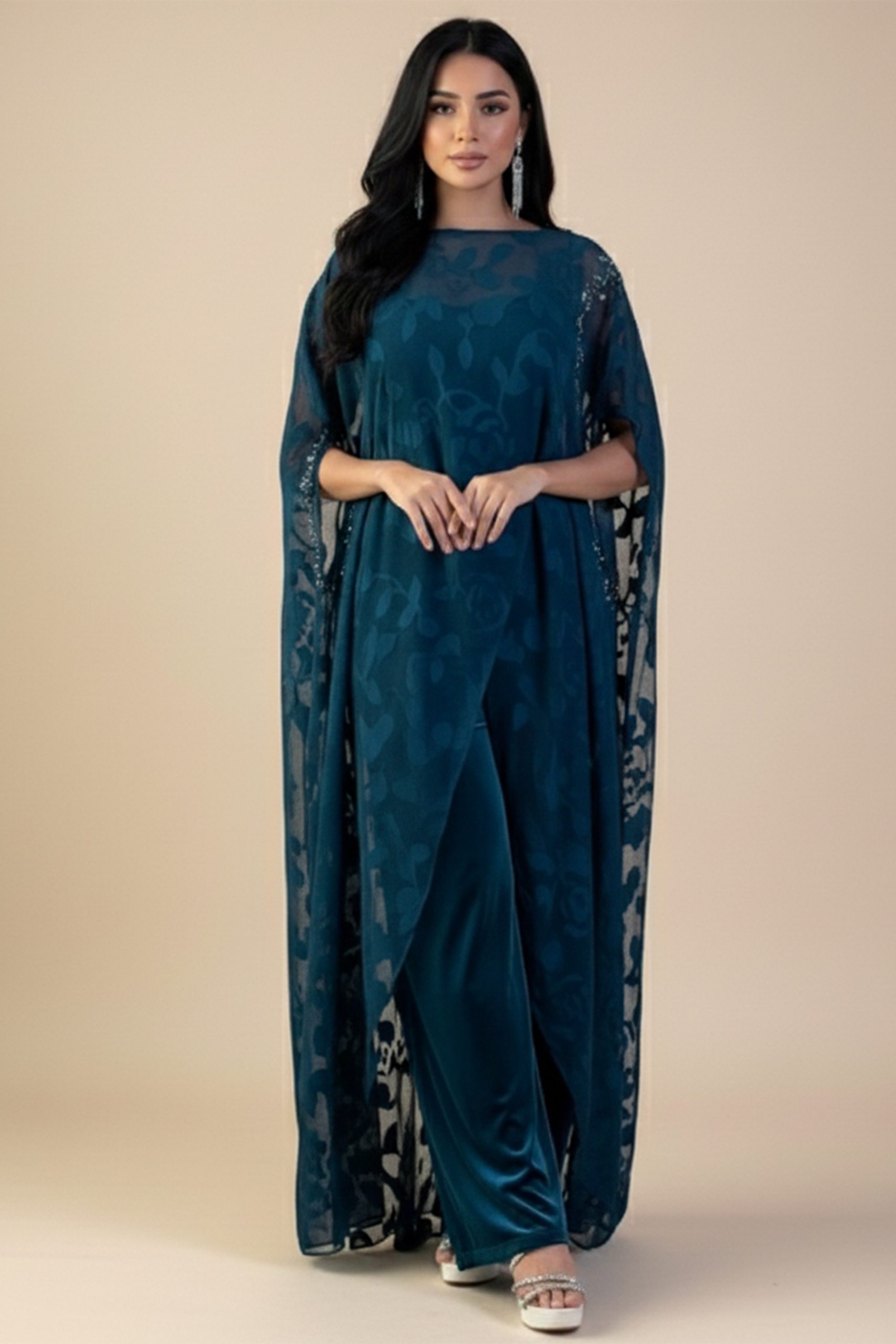 أوبرا فاشن – طقم طوبي بنطلون وبلوزة مزينة بوردة