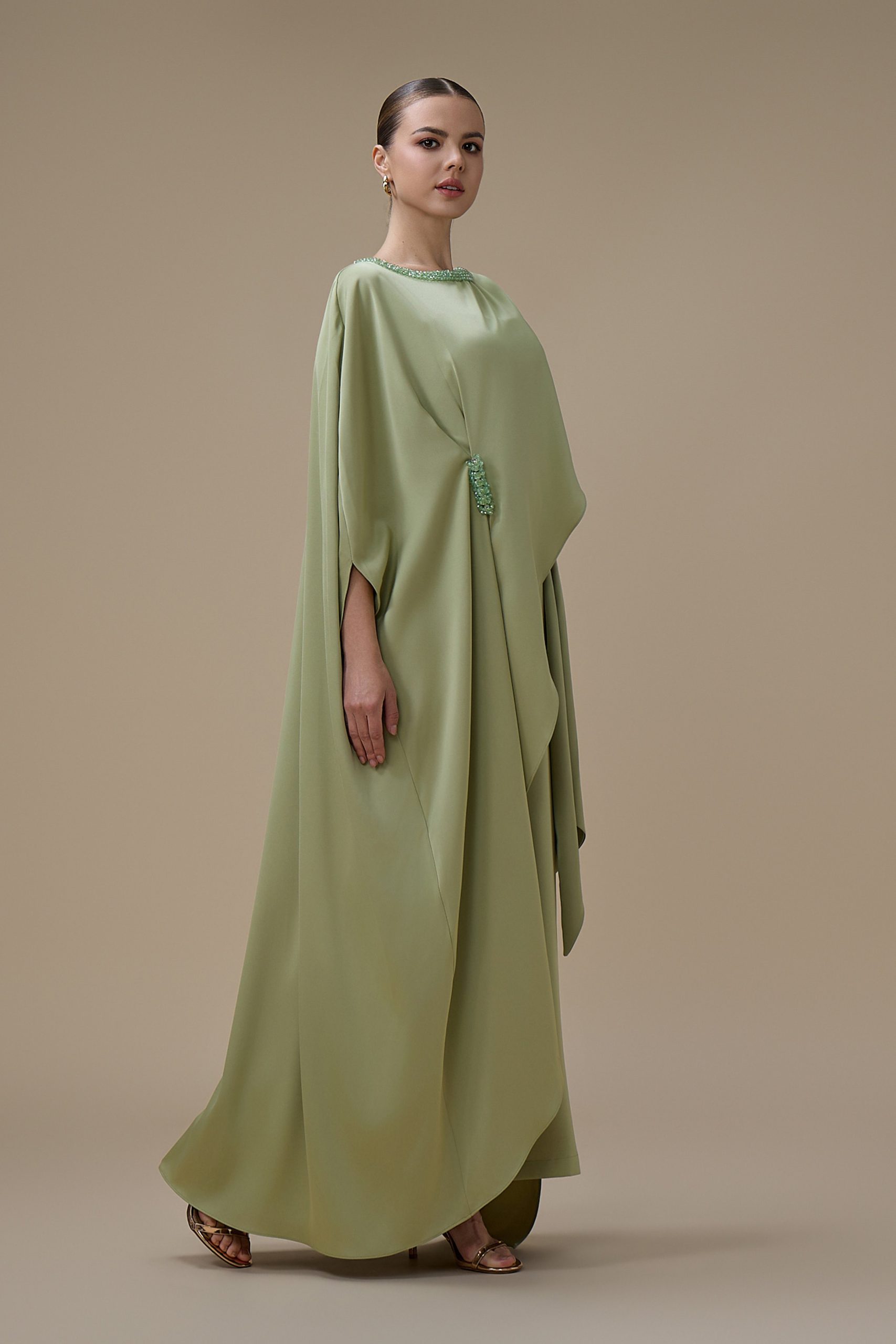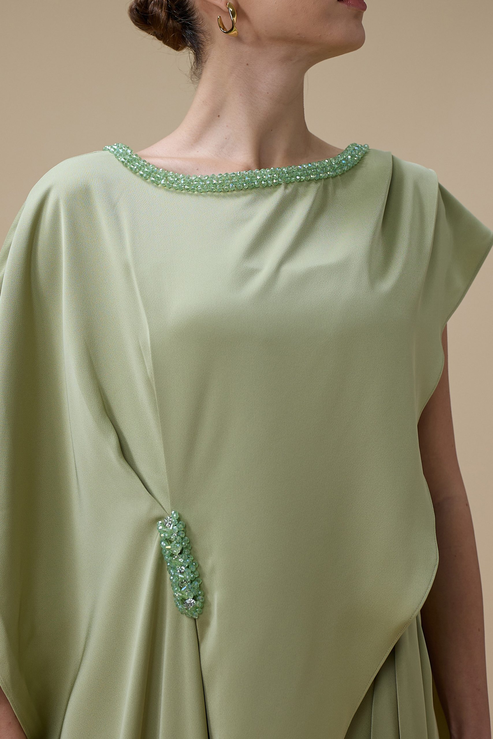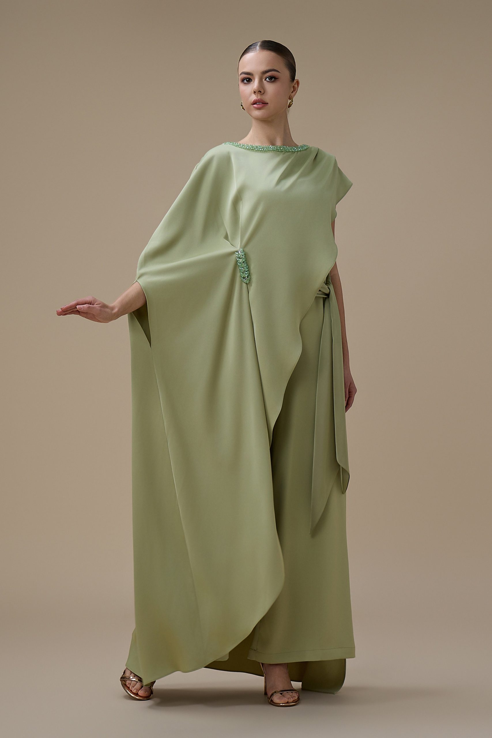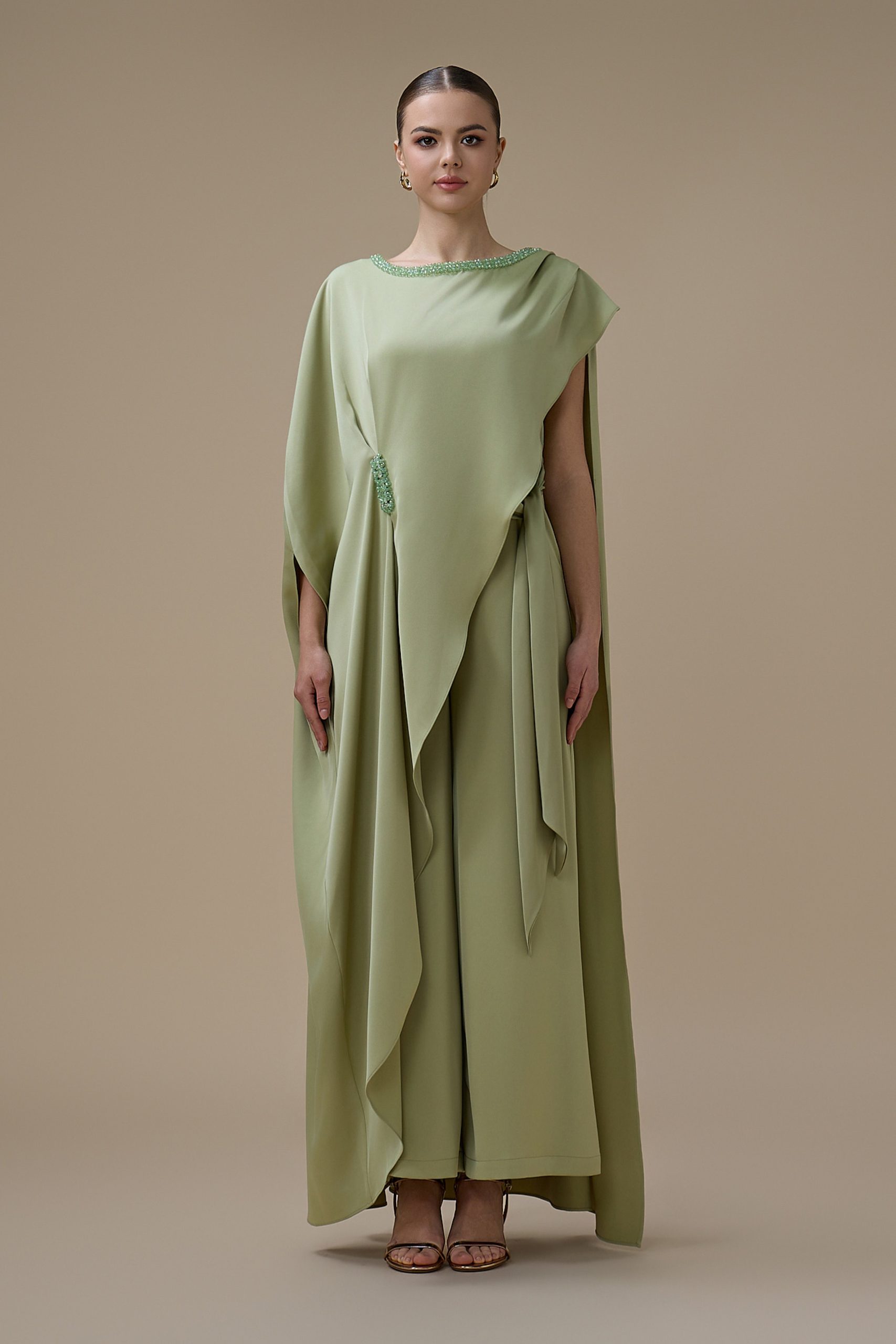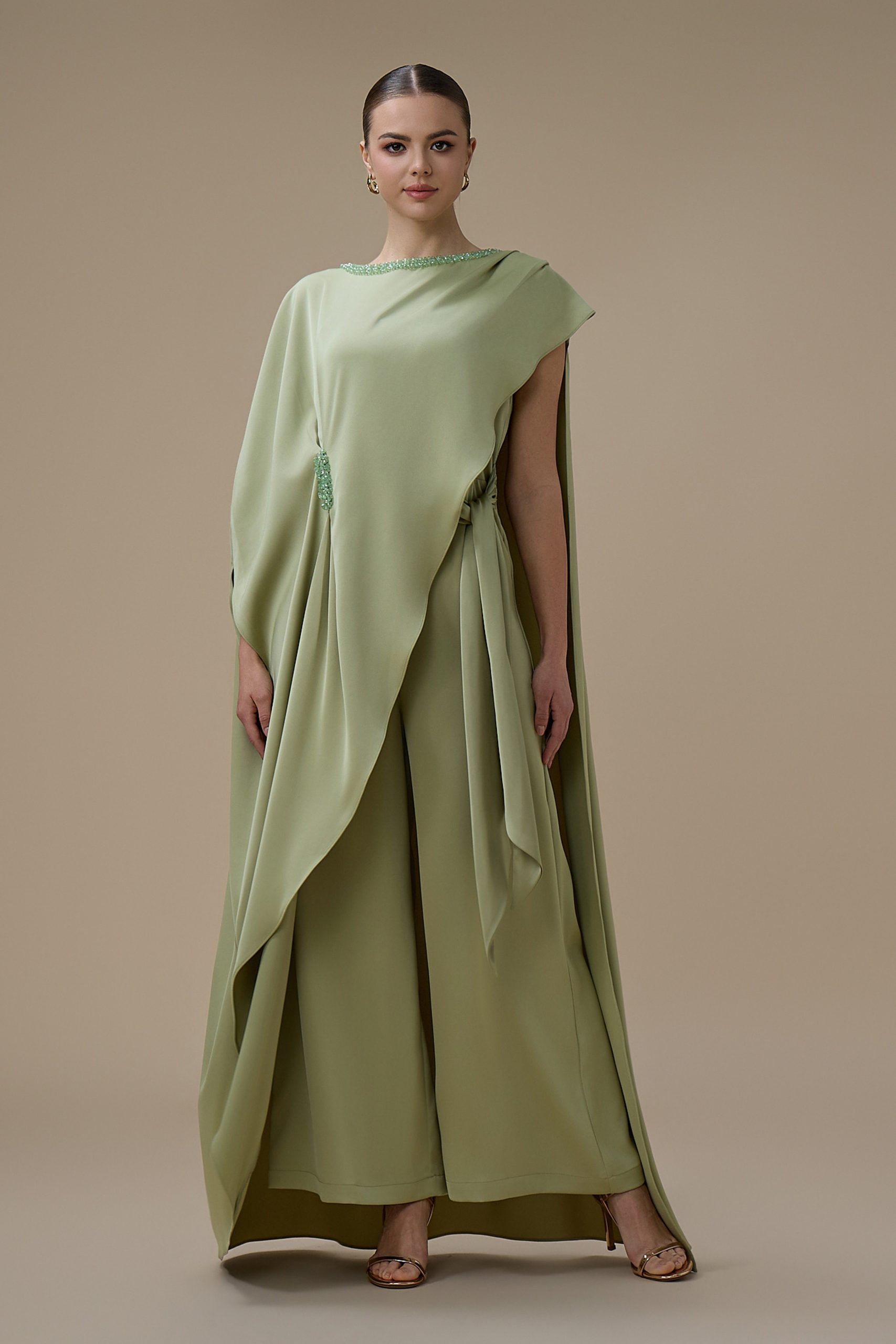 اكتان – جمبسوت من قطعتين اخضر بتصميم كاب مطرز