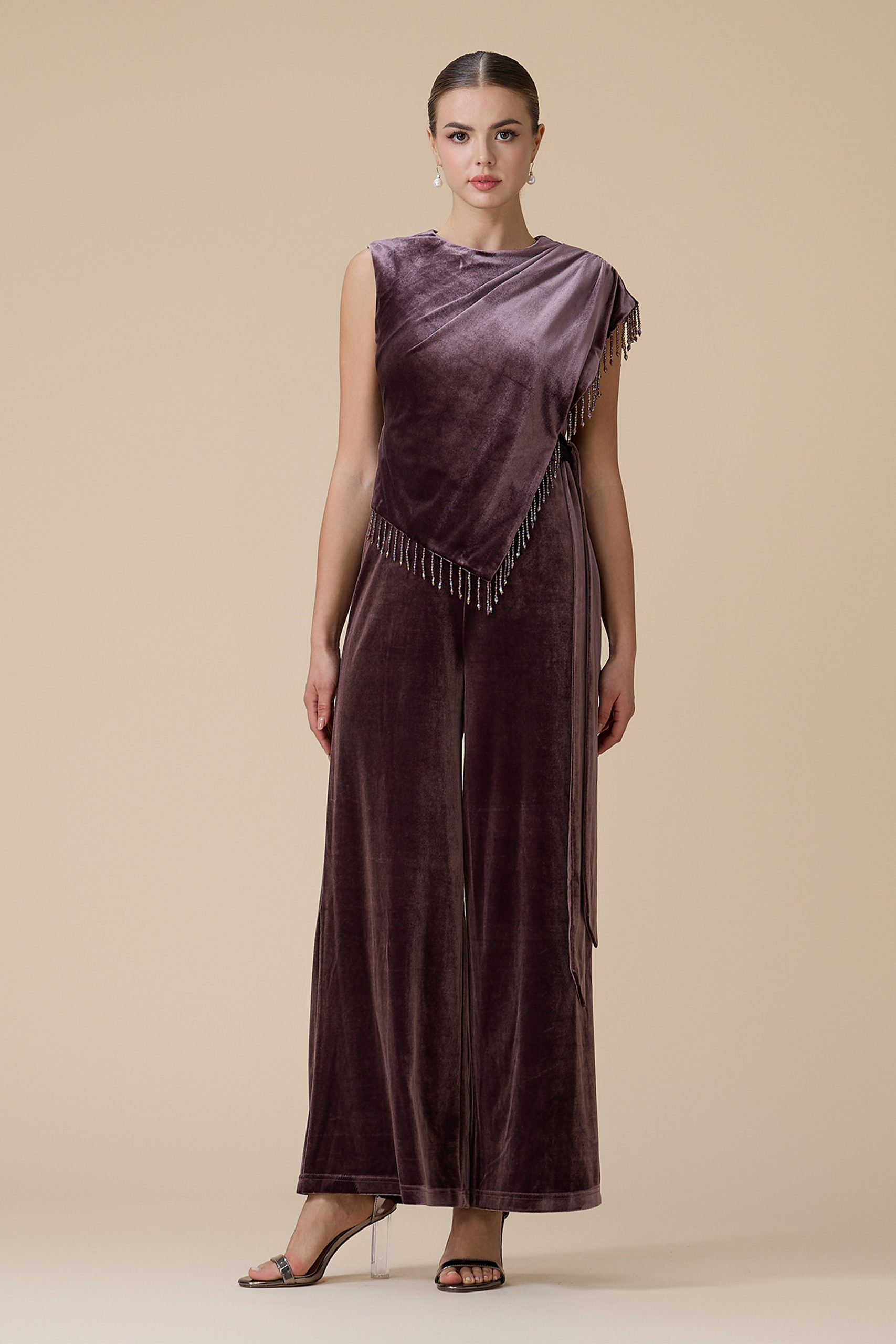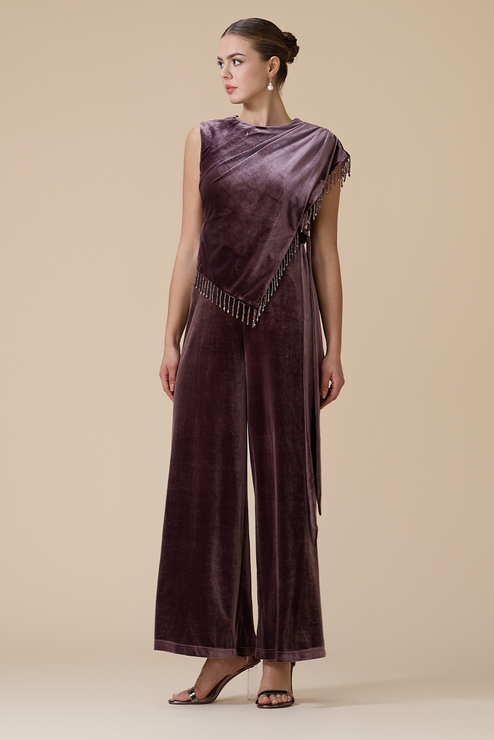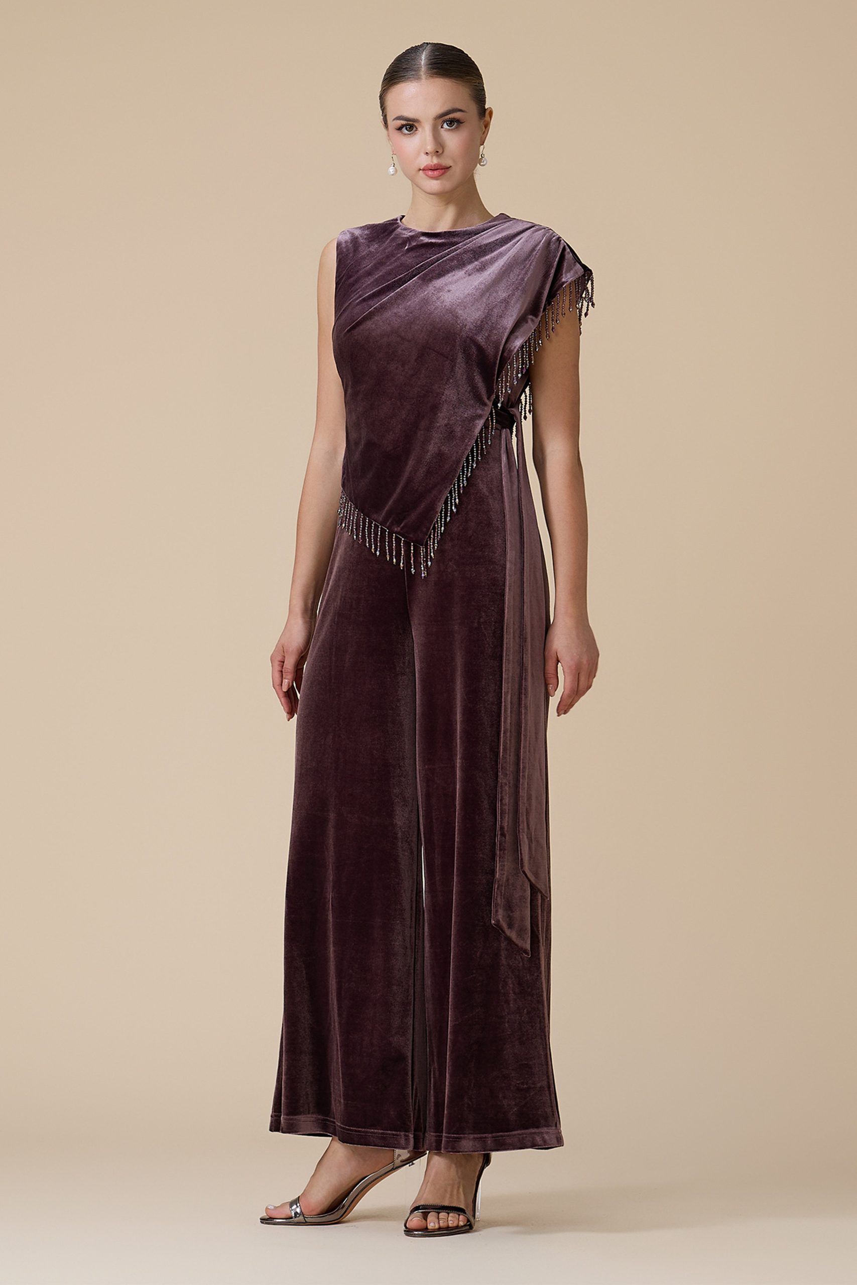 اكتان – جمبسوت بنفسجي أنيق بقصة واسعة وتفاصيل خصر راقية