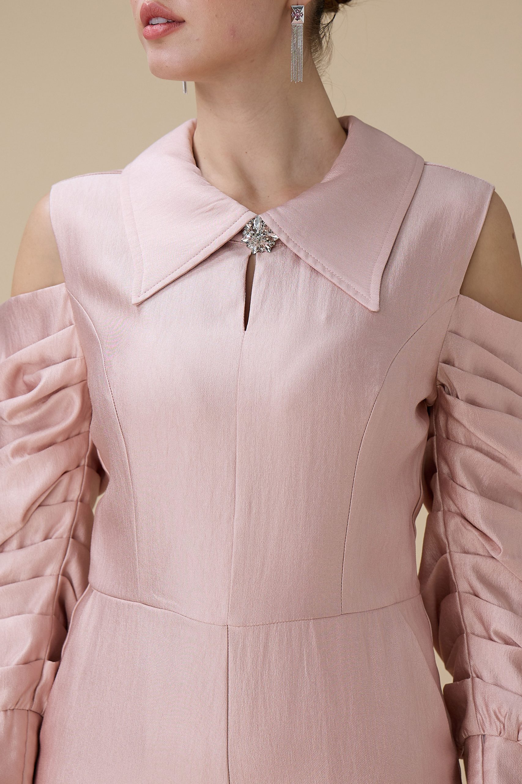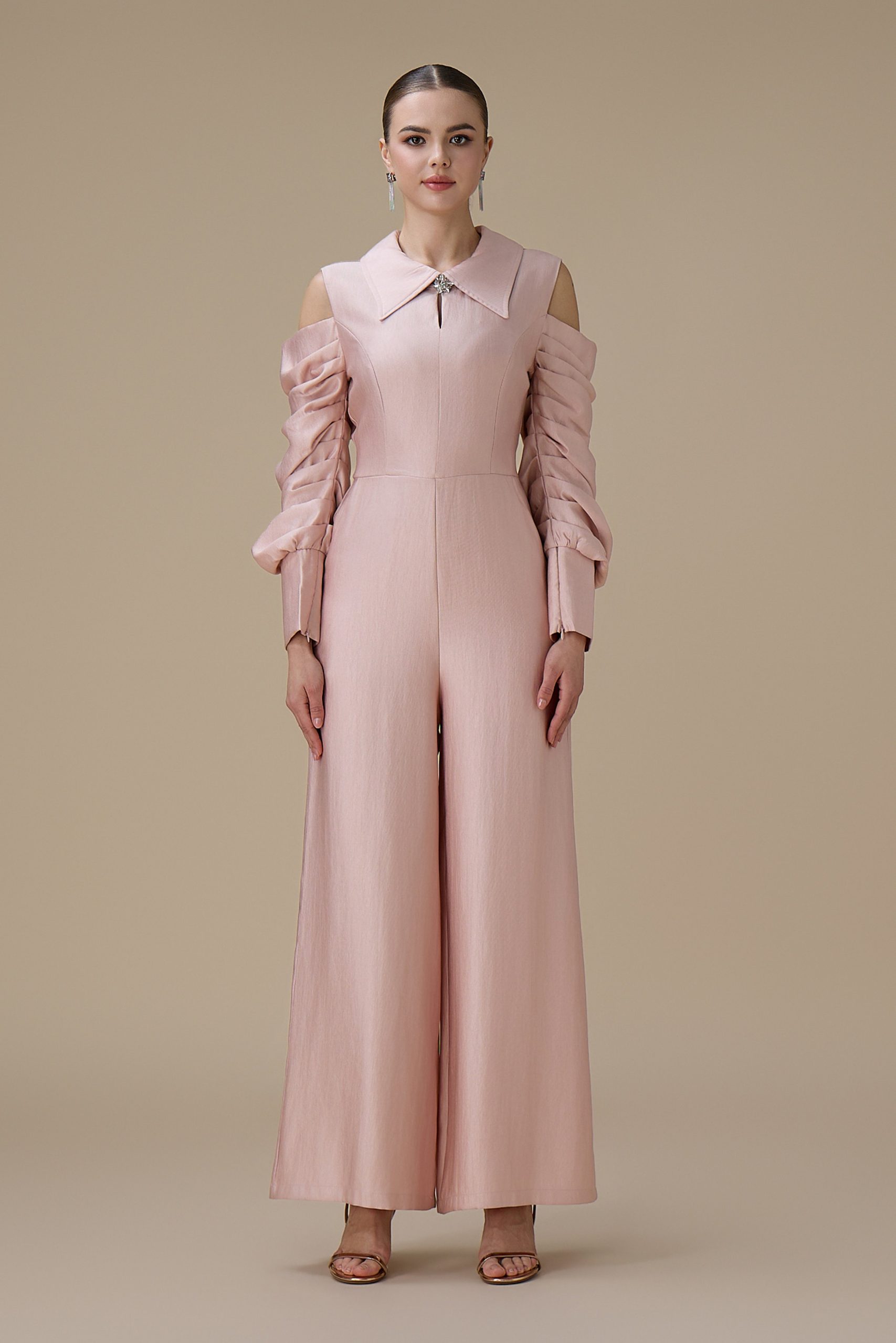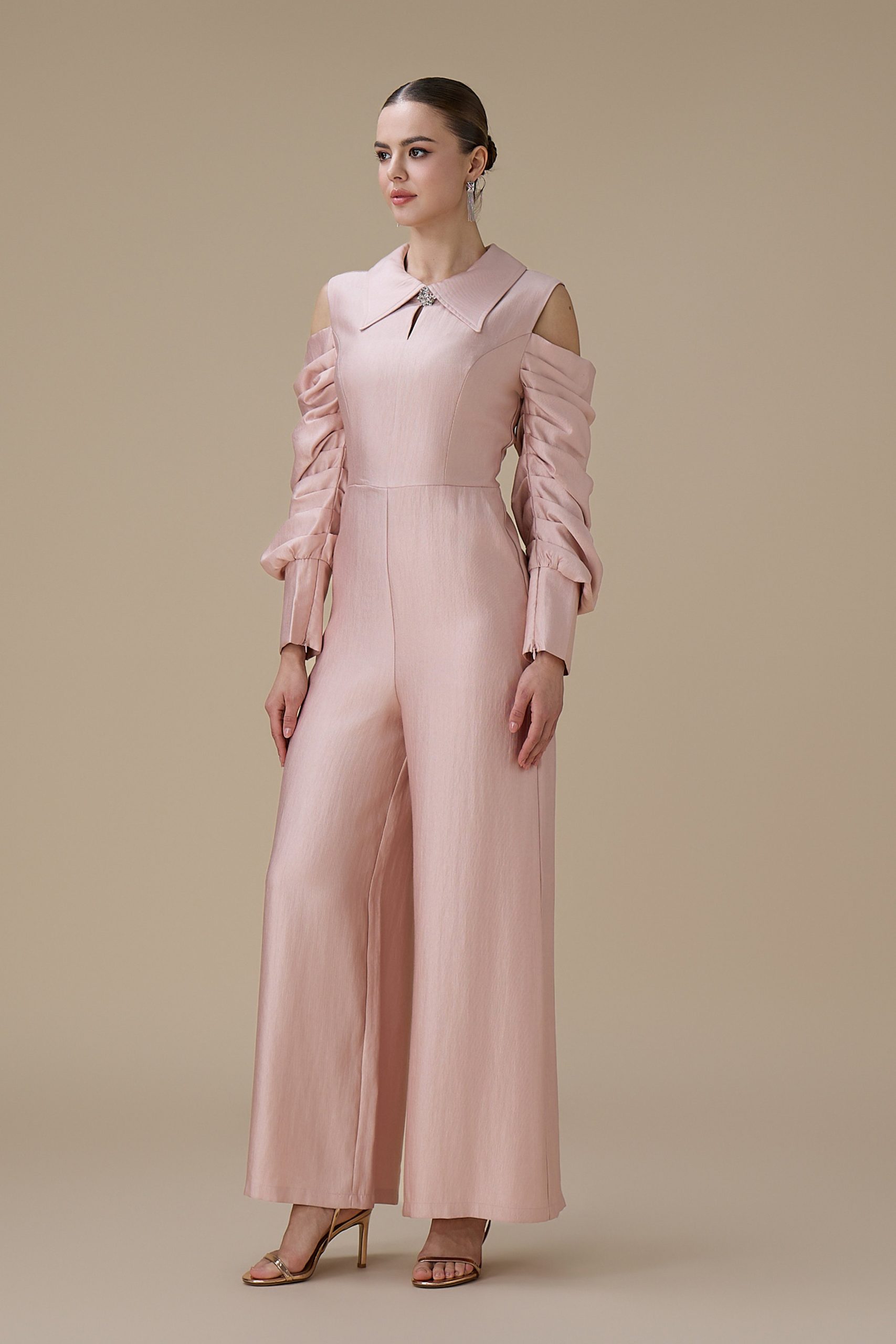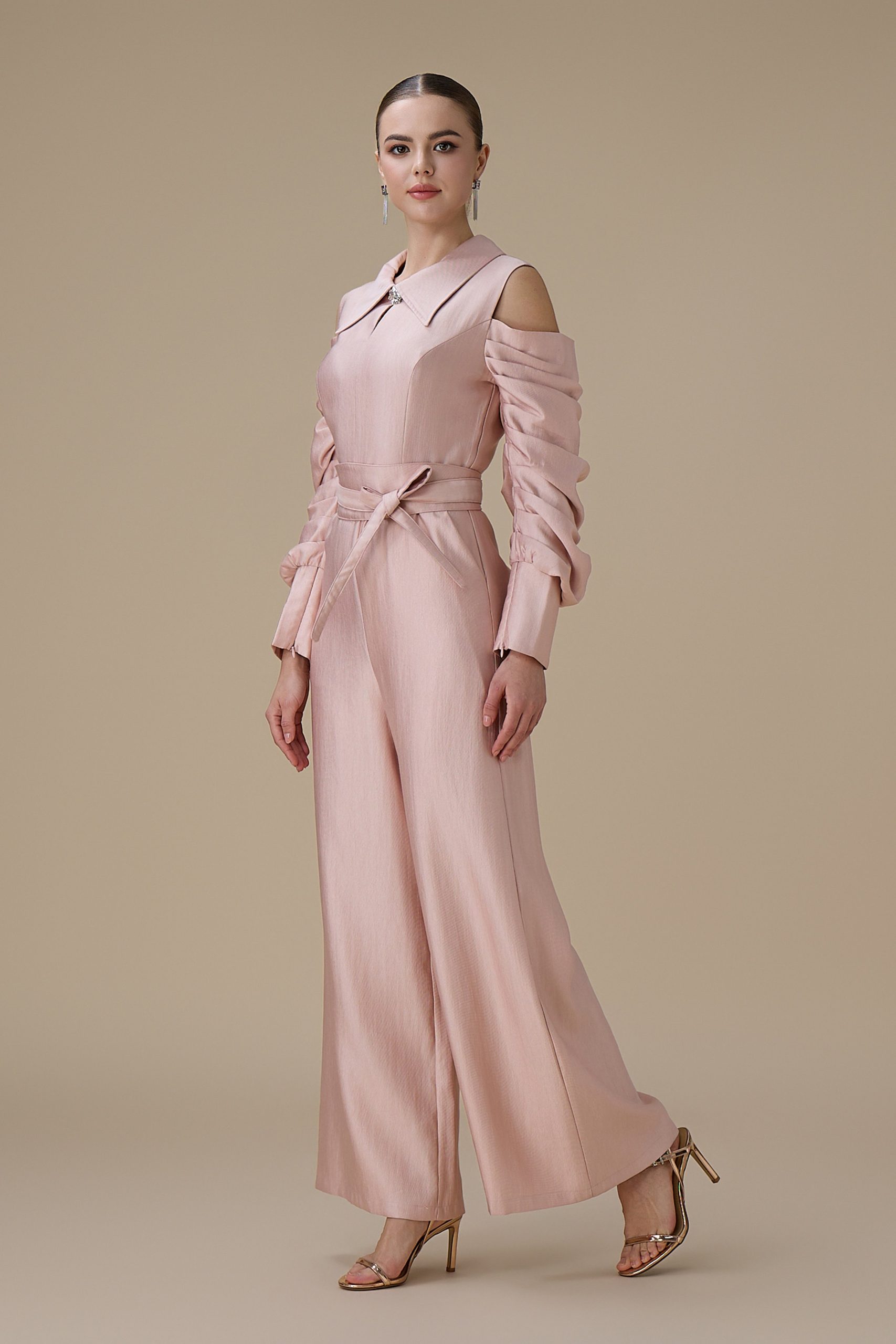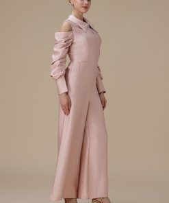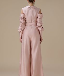 اكتان – جمبسوت وردي أكمام مكشوفة ببقصة بنطال واسع