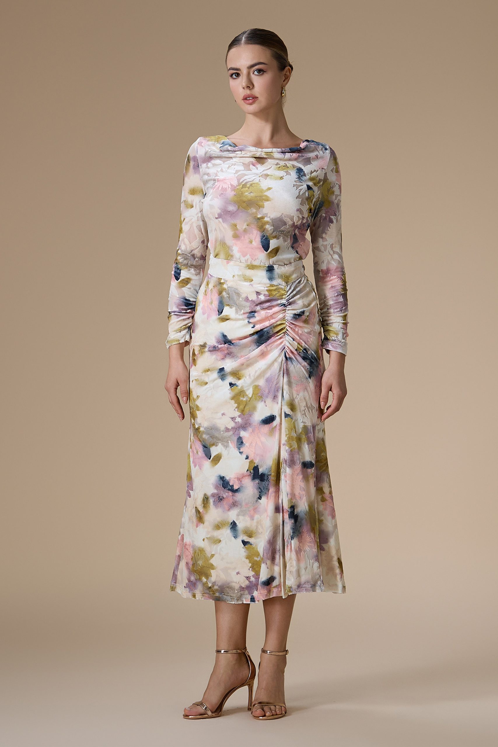 اكتان – طقم بيج ميدي مشجر بطبعات باستيل