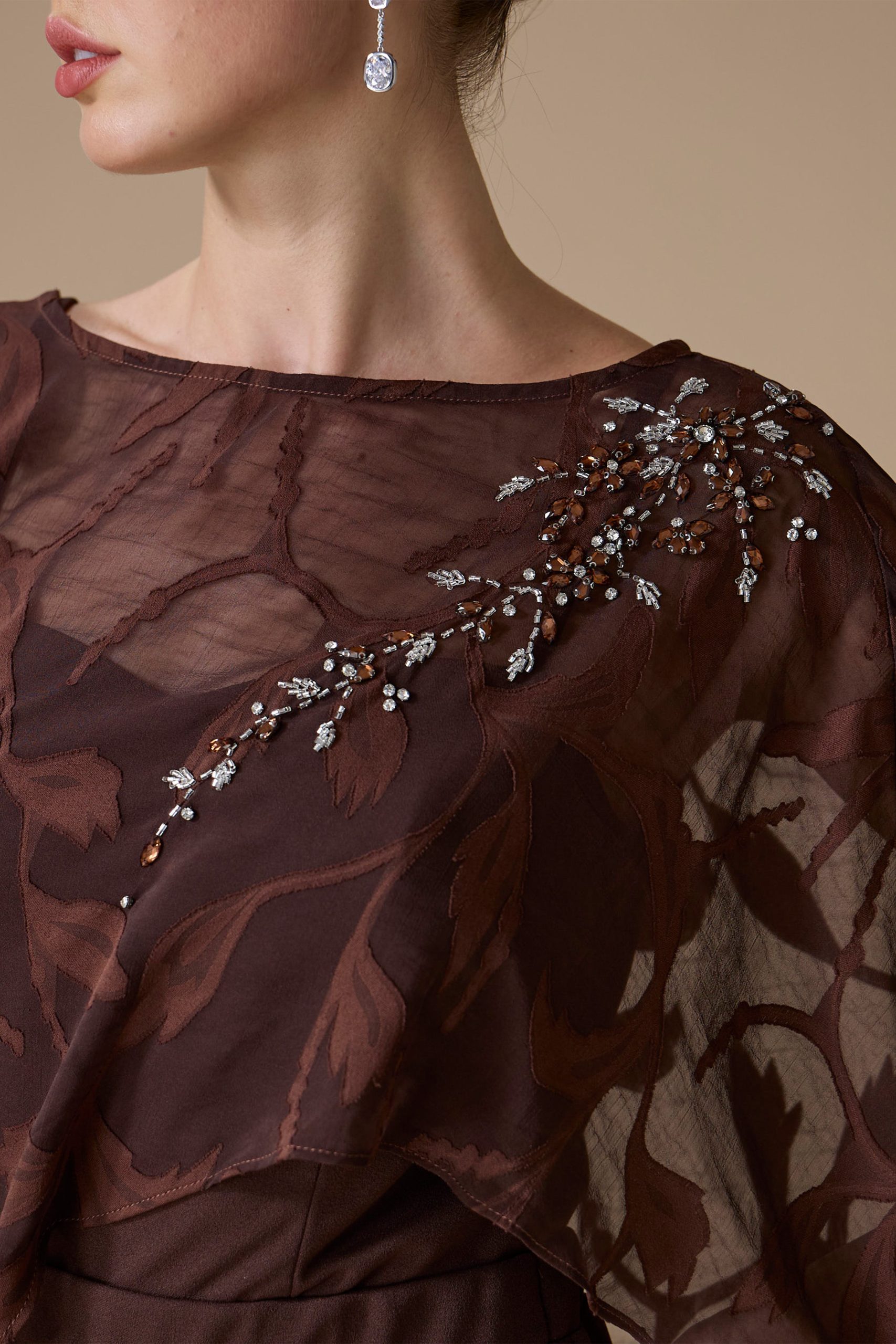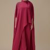 أوبرا فاشن – جمبسوت سهرة حرير ستان بكتف واحد مزين بورد