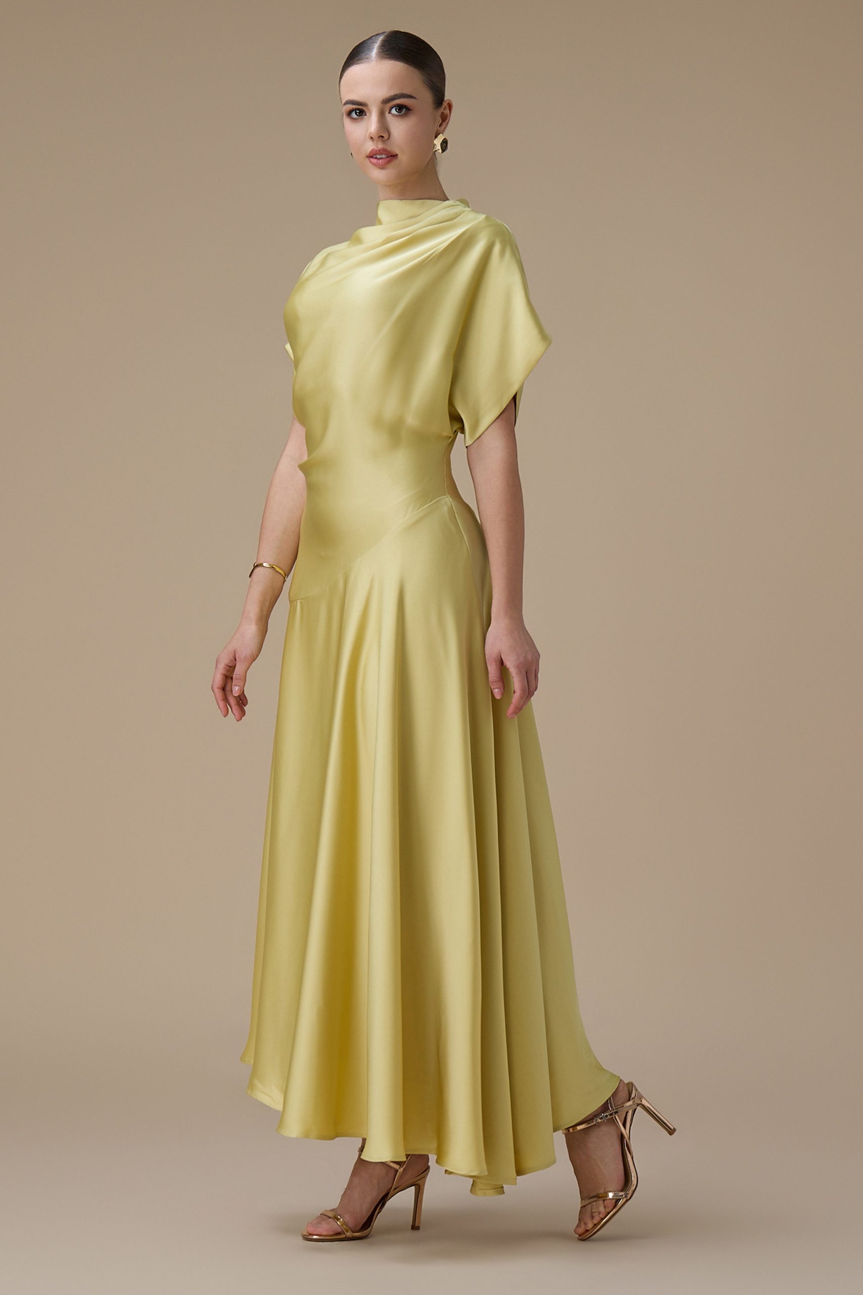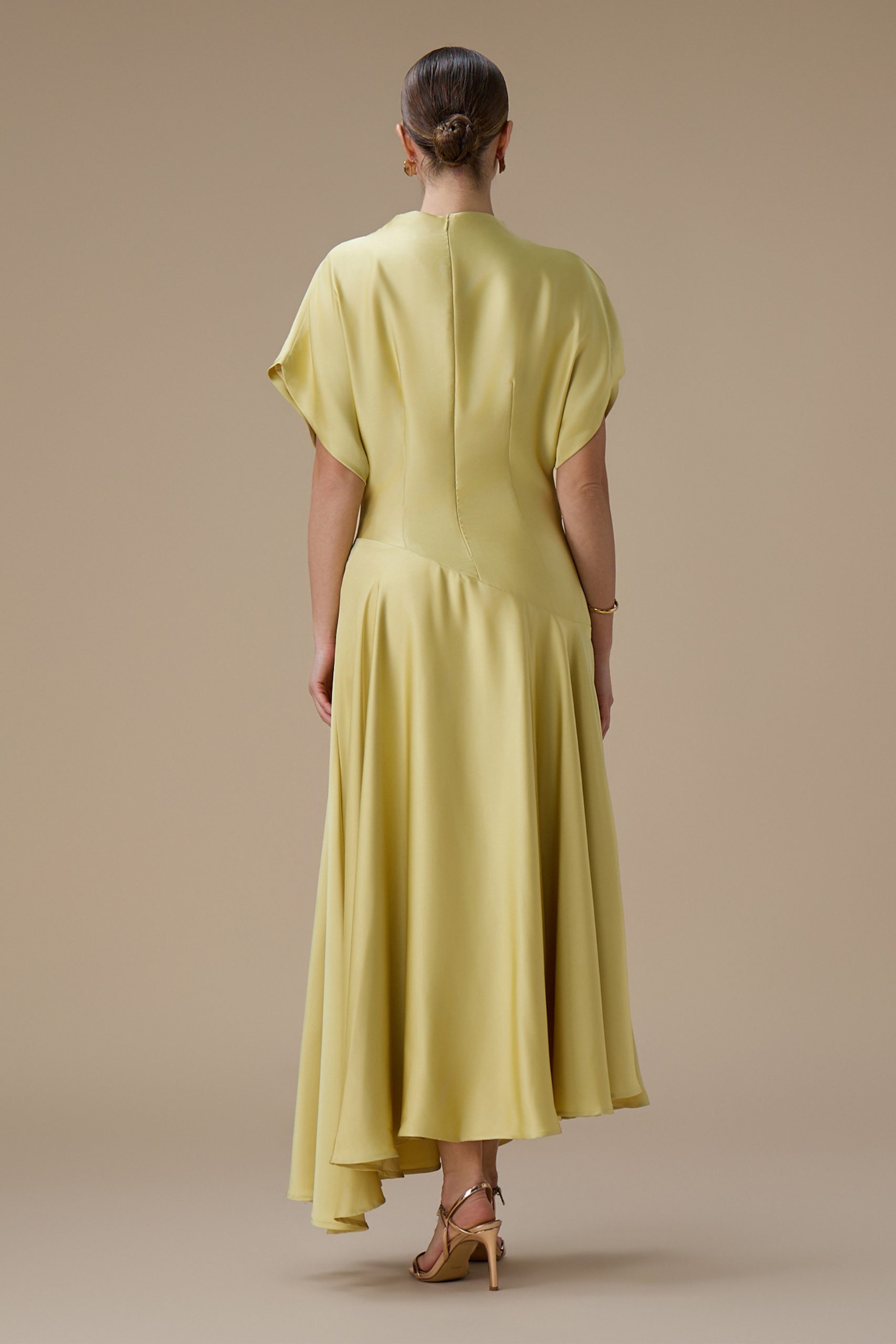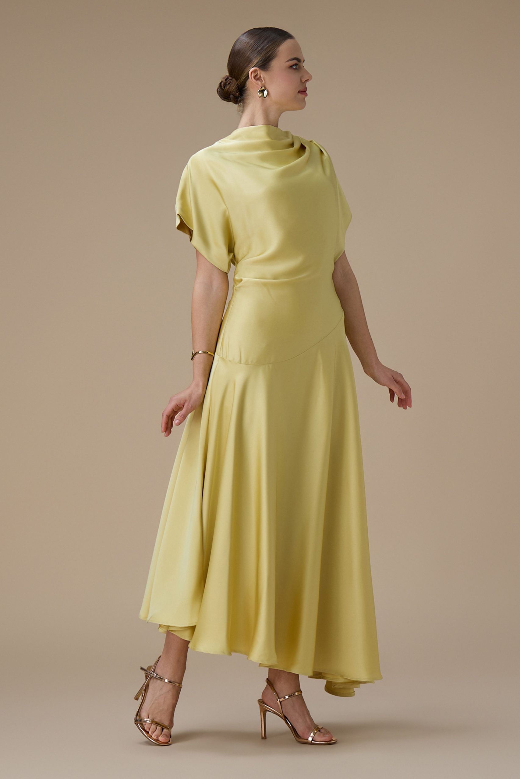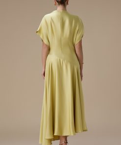 اكتان – فستان أصفر ميدي بقصة انسيابية وأكمام واسعة