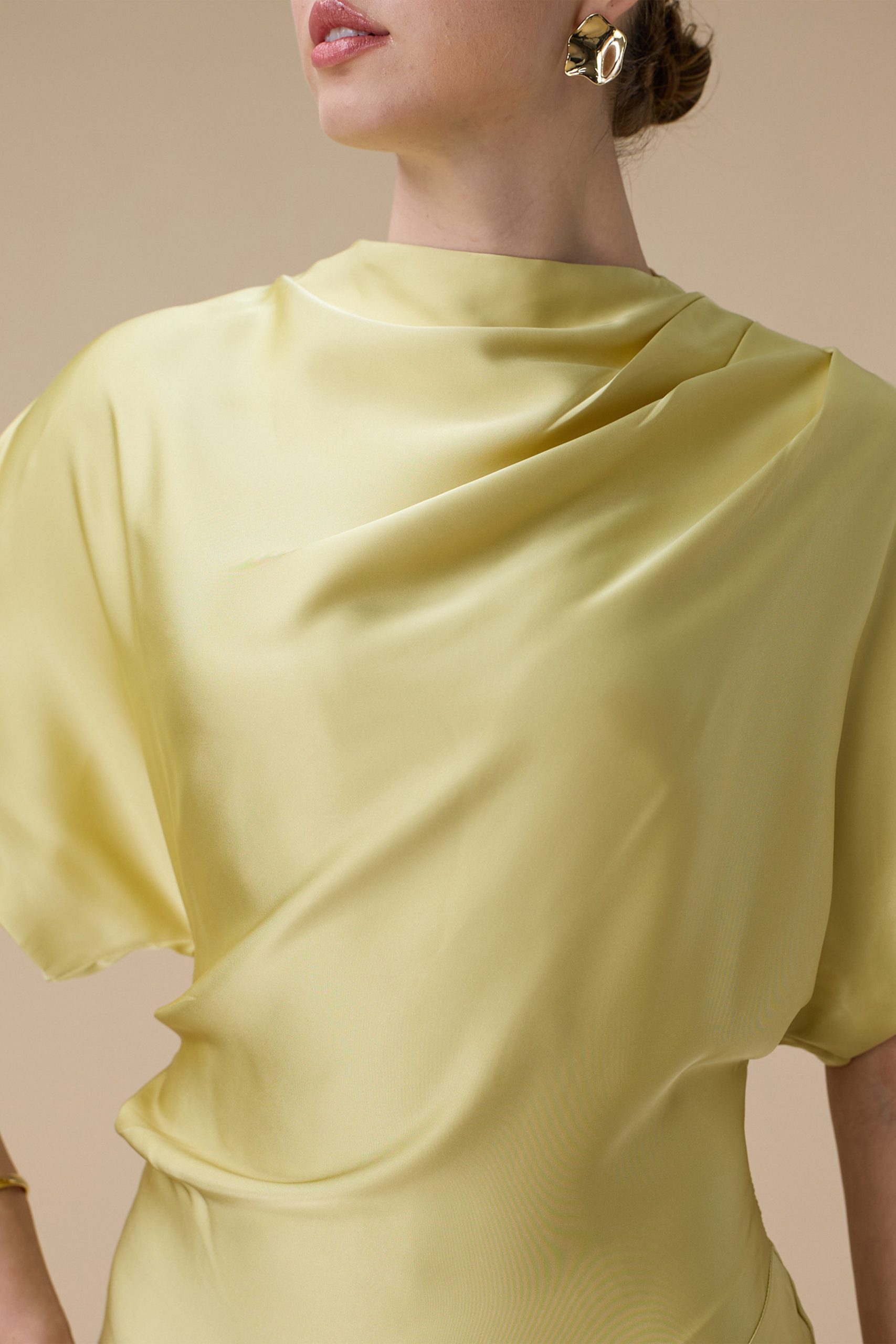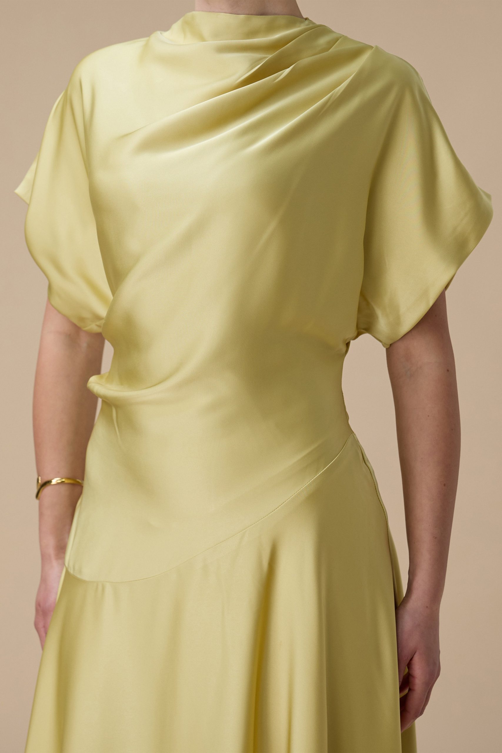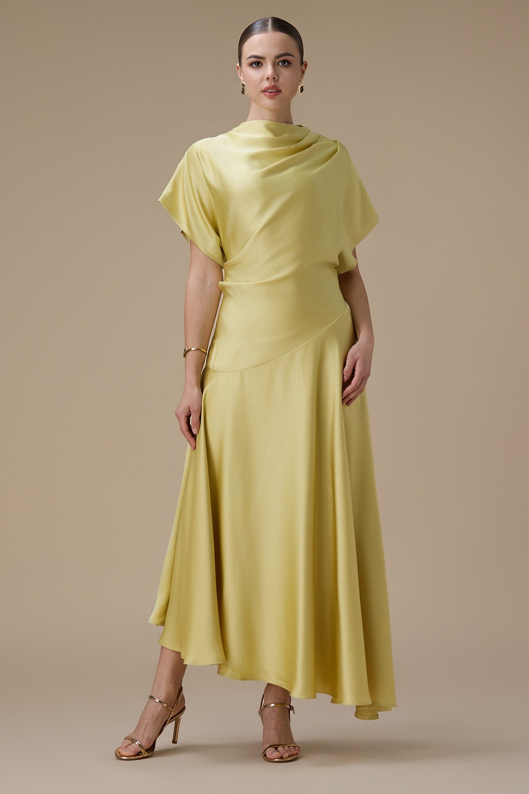 اكتان – فستان أصفر ميدي بقصة انسيابية وأكمام واسعة