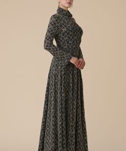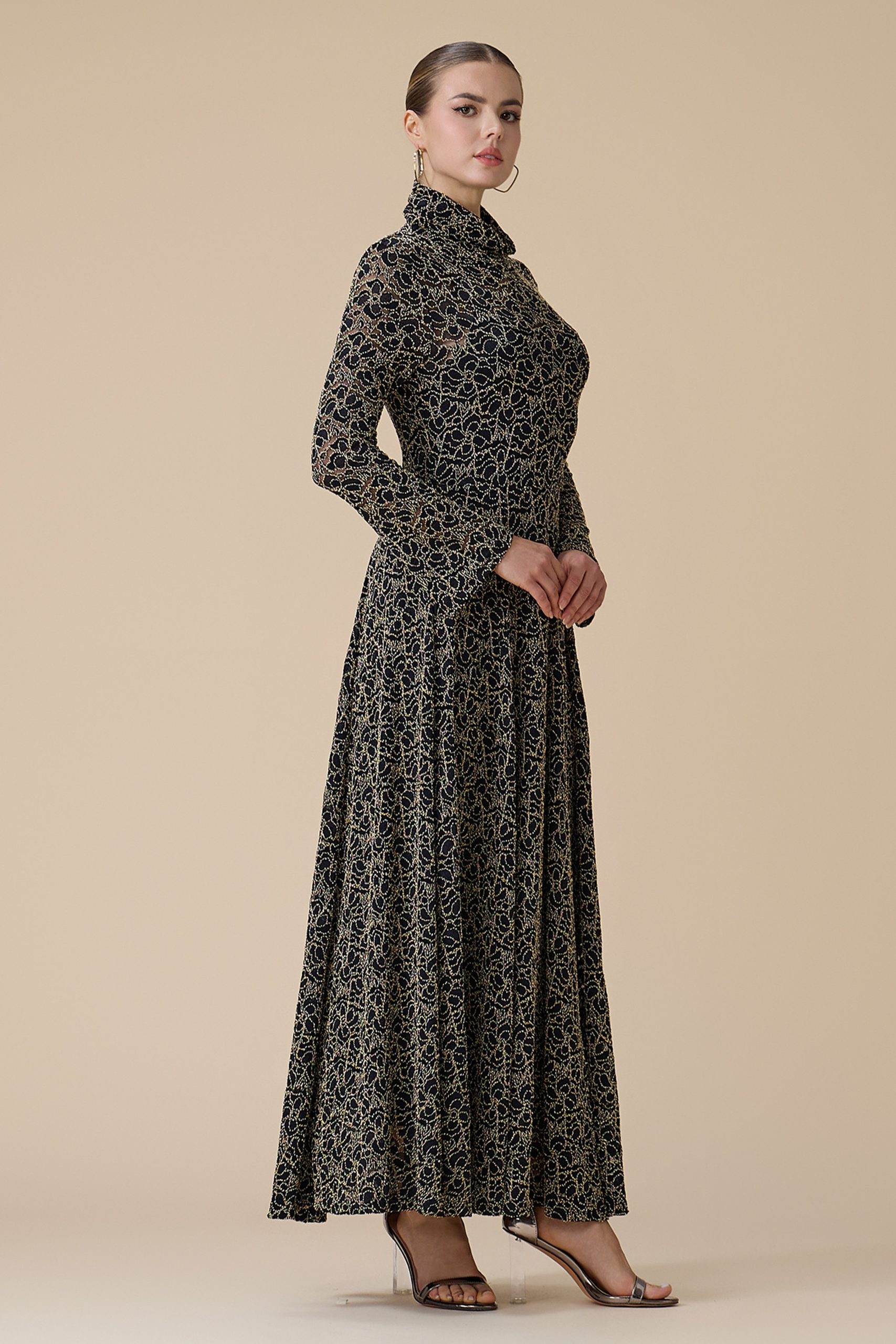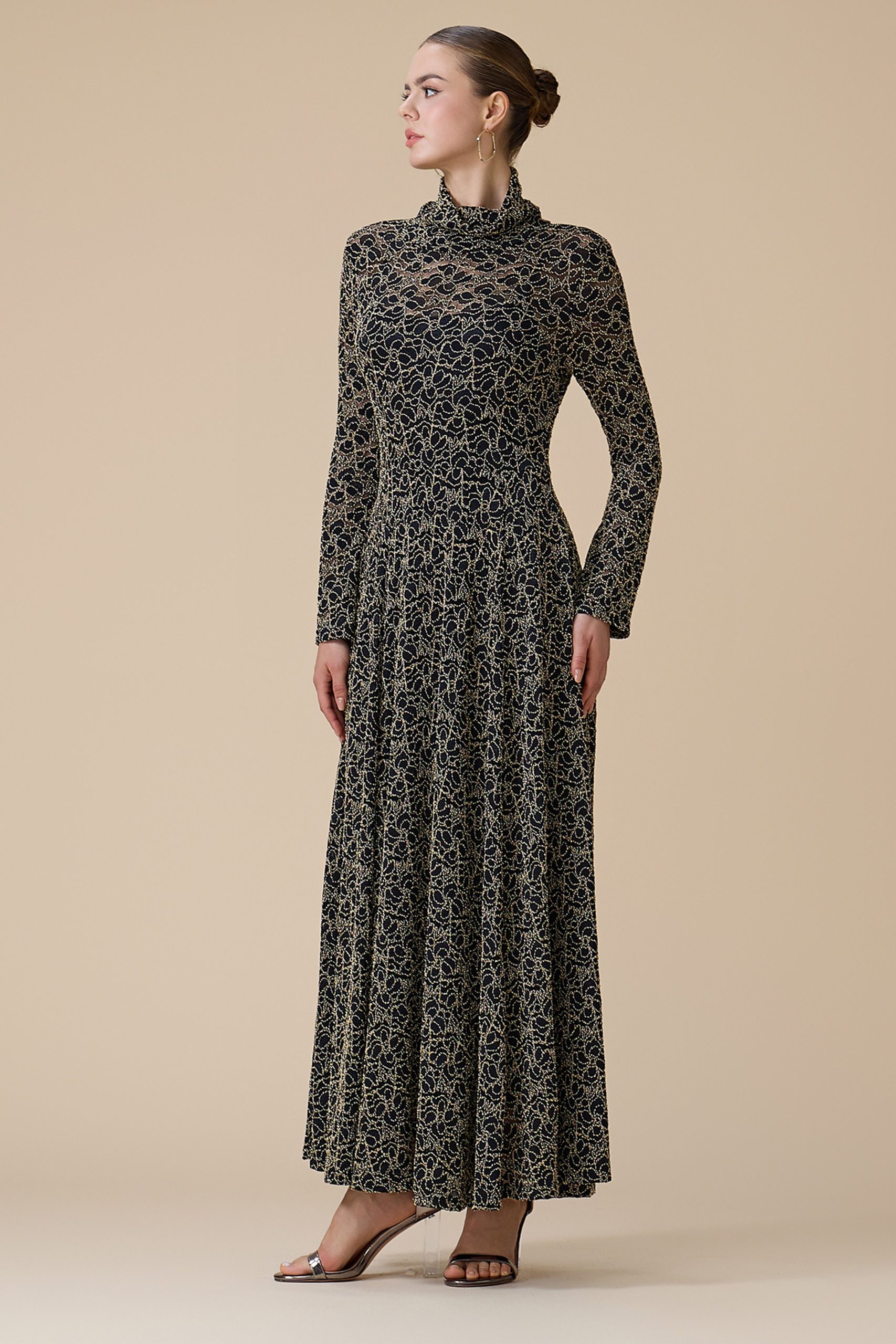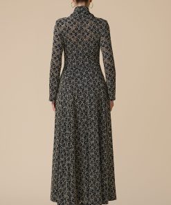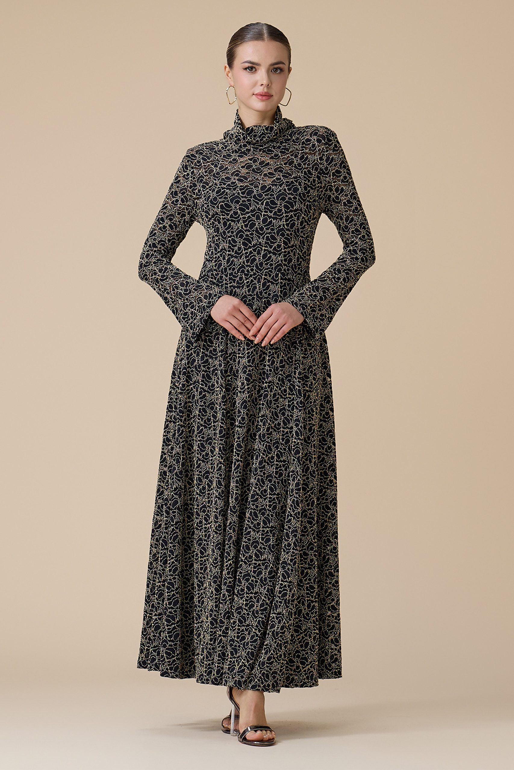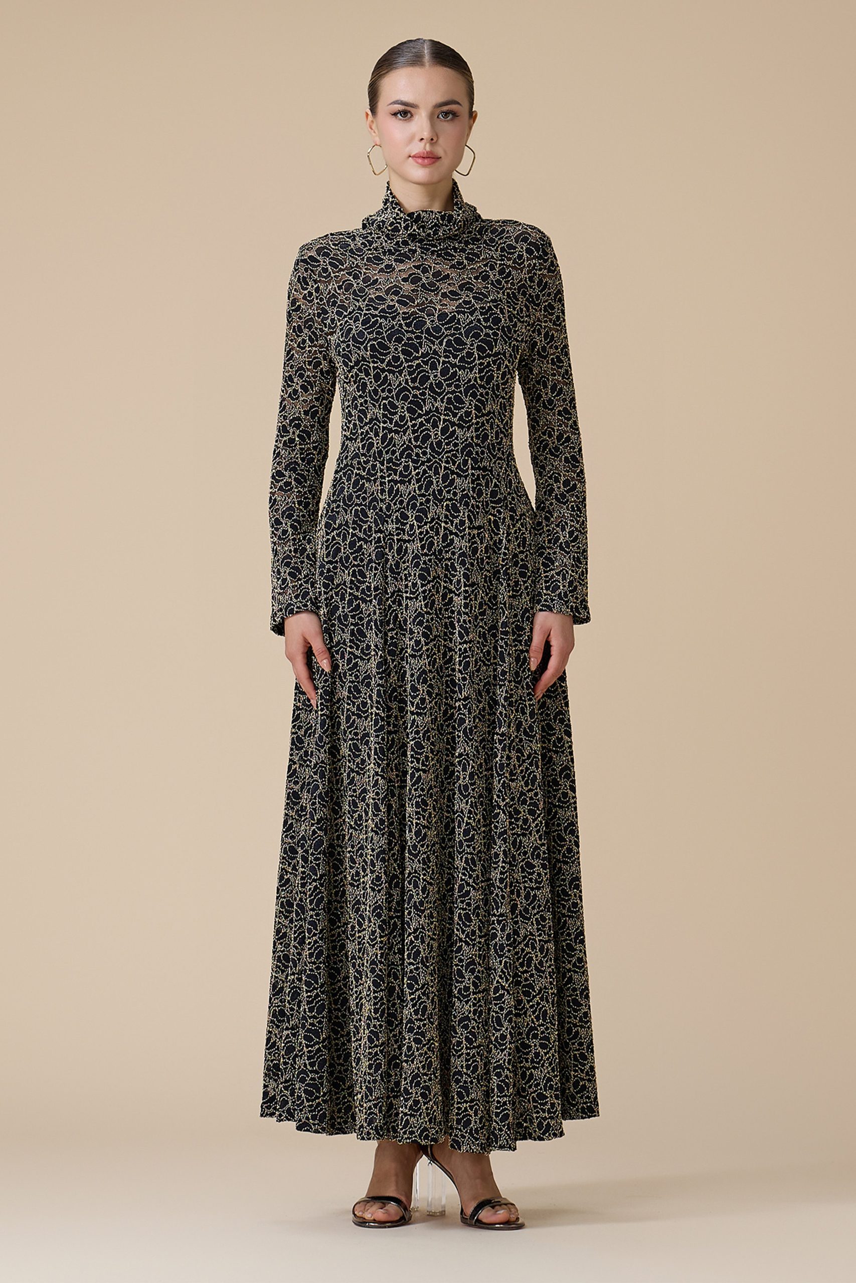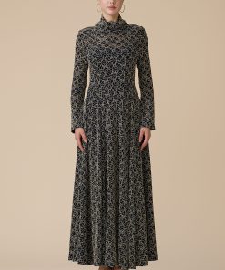 اكتان – فستان اسود دانتيل بتطريز ذهبي