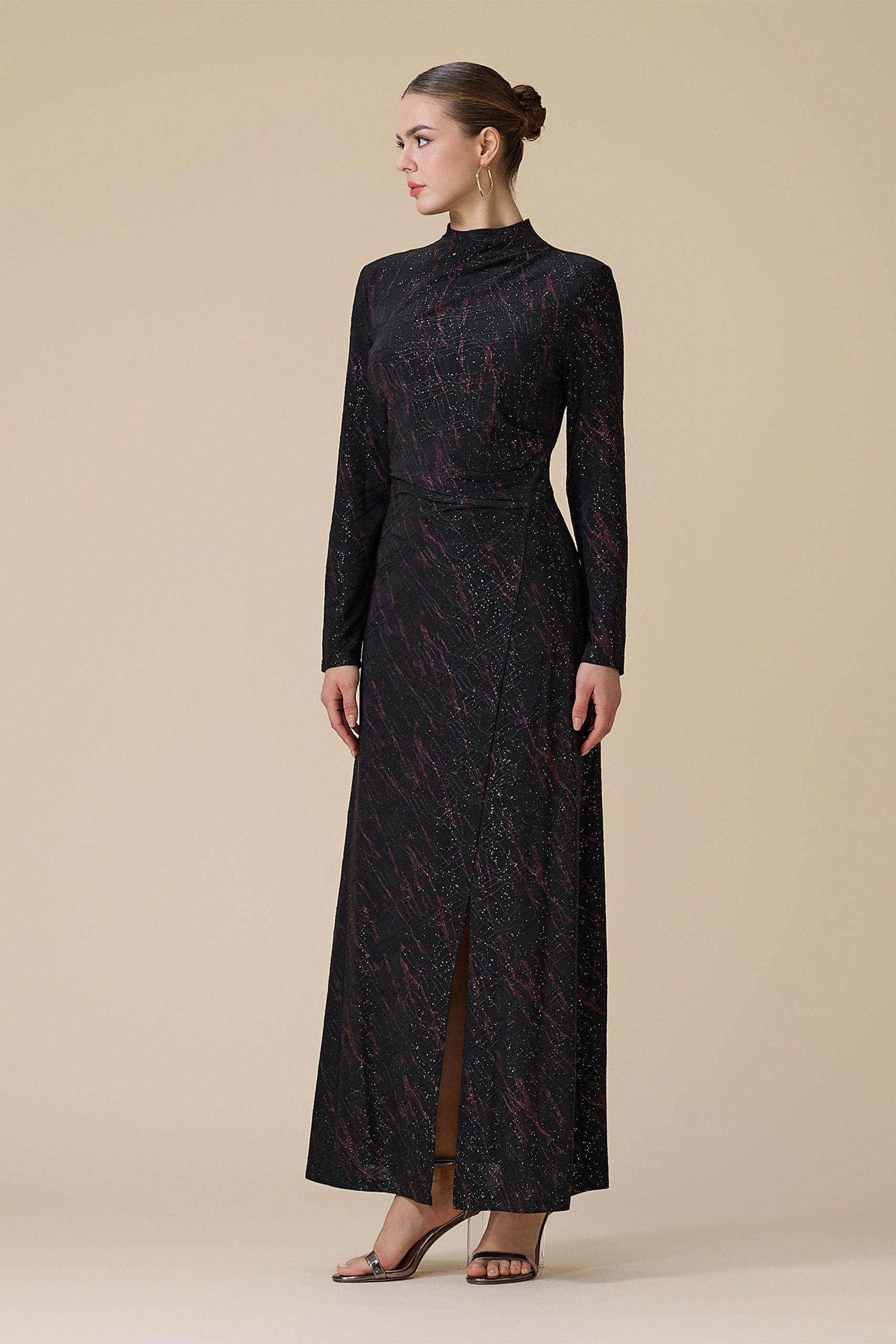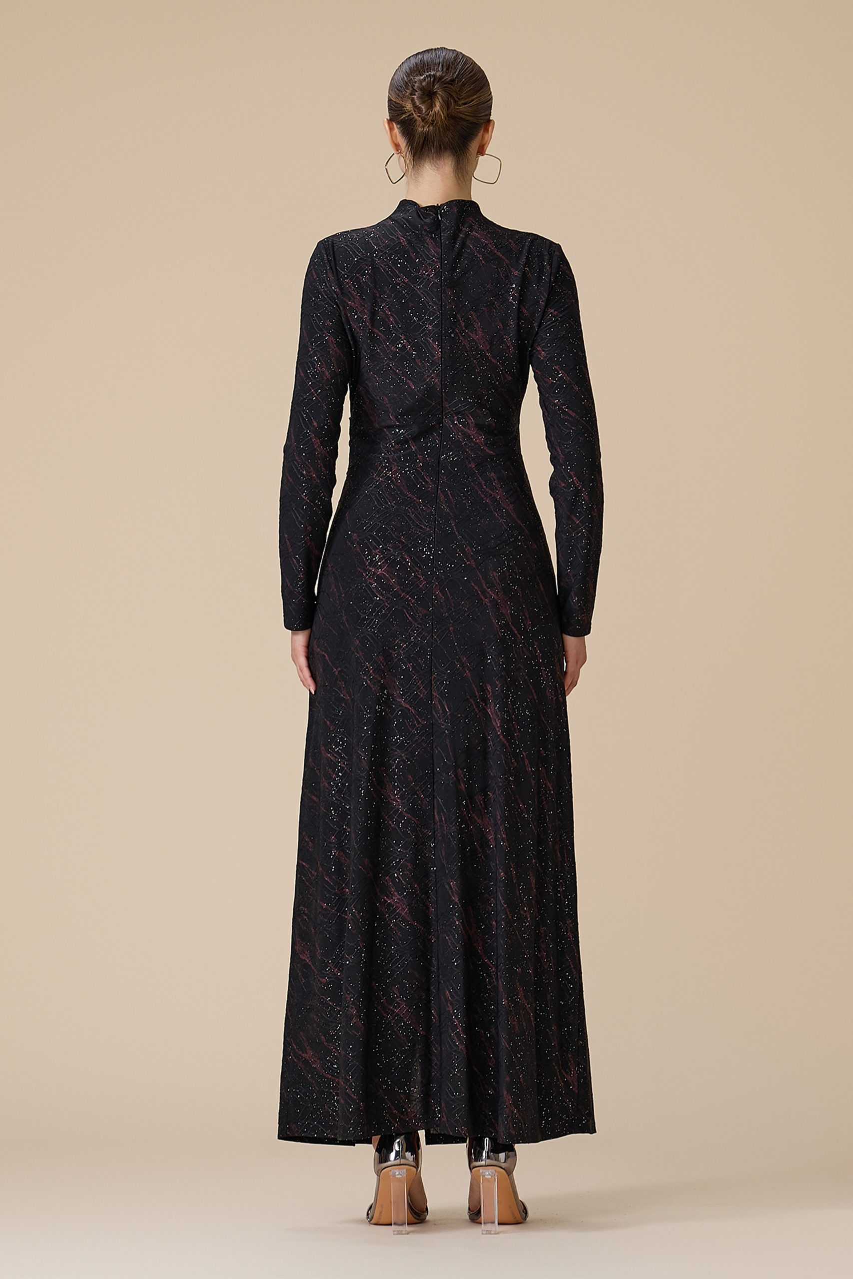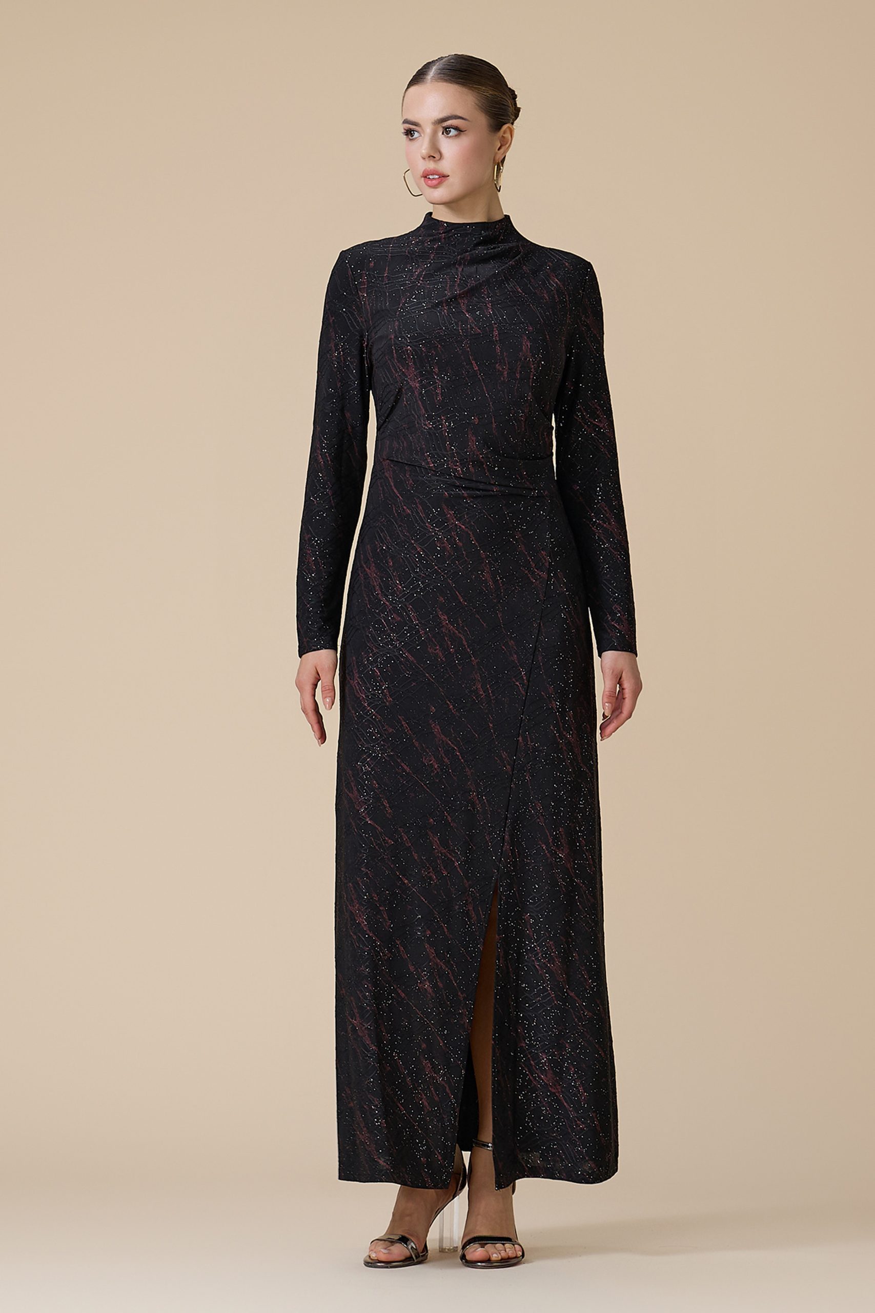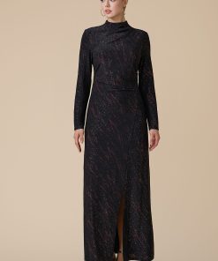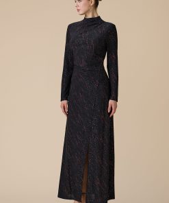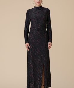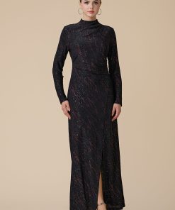 اكتان – فستان اسود طويل بأكمام طويلة