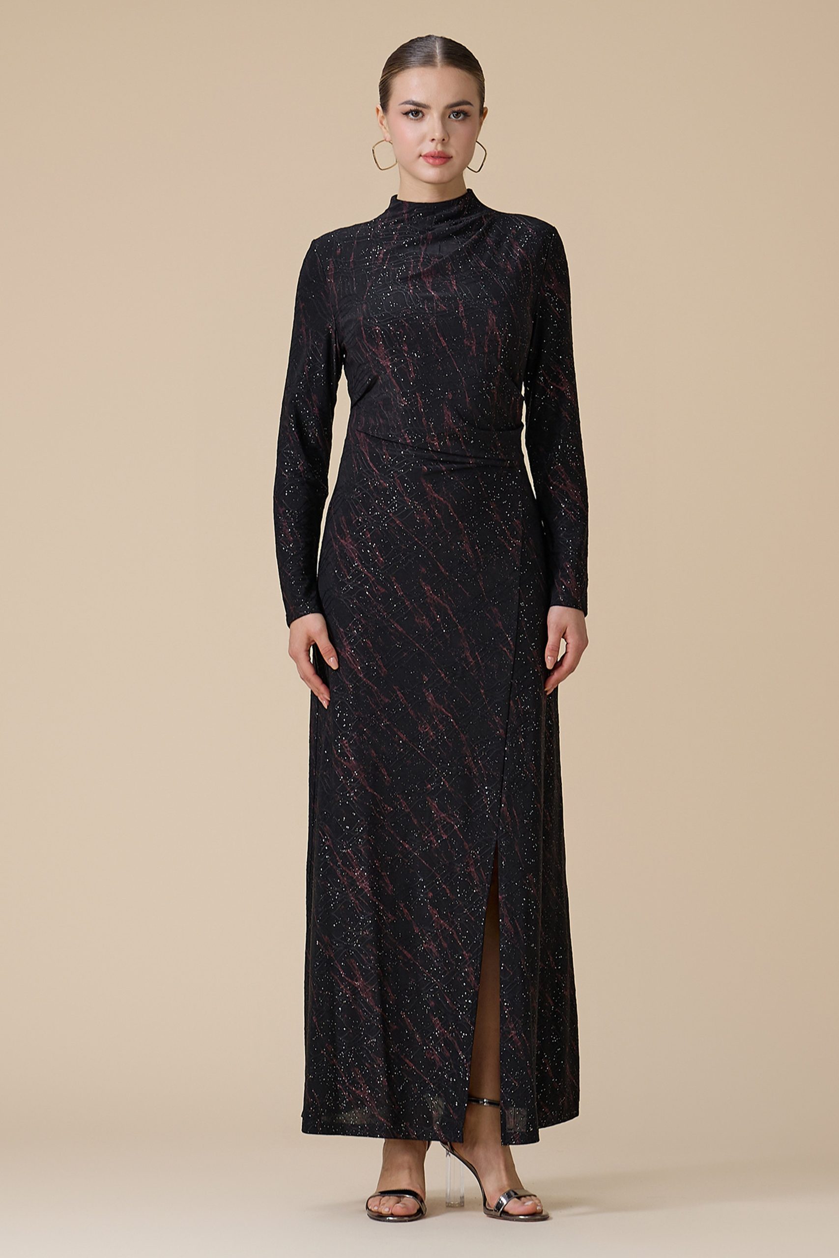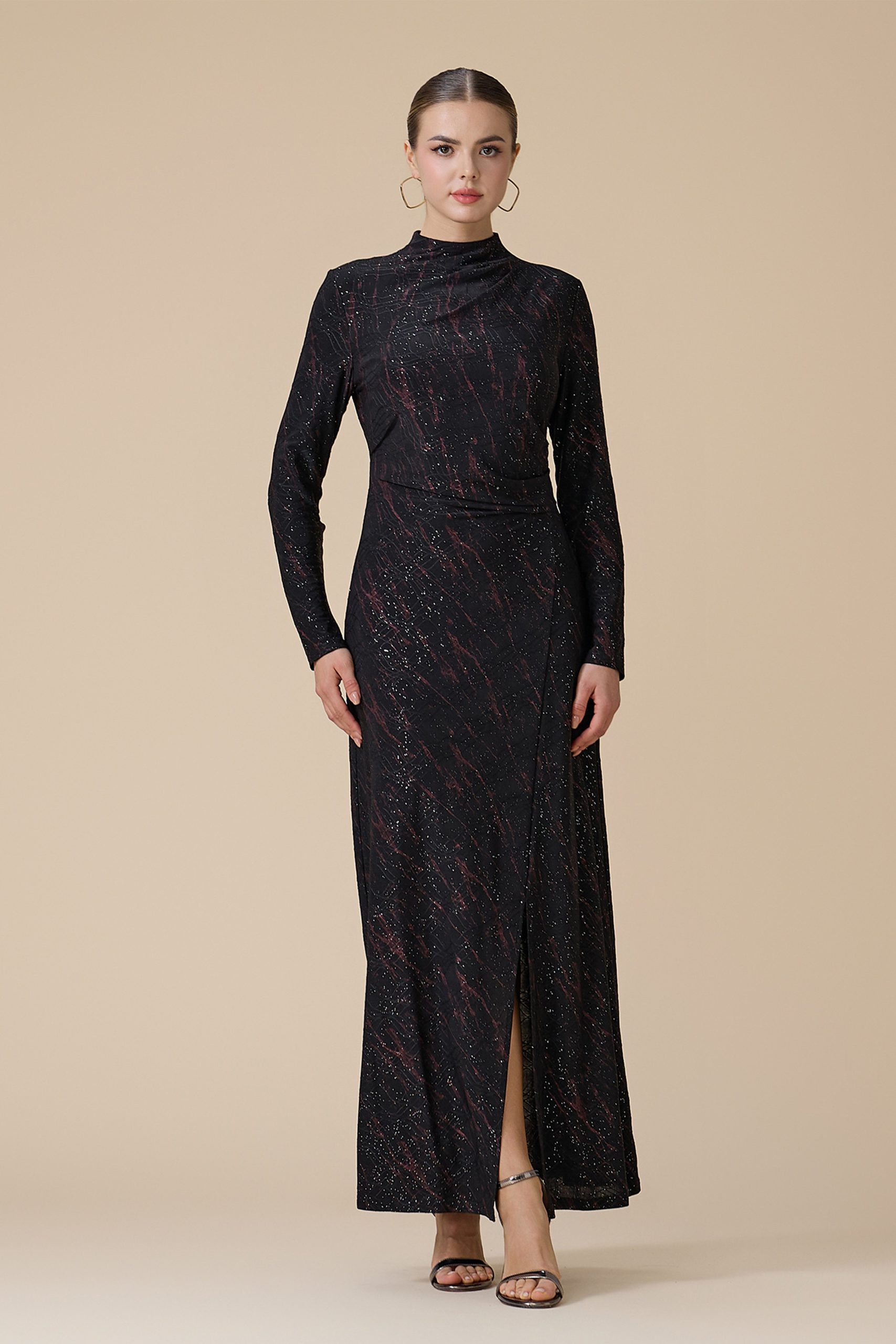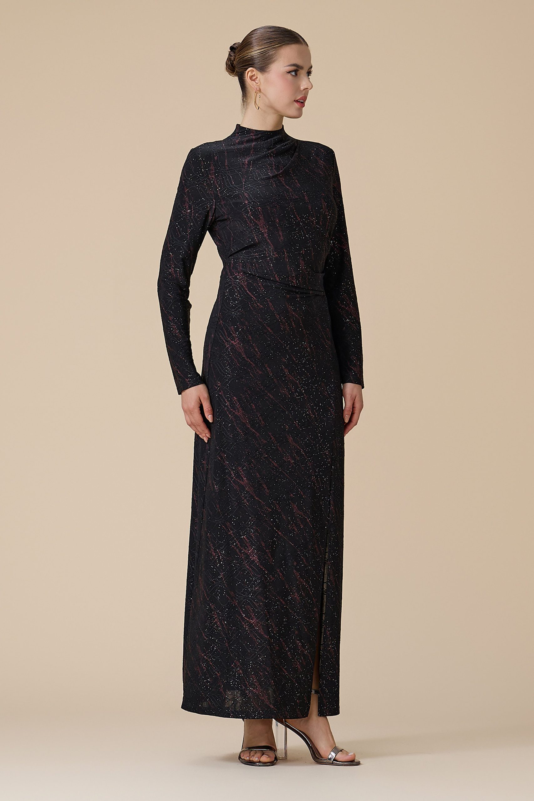 اكتان – فستان اسود طويل بأكمام طويلة