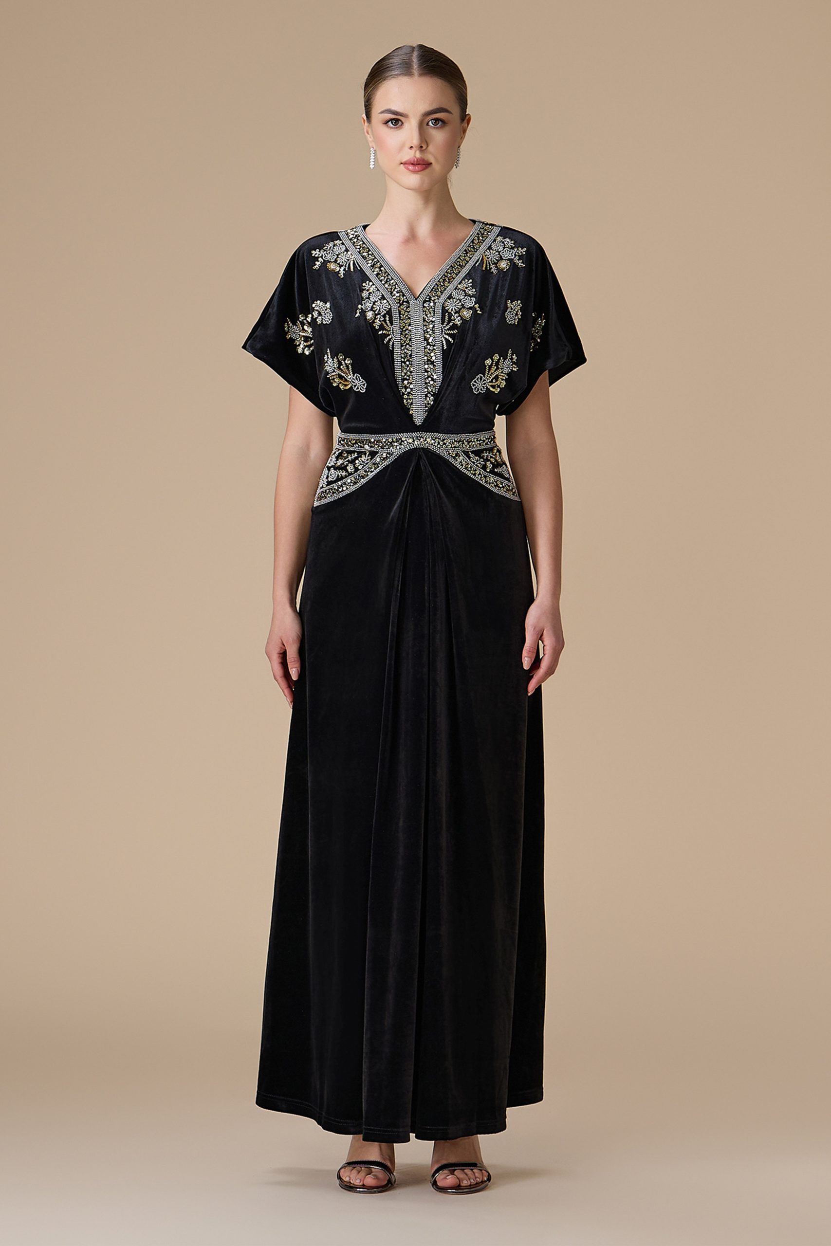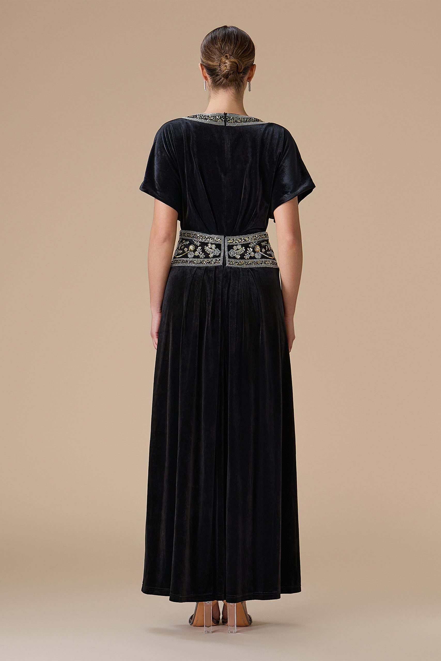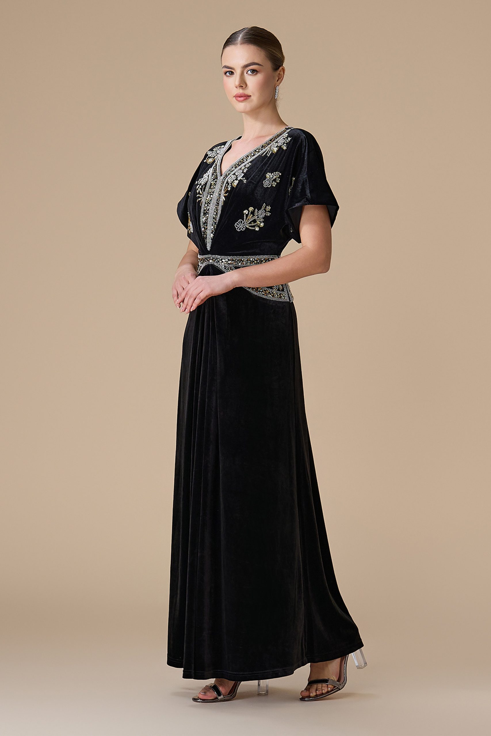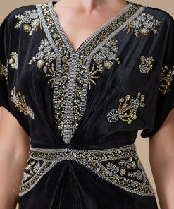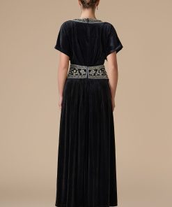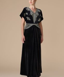 اكتان – فستان اسود طويل مخمل مطرز