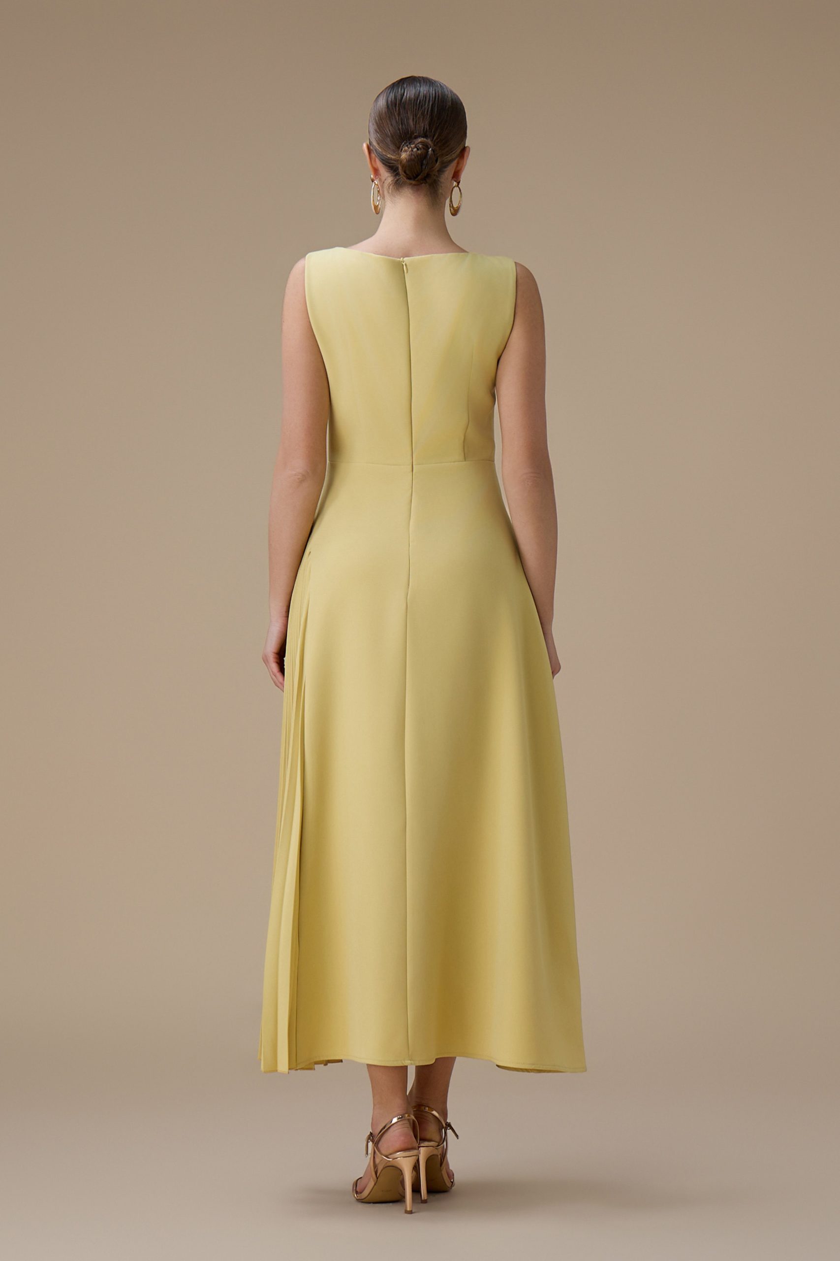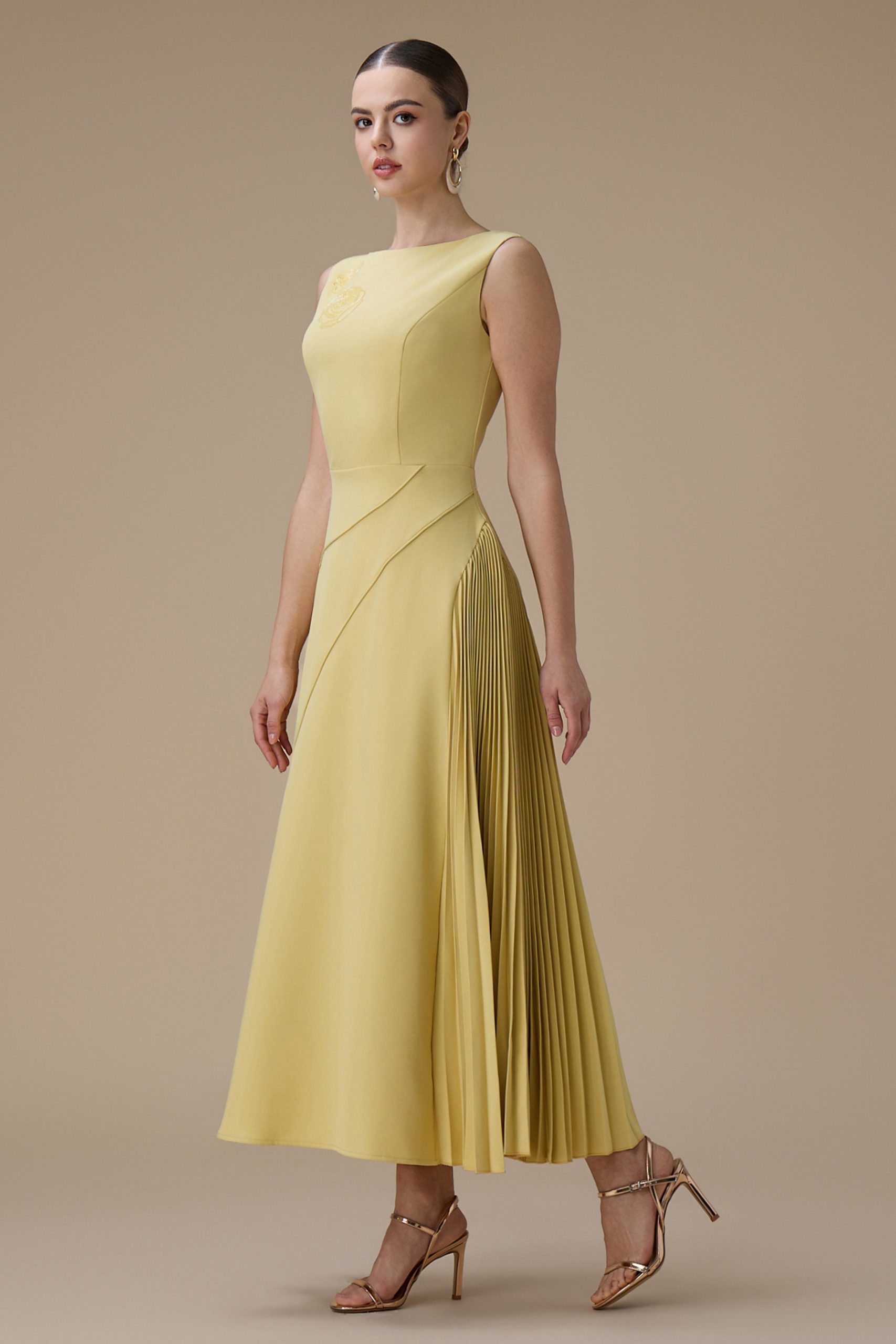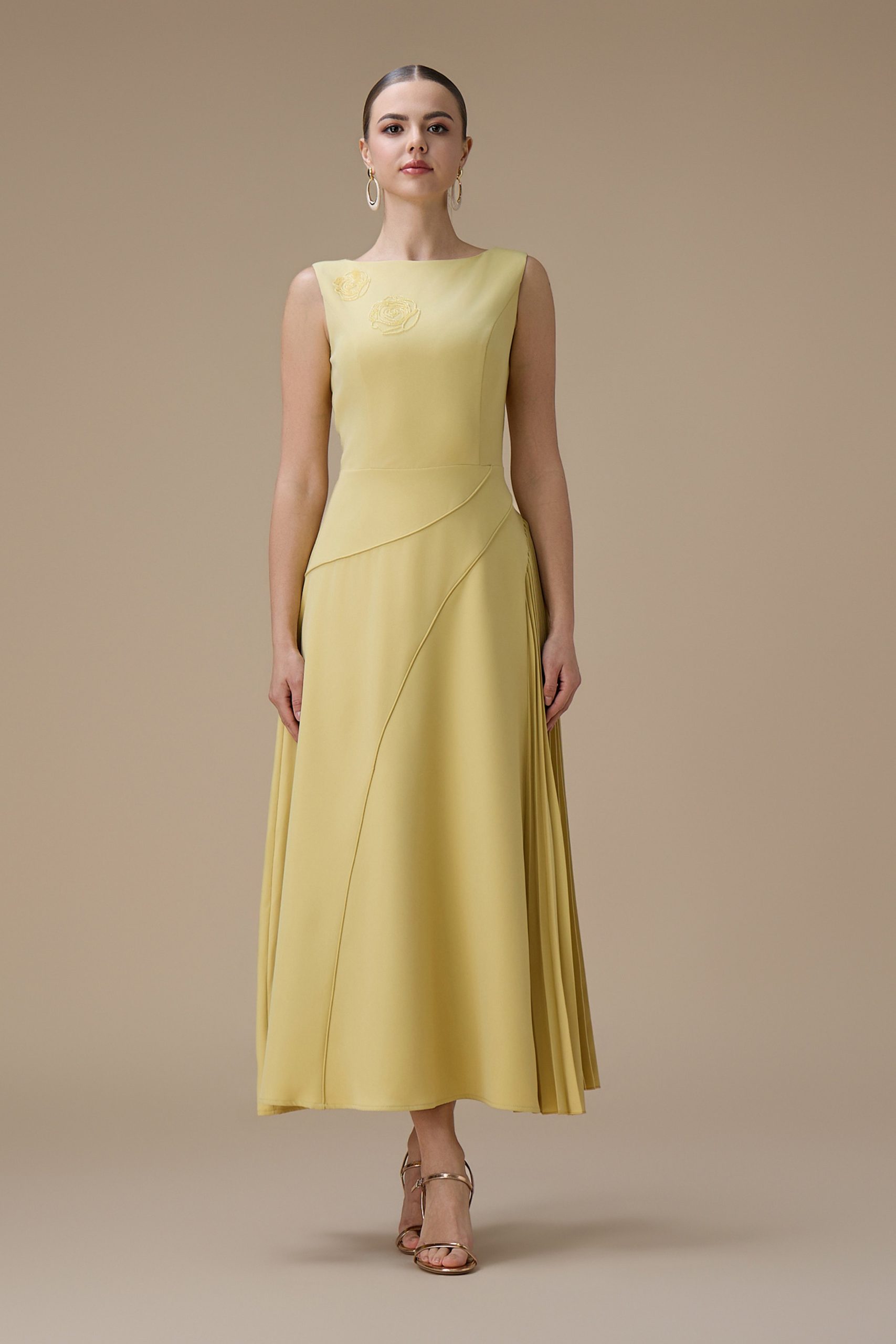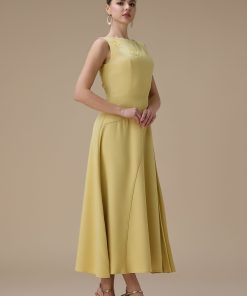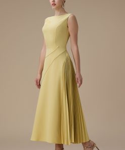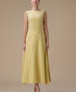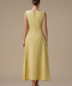 اكتان – فستان اصفر طويل بكسرات من الجانب