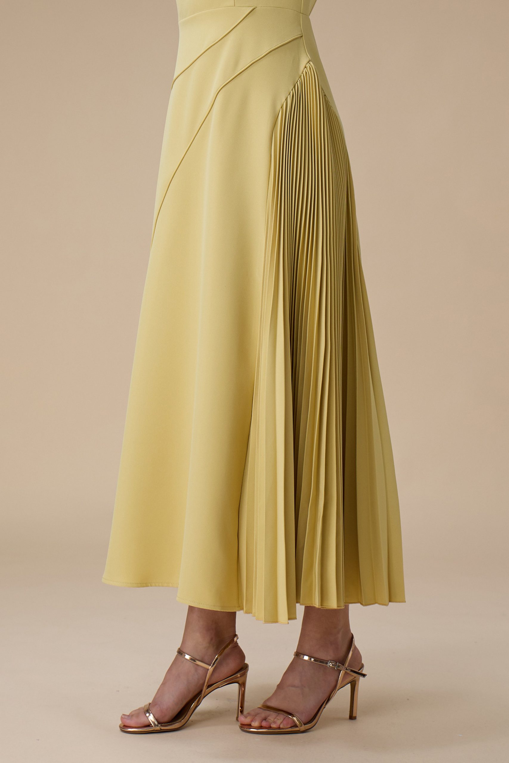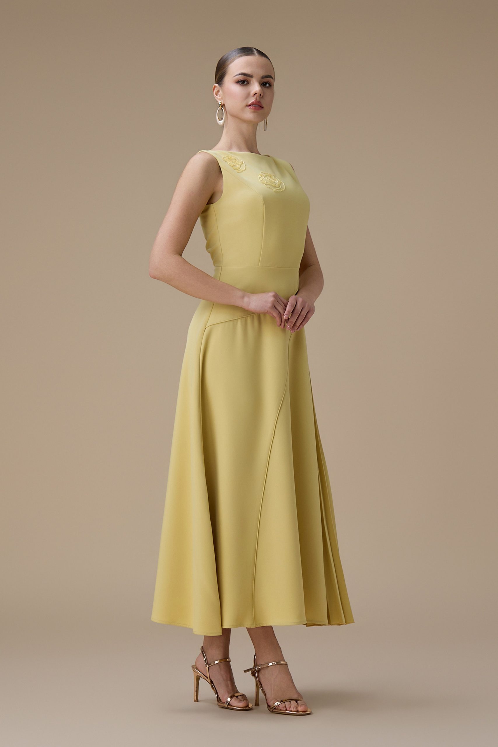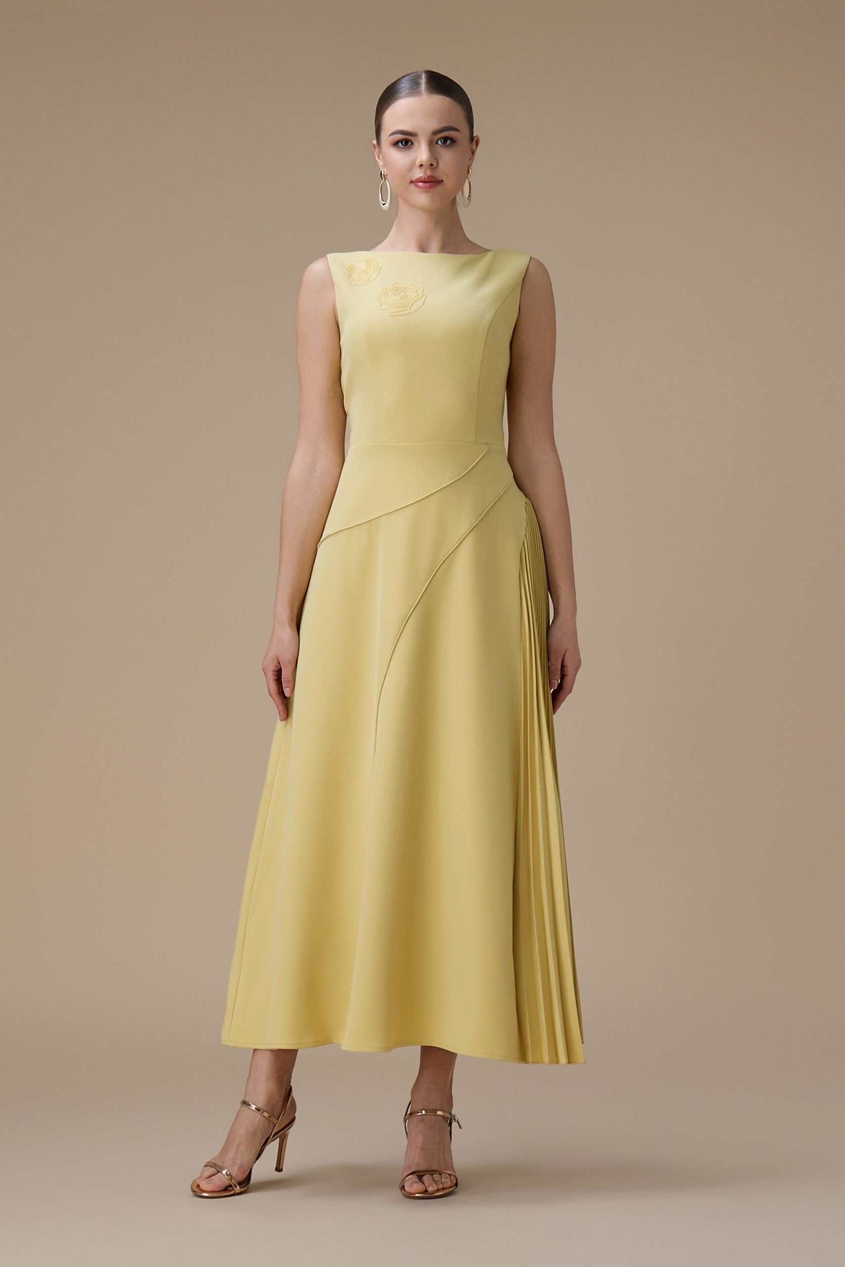 اكتان – فستان اصفر طويل بكسرات من الجانب