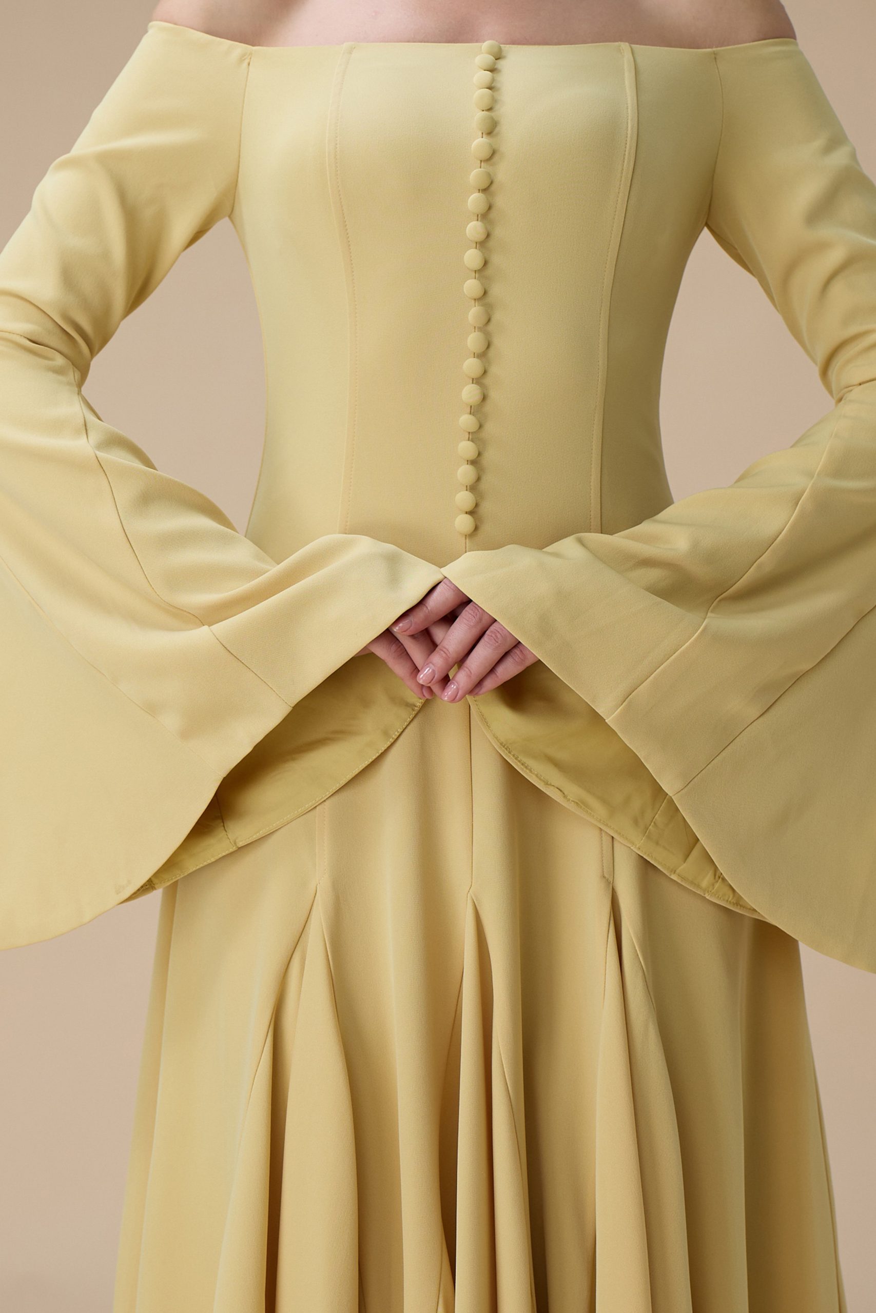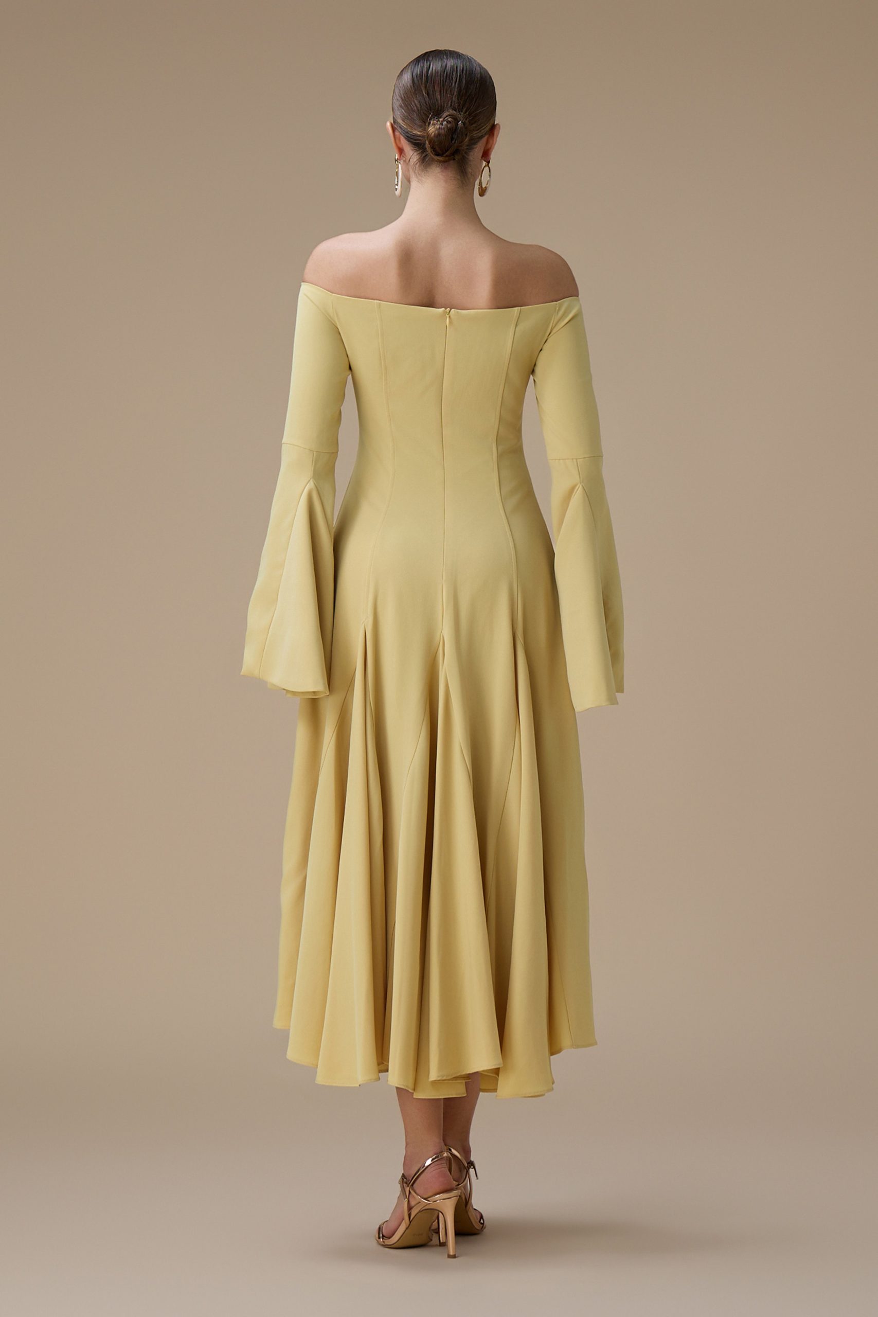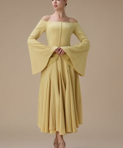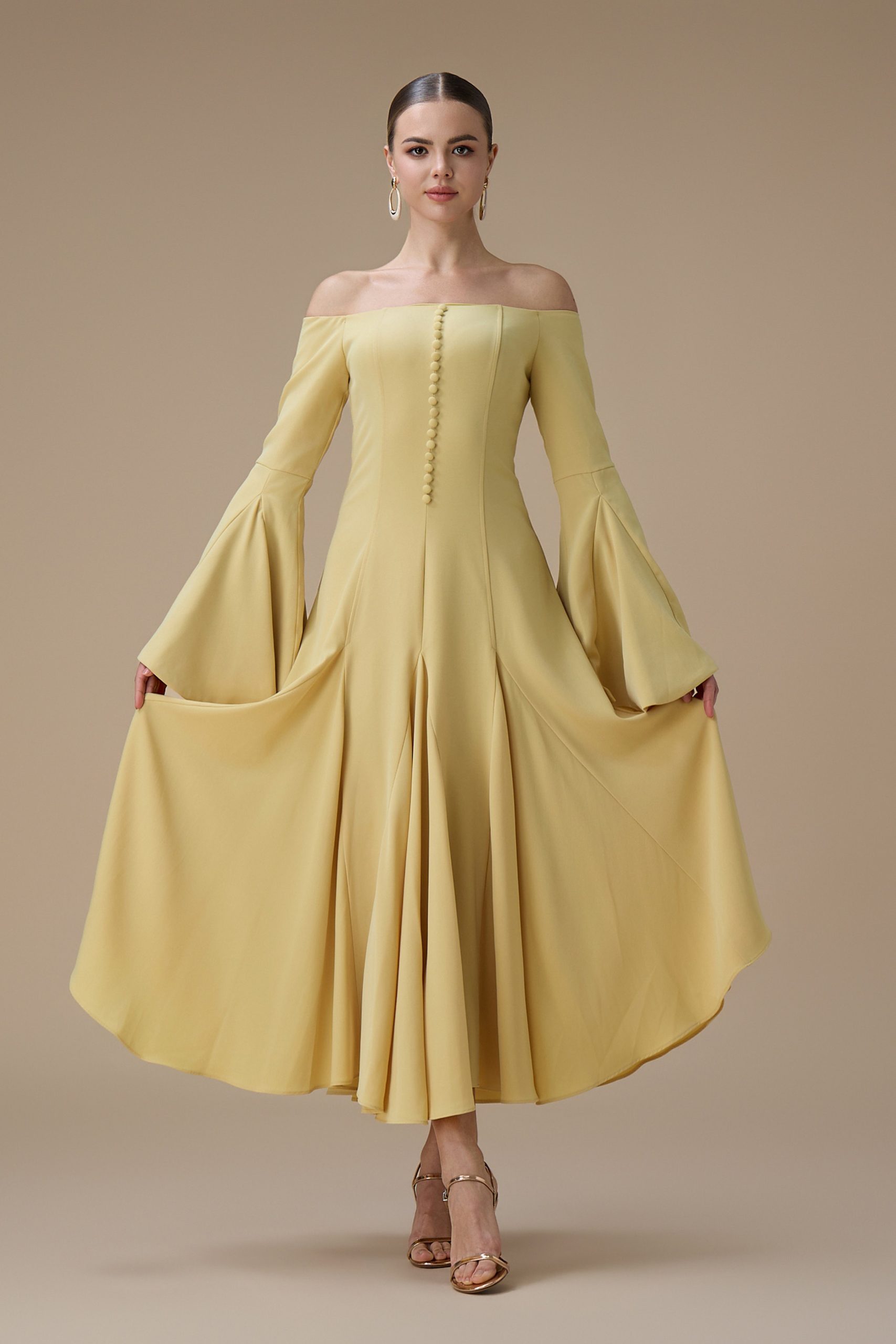 اكتان – فستان اصفر ماكسي اوف شولدر