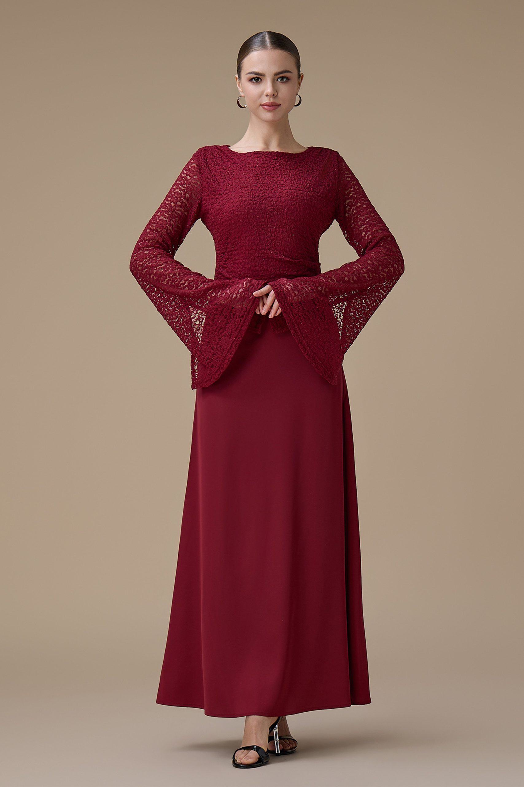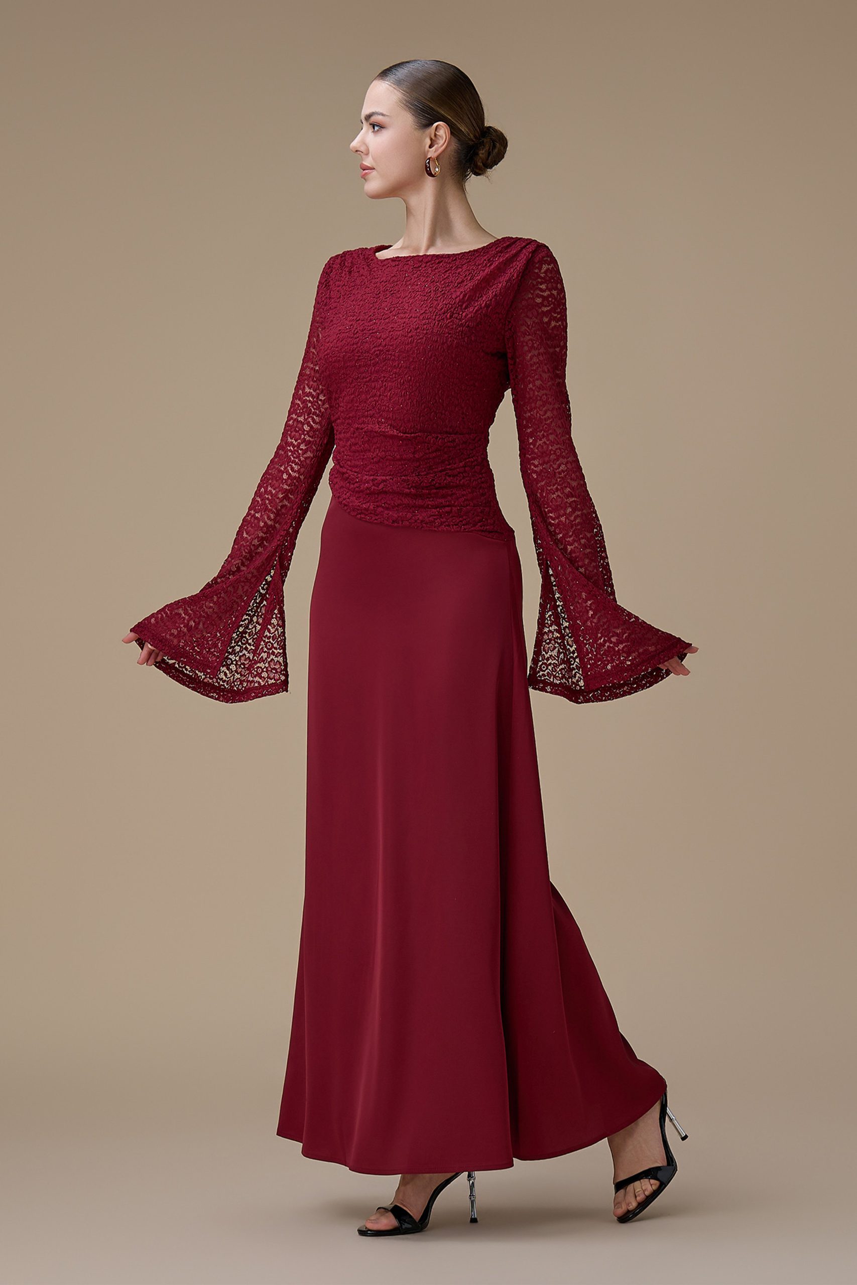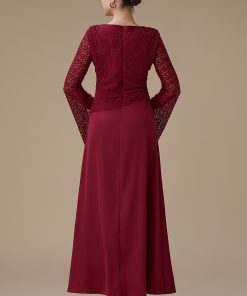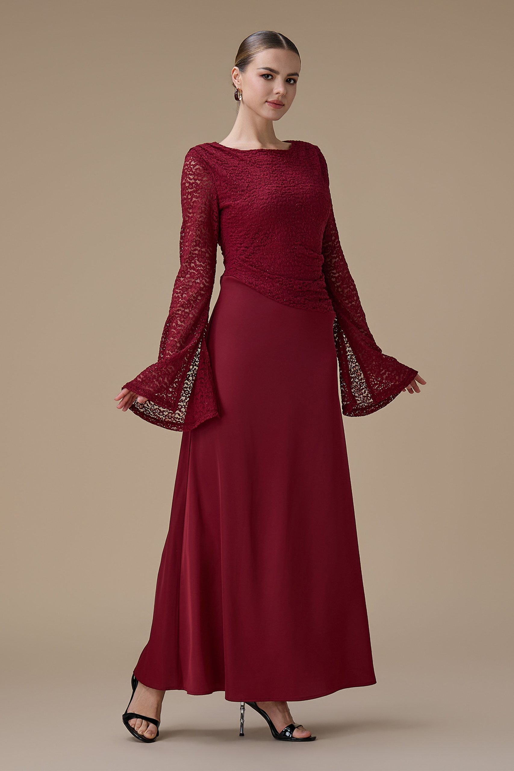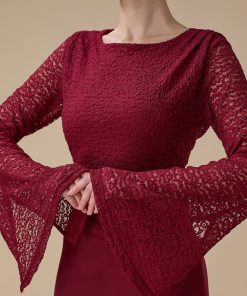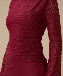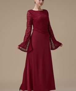 اكتان – فستان برغندي طويل دانتيل