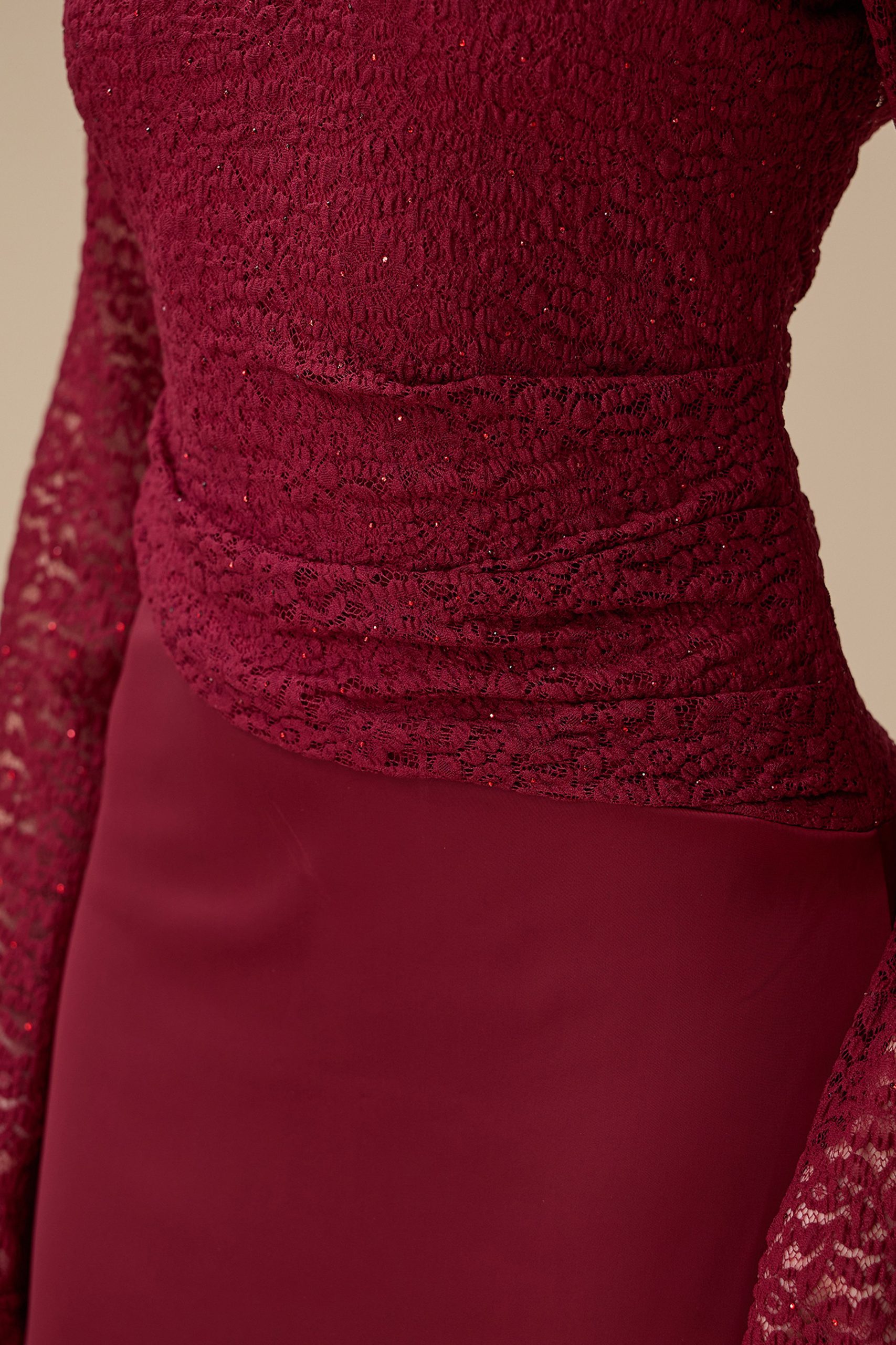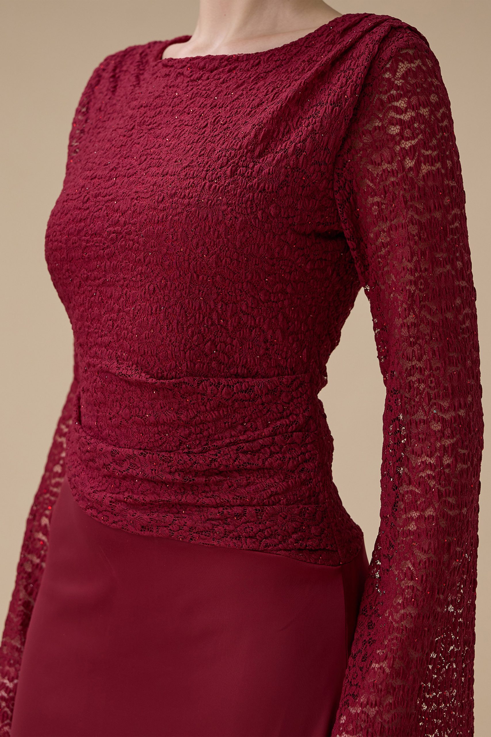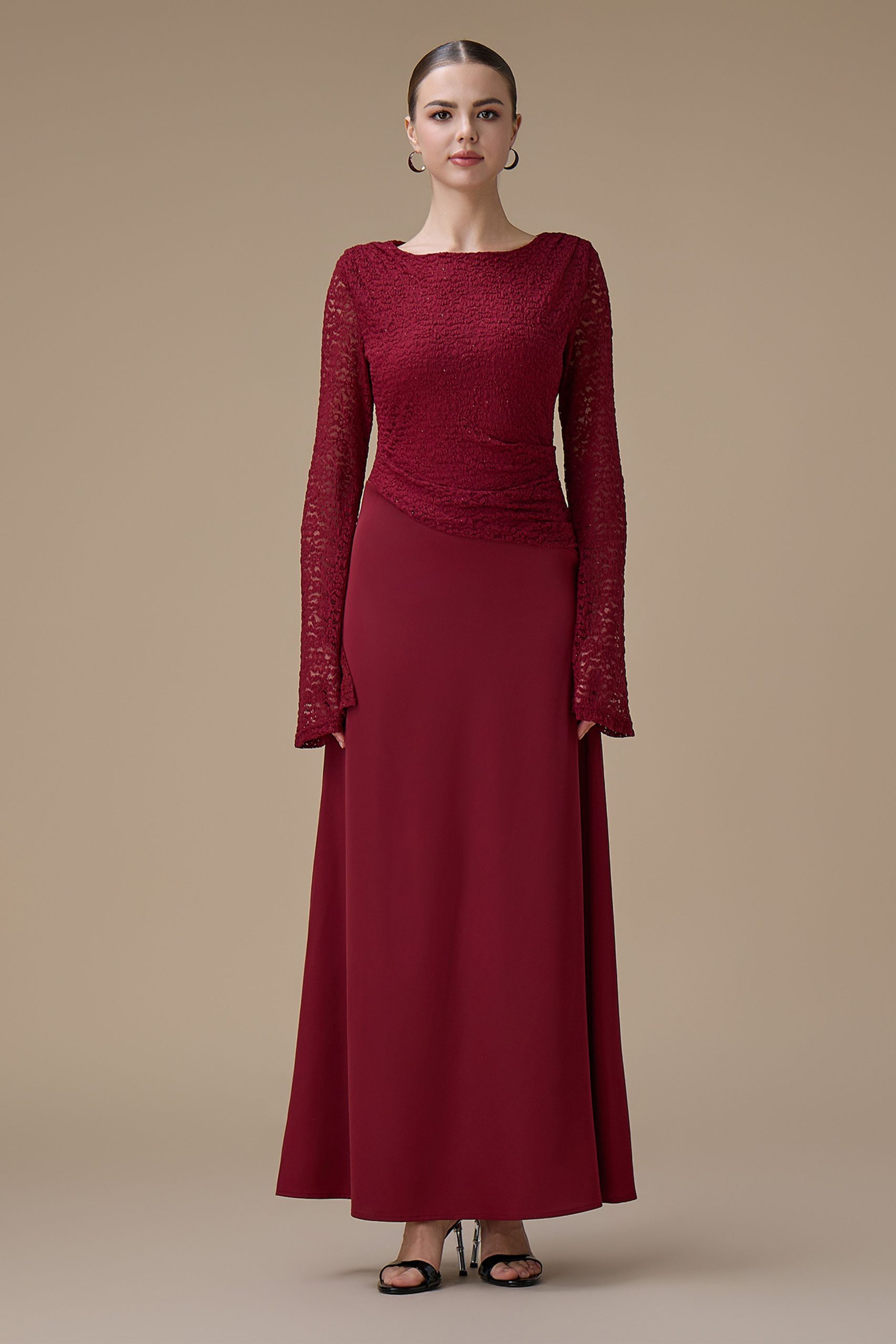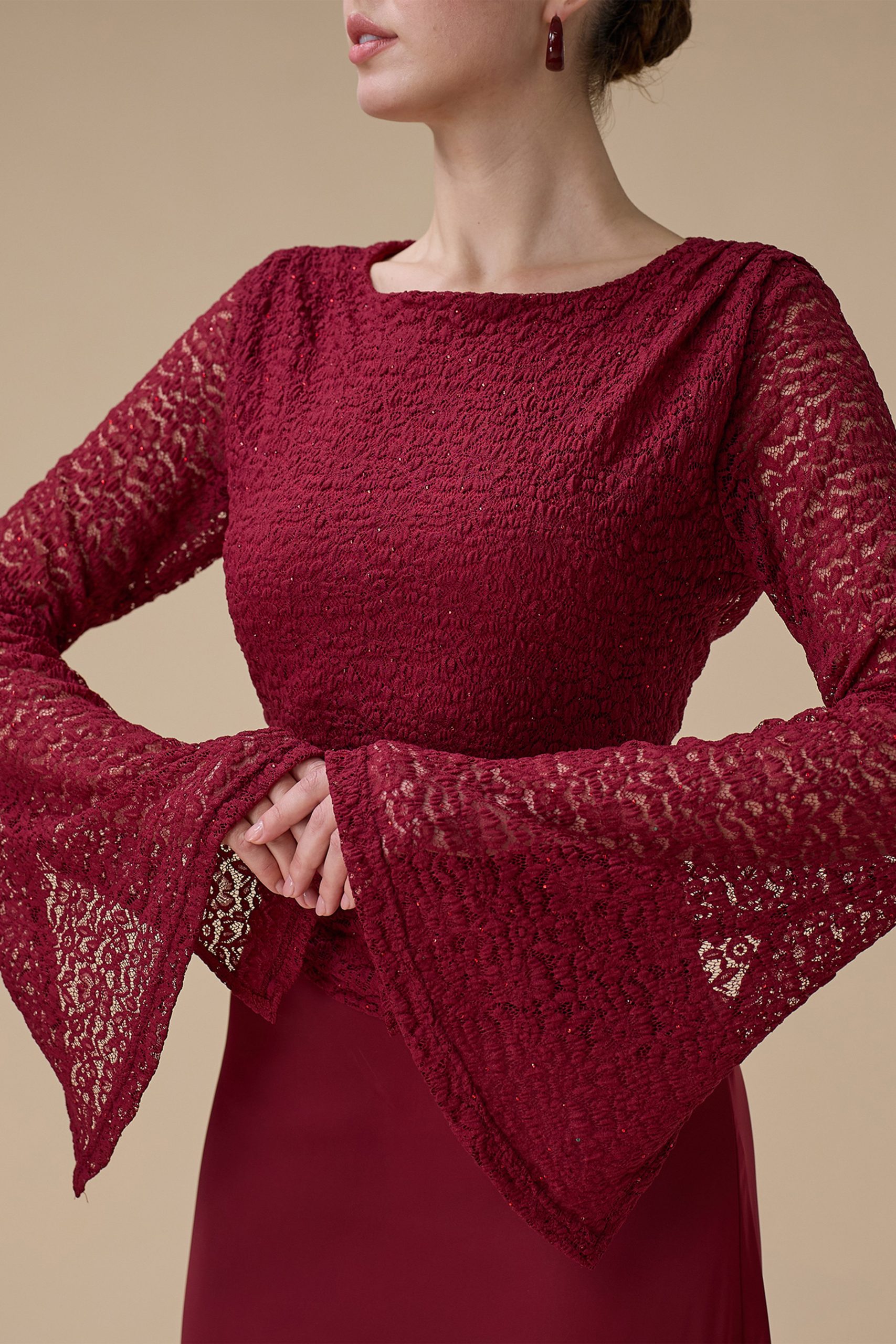 اكتان – فستان برغندي طويل دانتيل