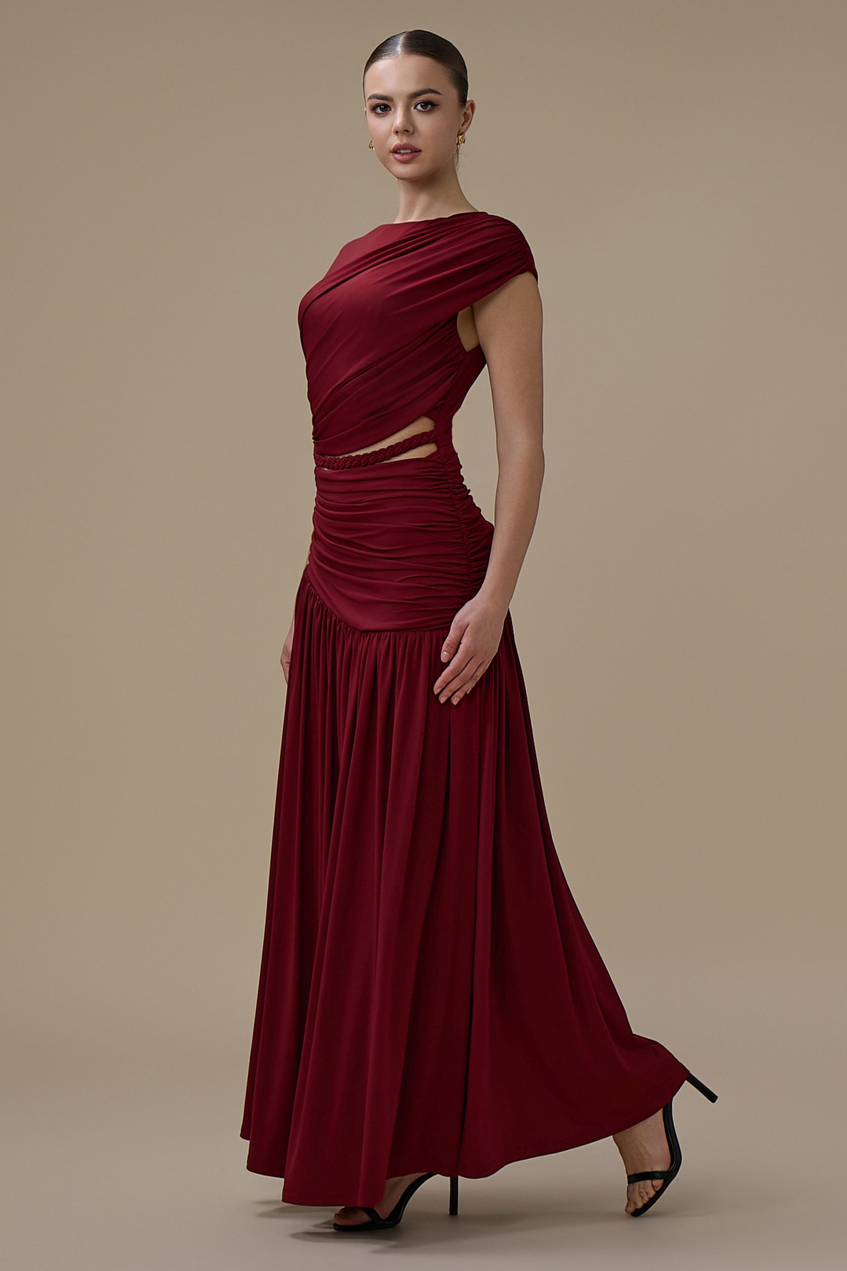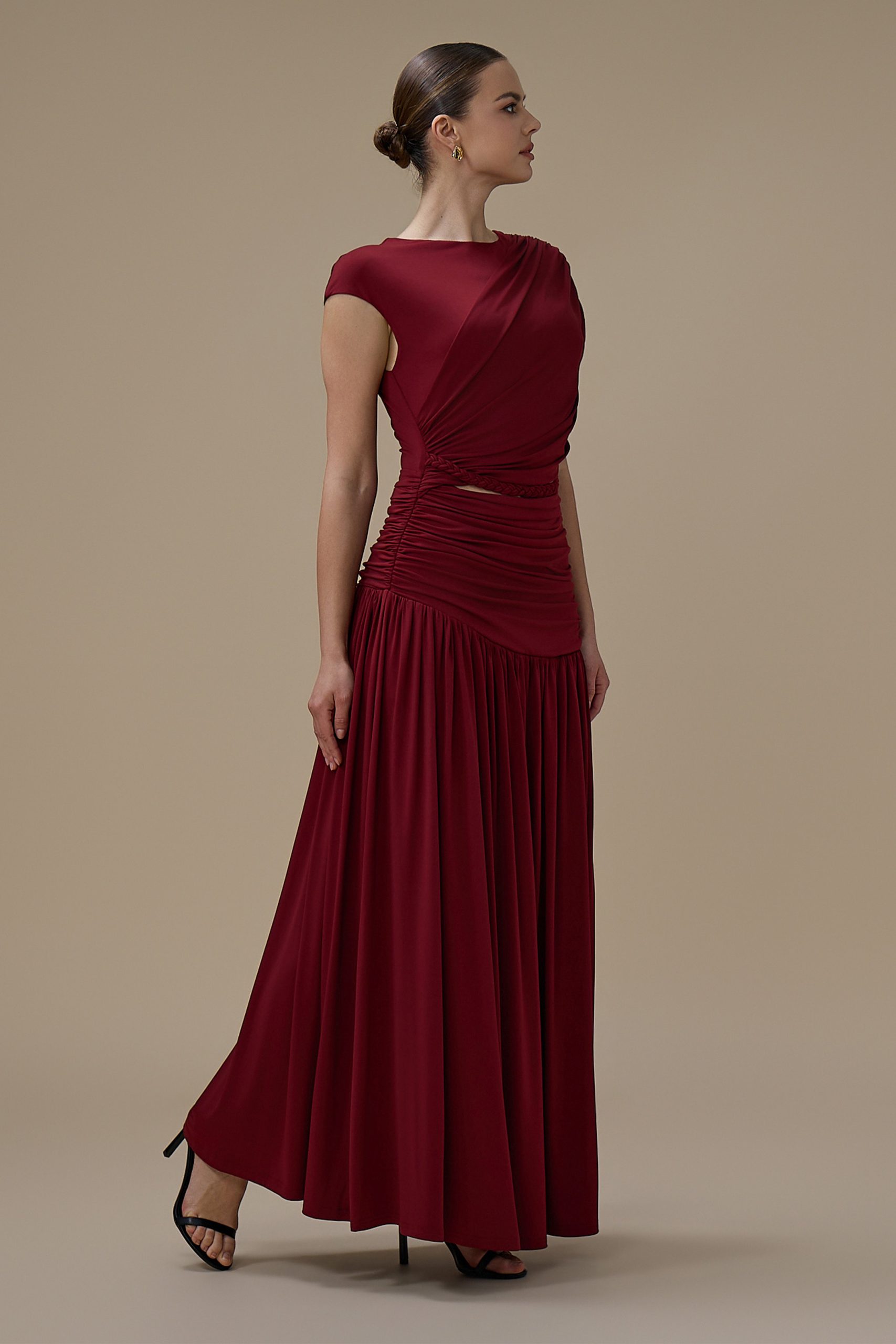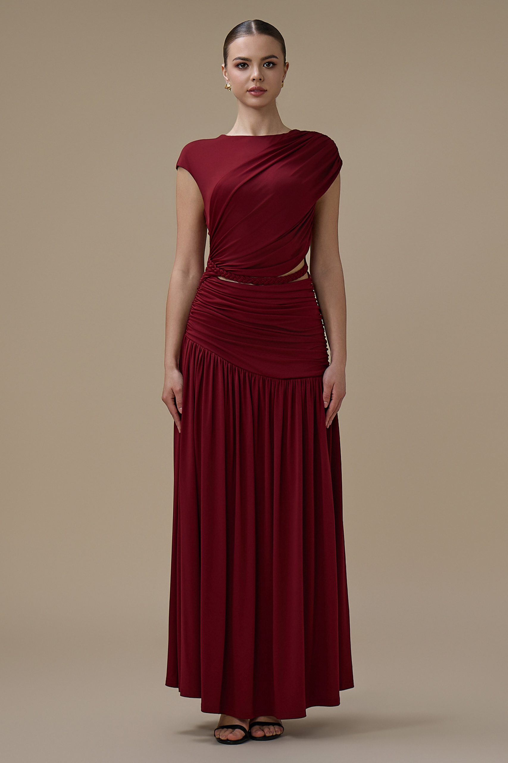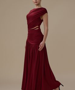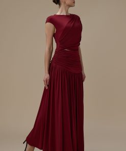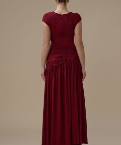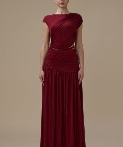 اكتان – فستان برغندي طويل درابيه