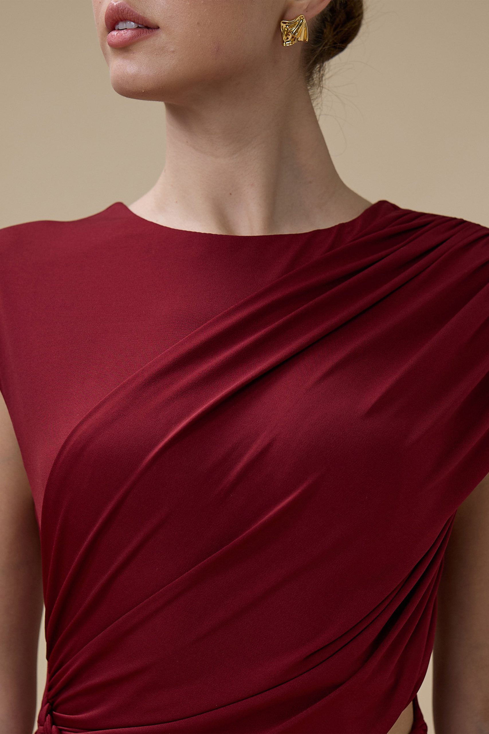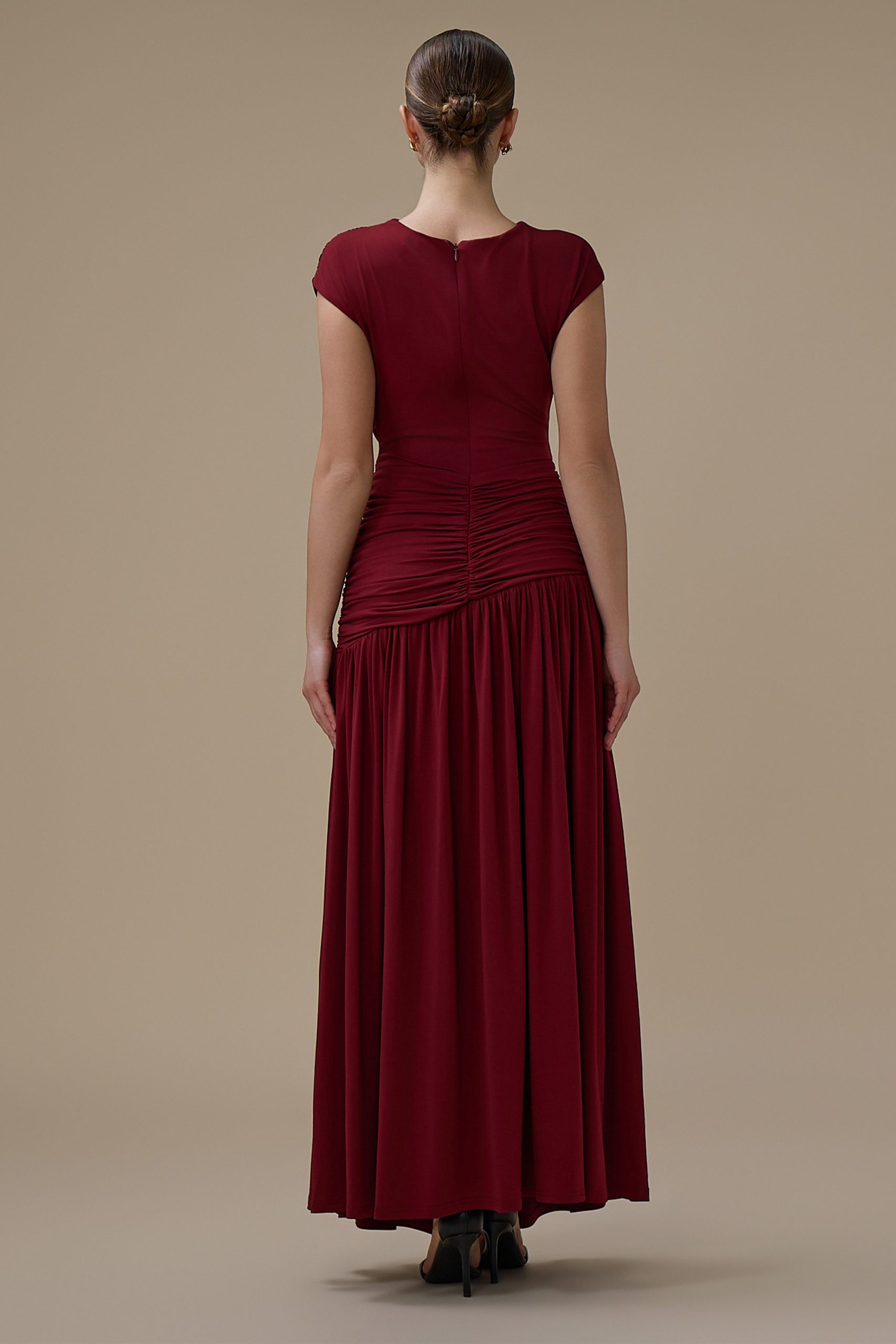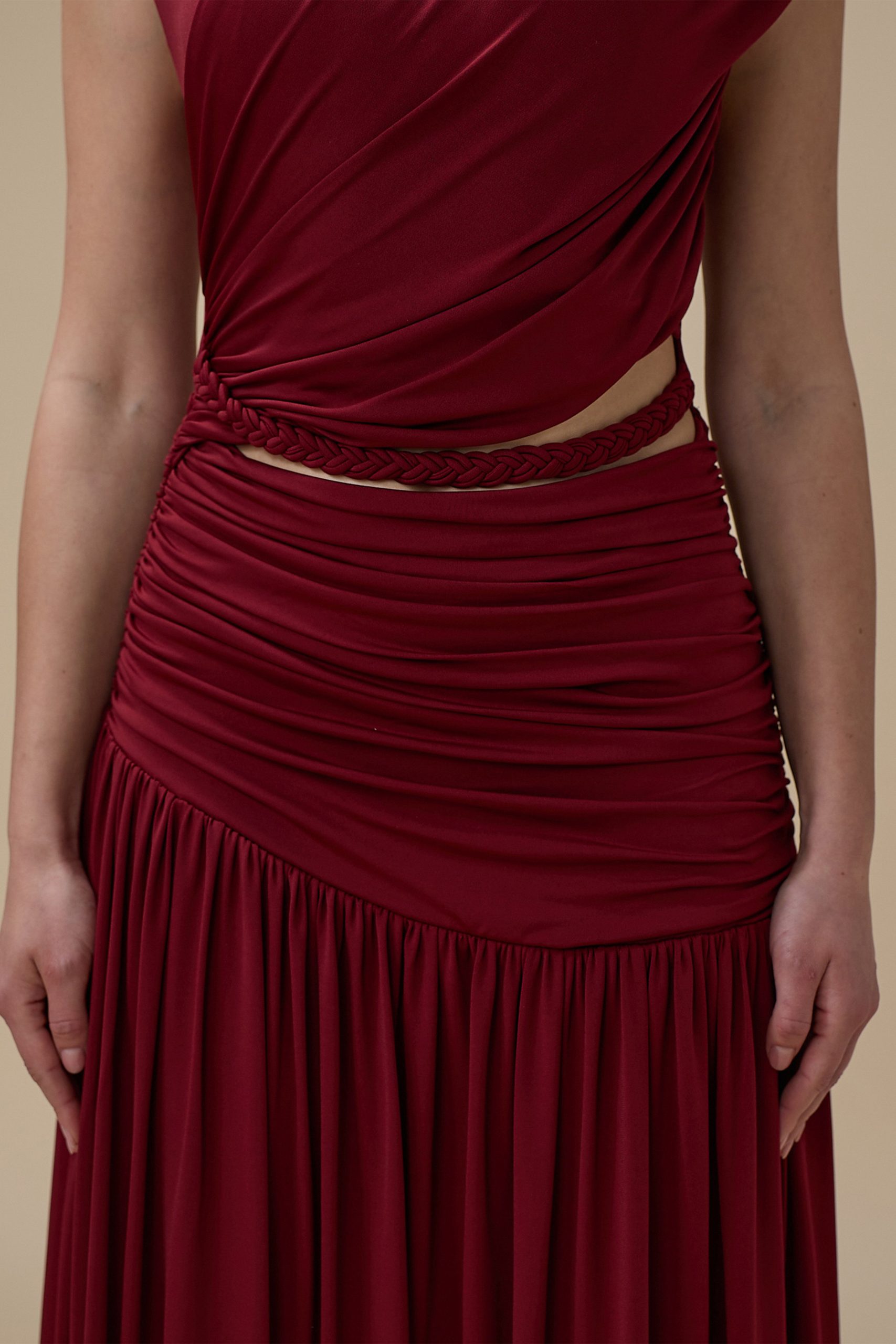 اكتان – فستان برغندي طويل درابيه