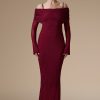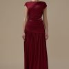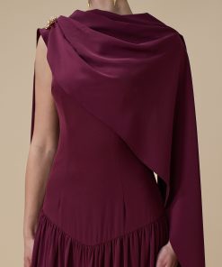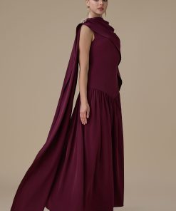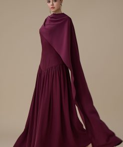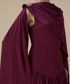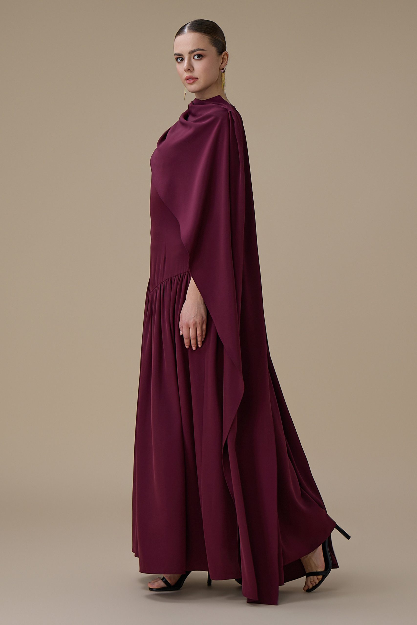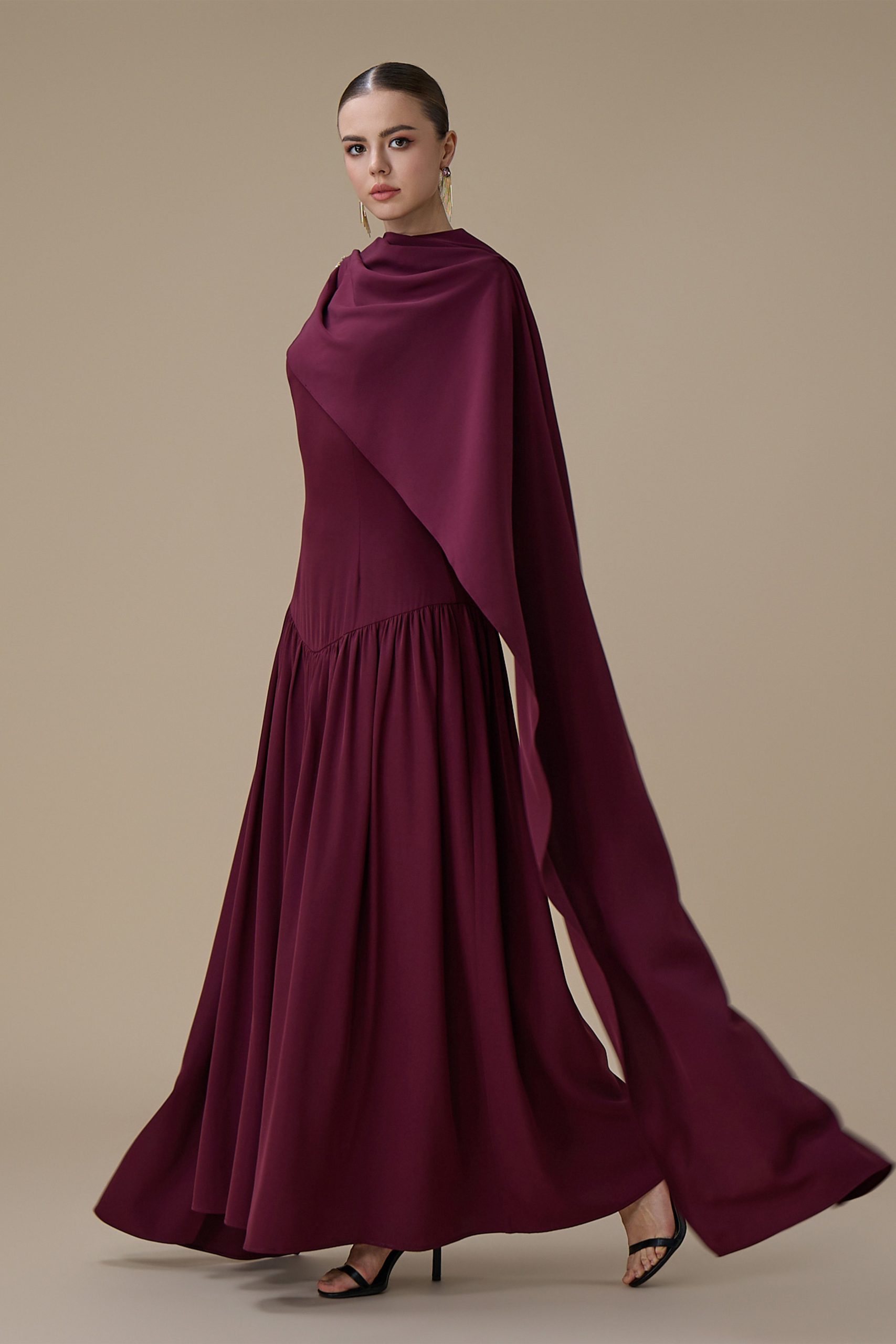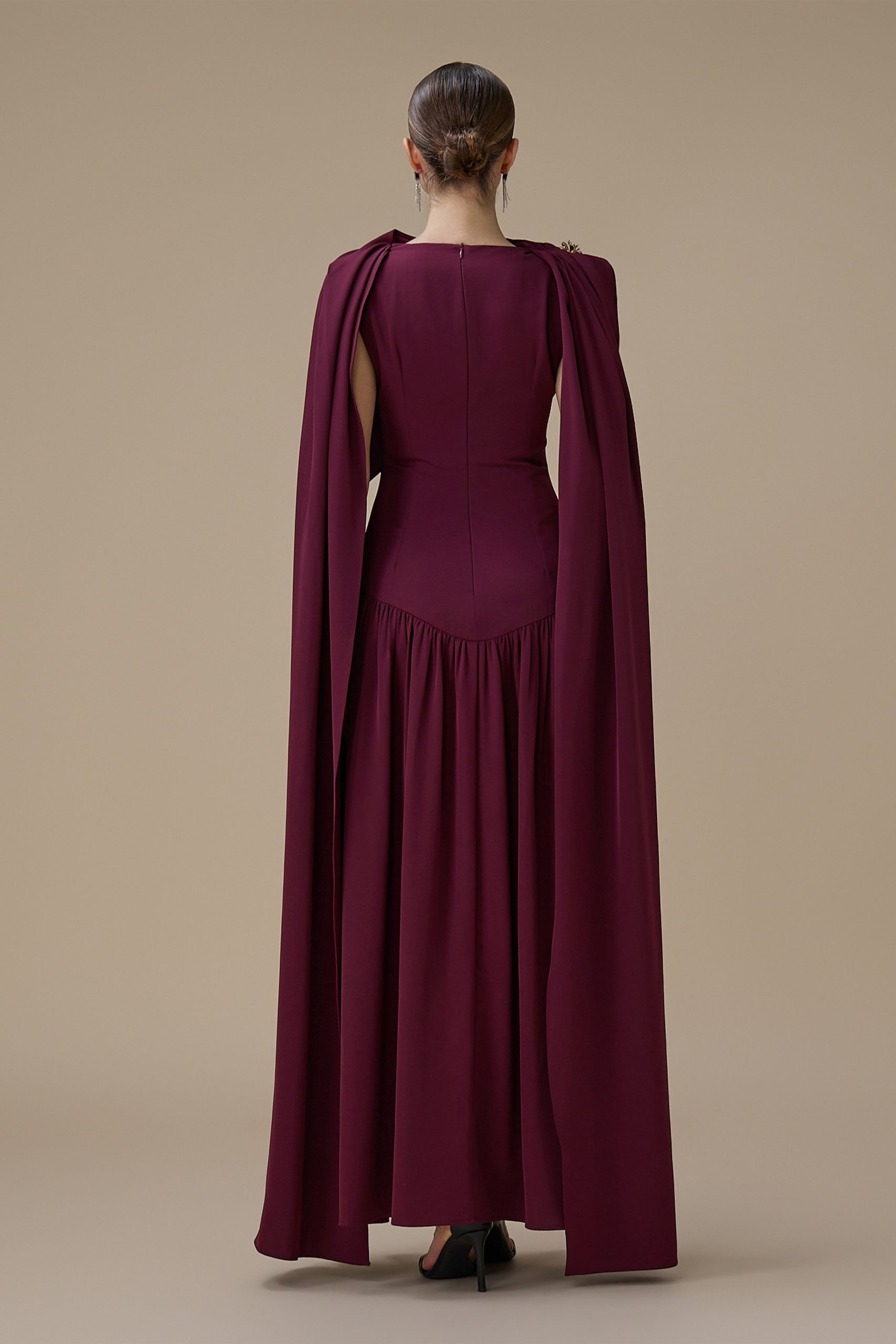 اكتان – فستان برغندي طويل مع كاب جانبي