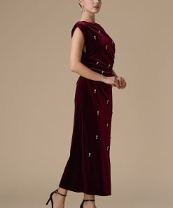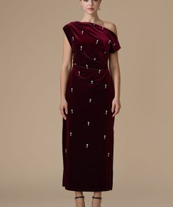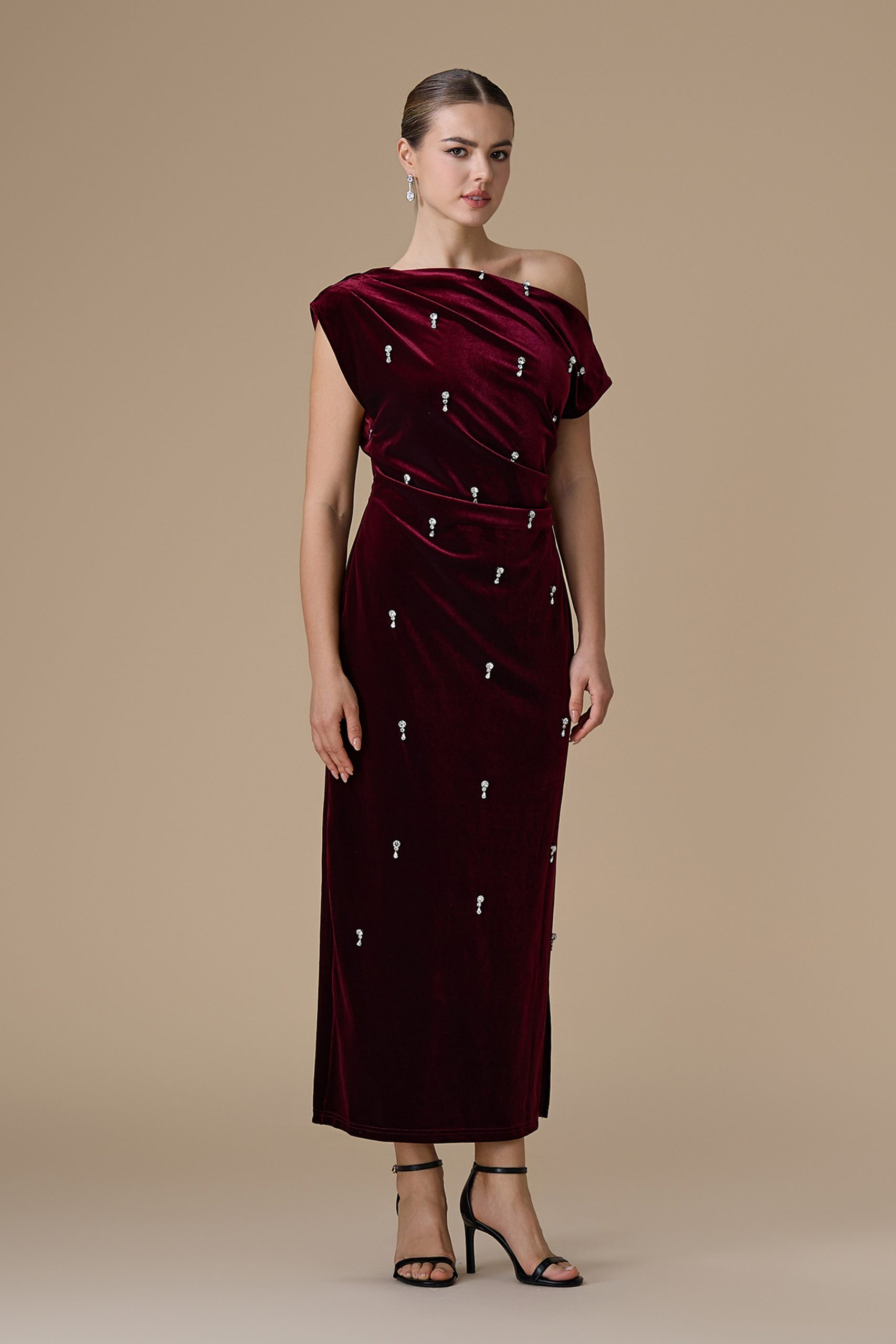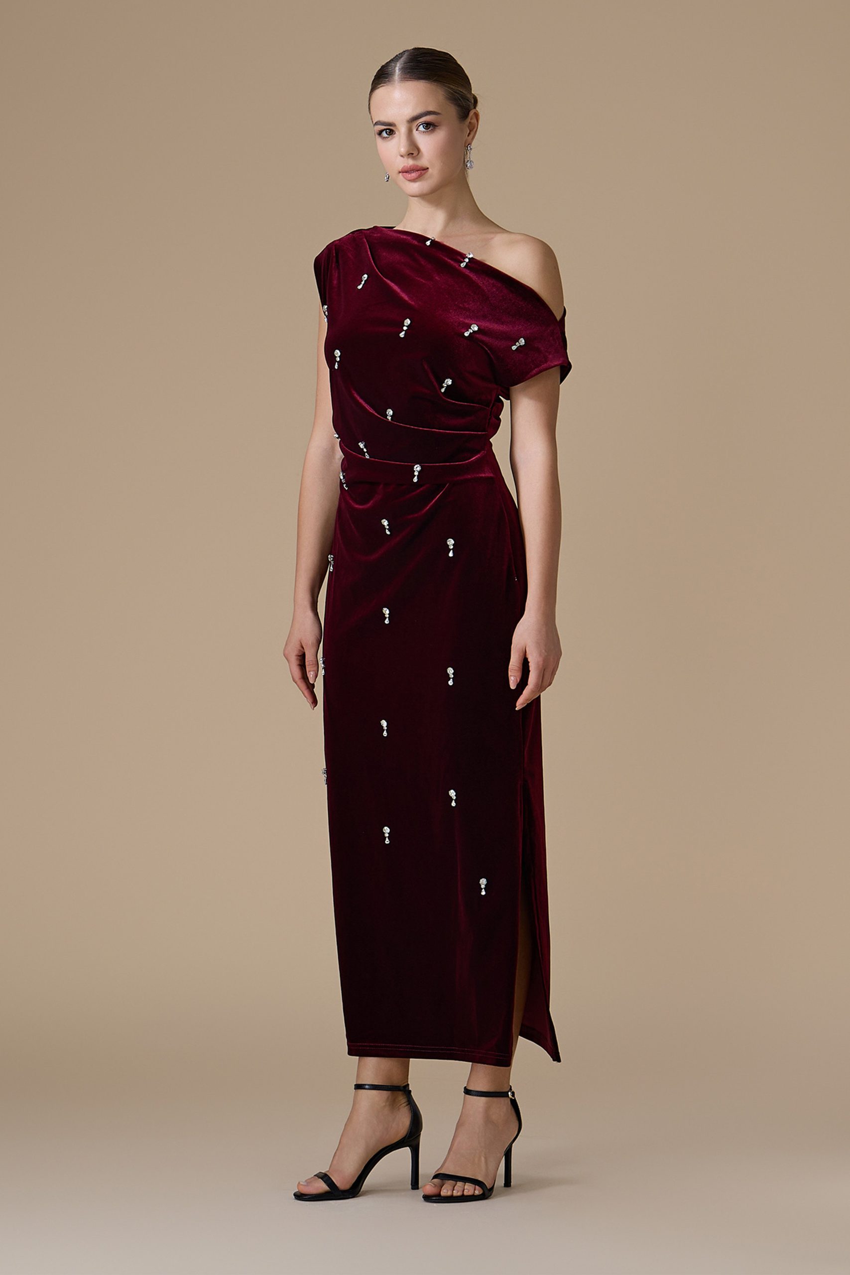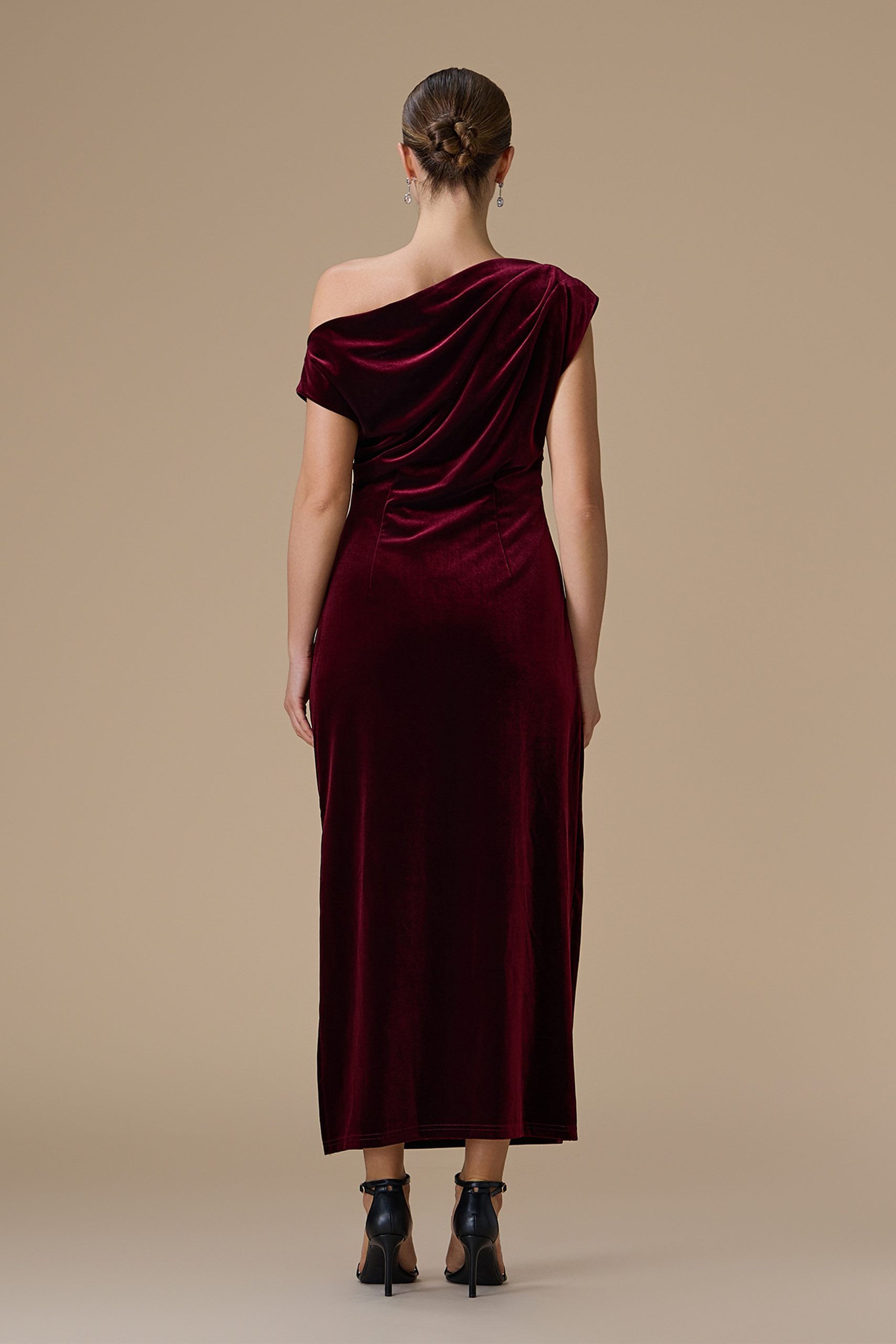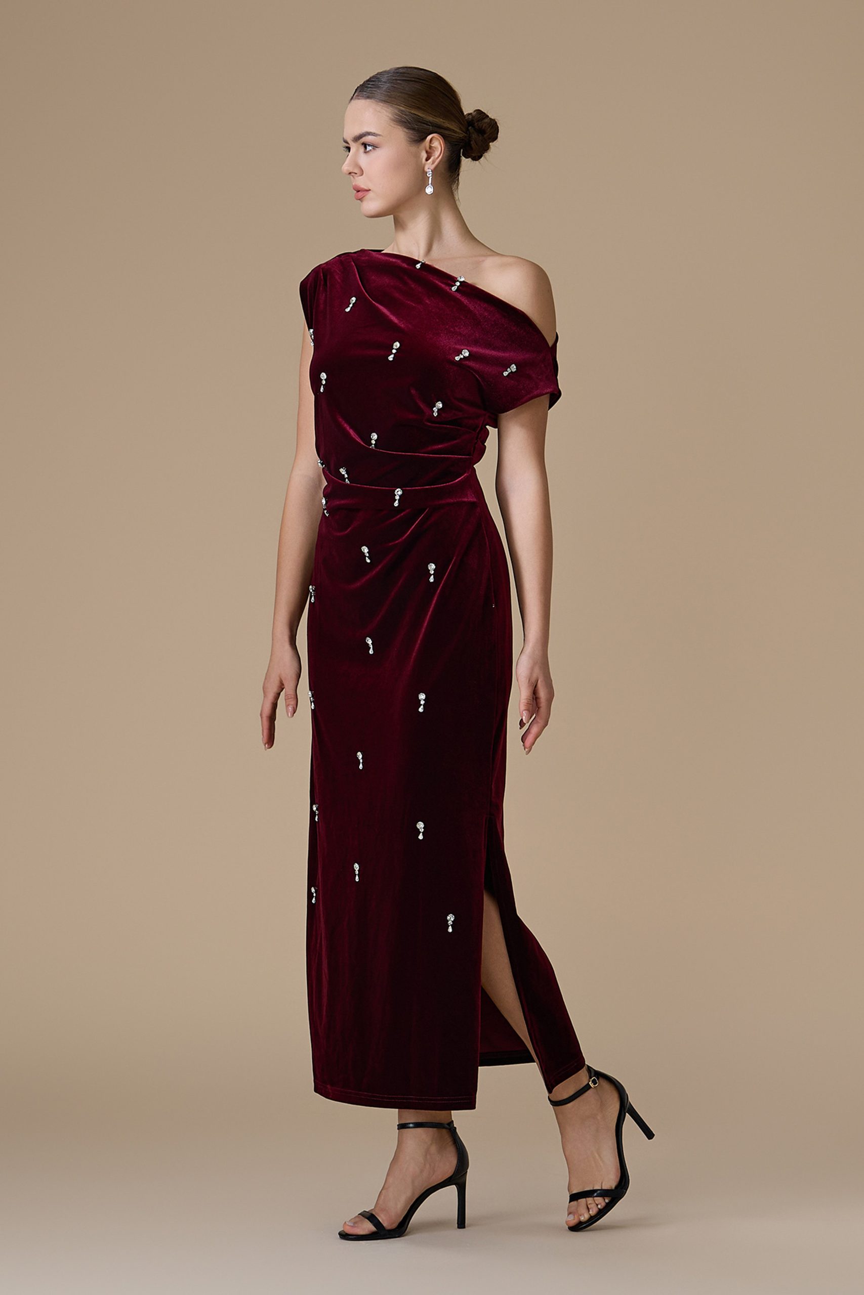 اكتان – فستان برغندي ماكسي اوف شولدر